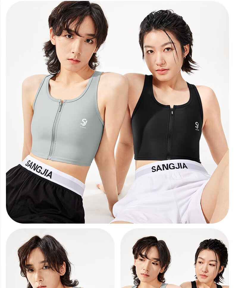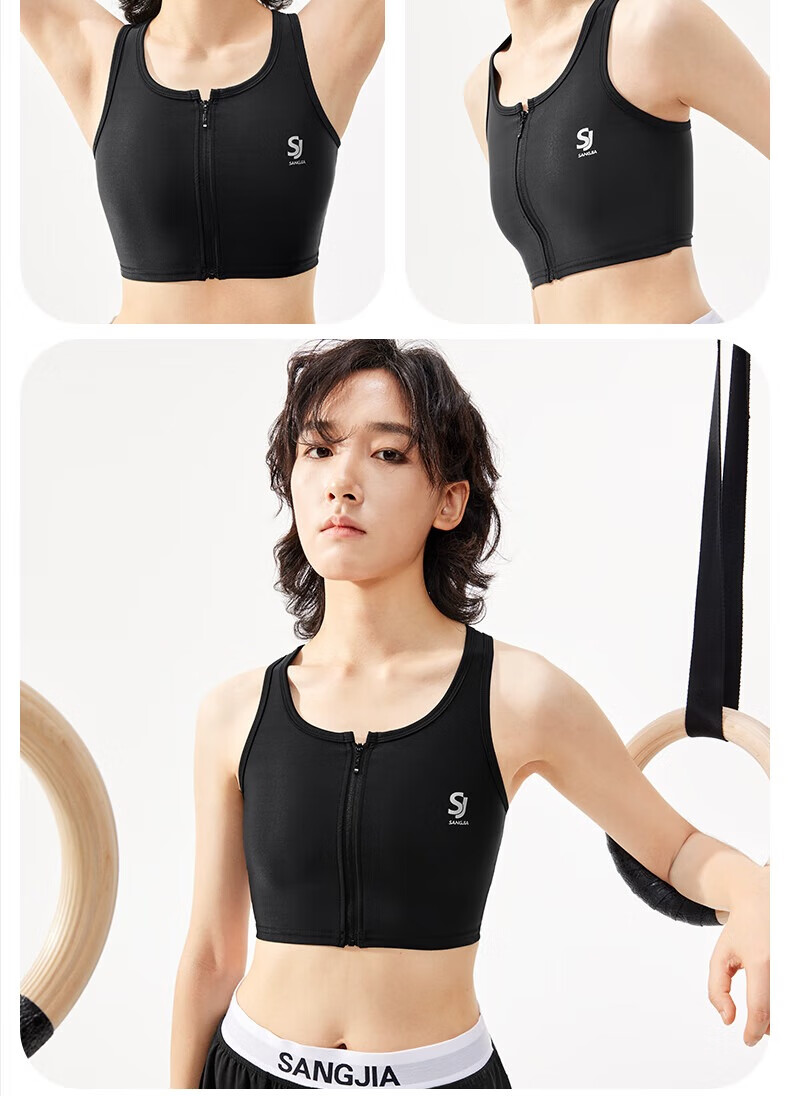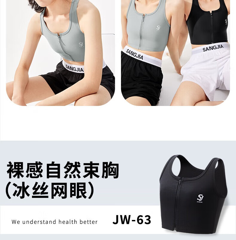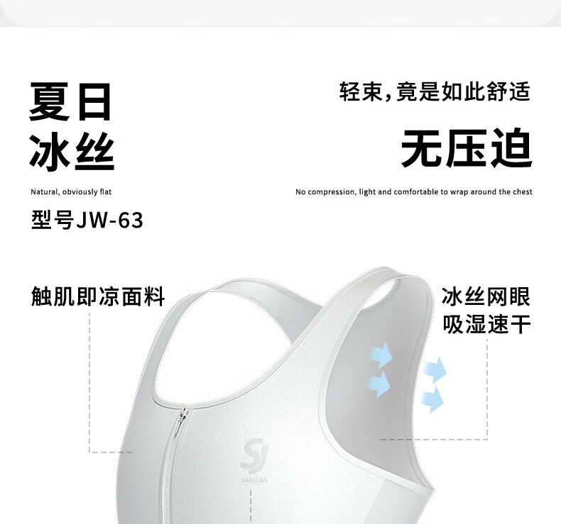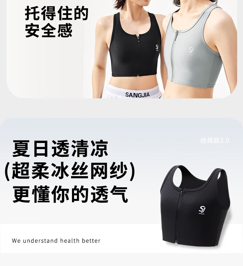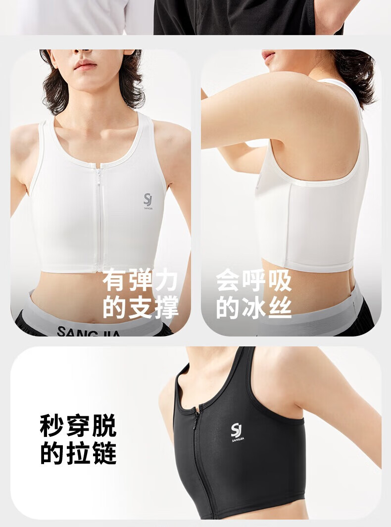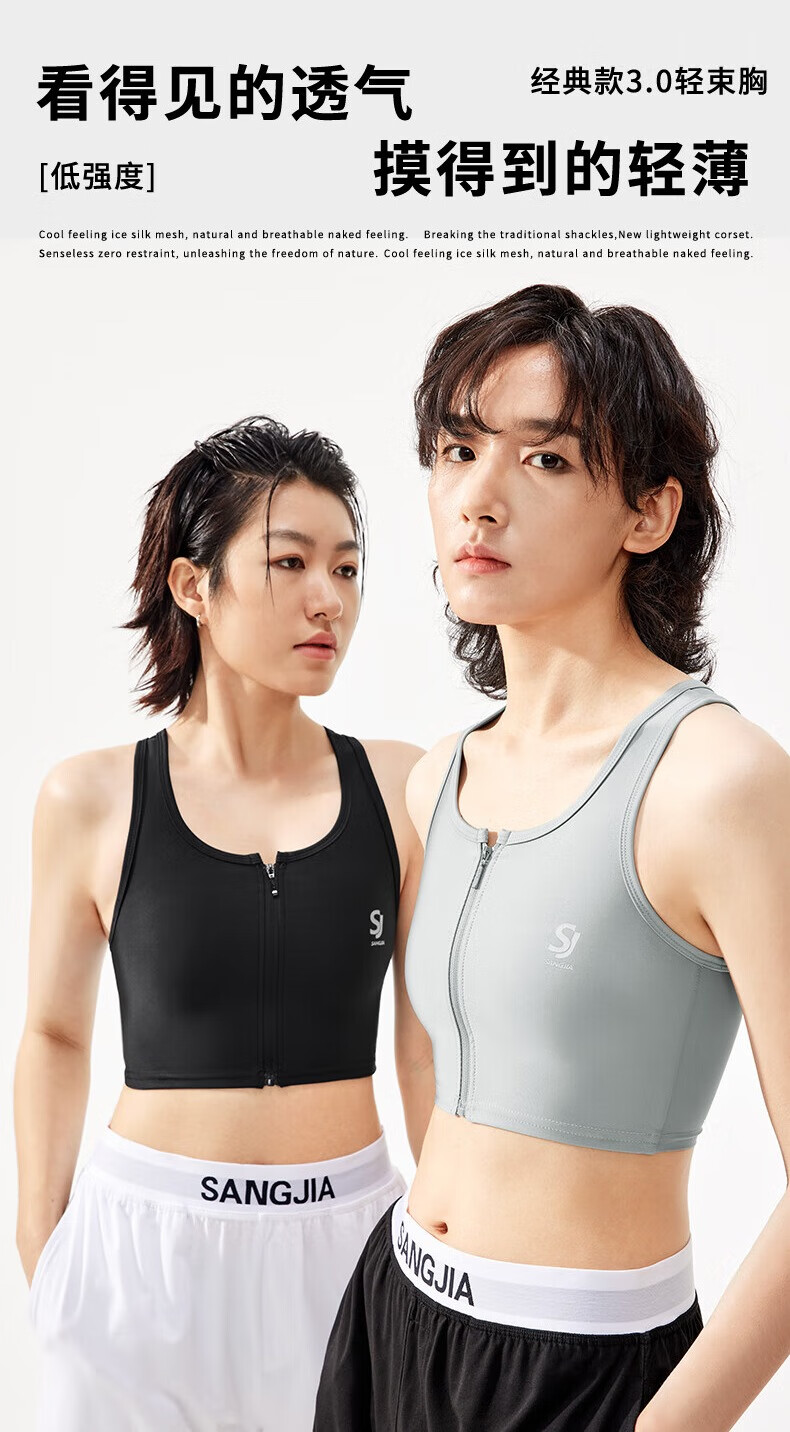 Sangjia corset underwear les handsome T ice silk wrapped chest zipper breast shaping vest big breasts appear smaller breast reduction flat chest female students black L
