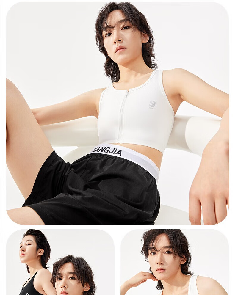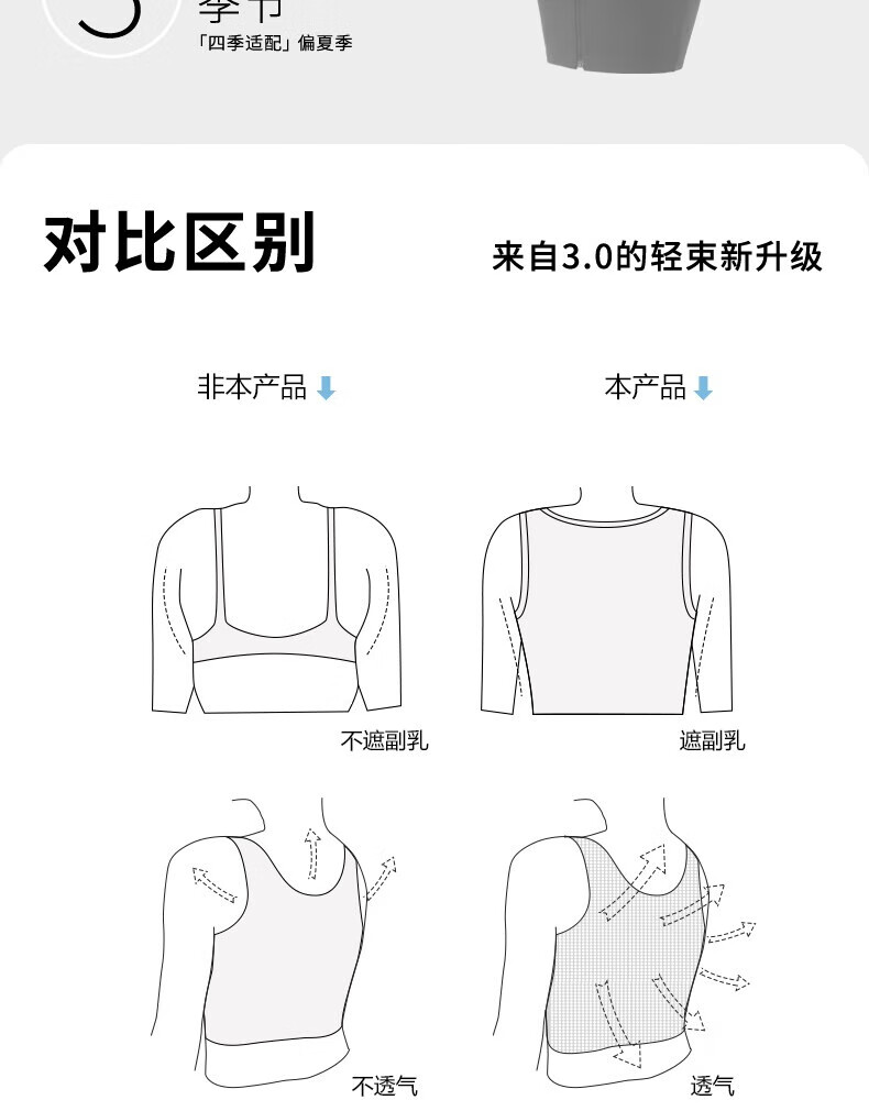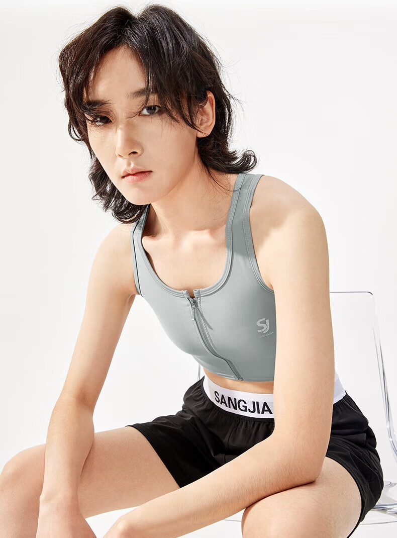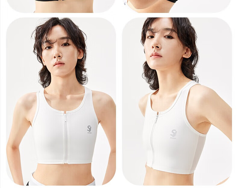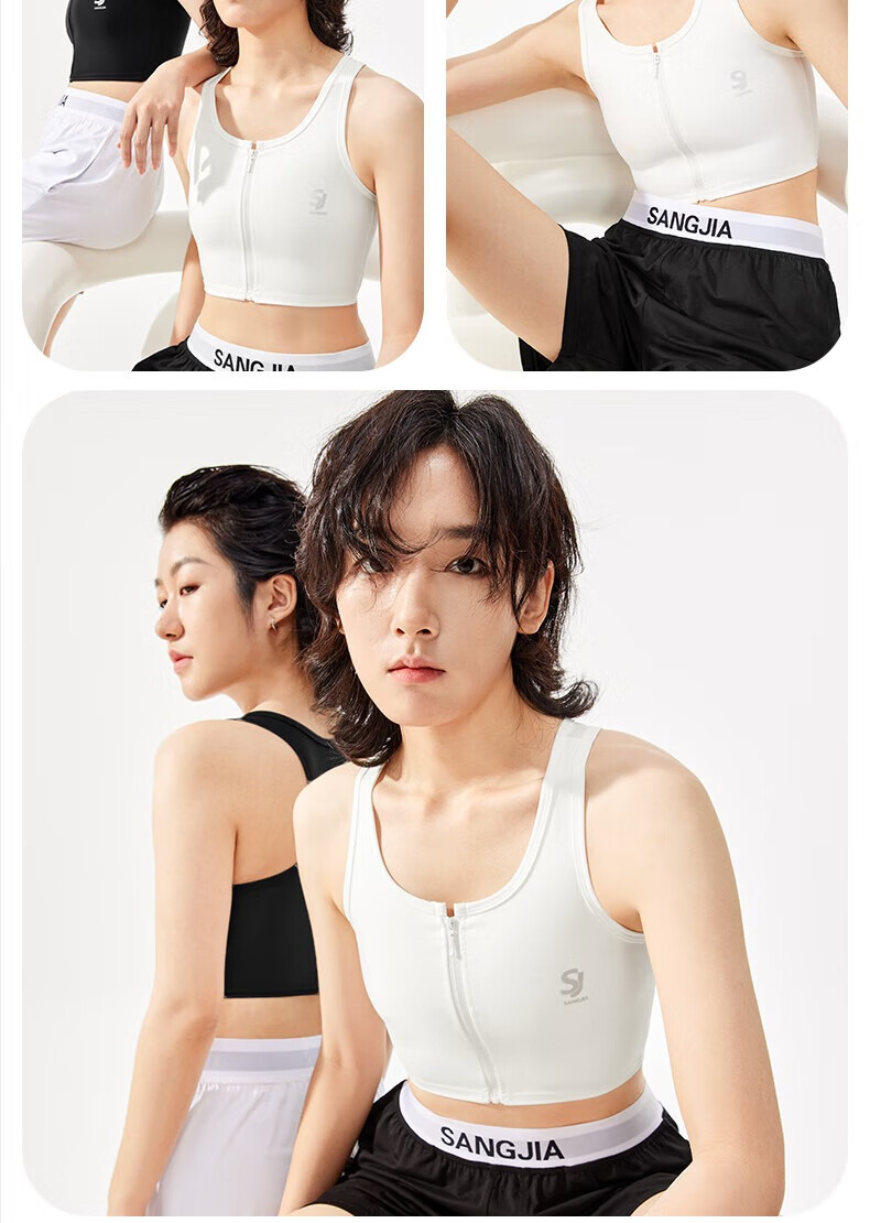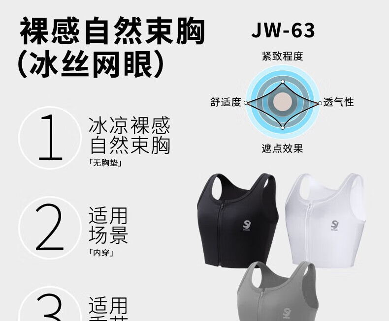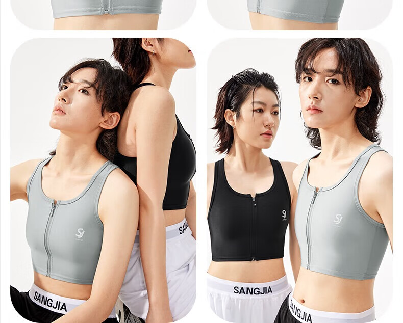 Sangjia corset underwear les handsome T ice silk wrapped chest zipper breast shaping vest big breasts appear smaller breast reduction flat chest female students black L