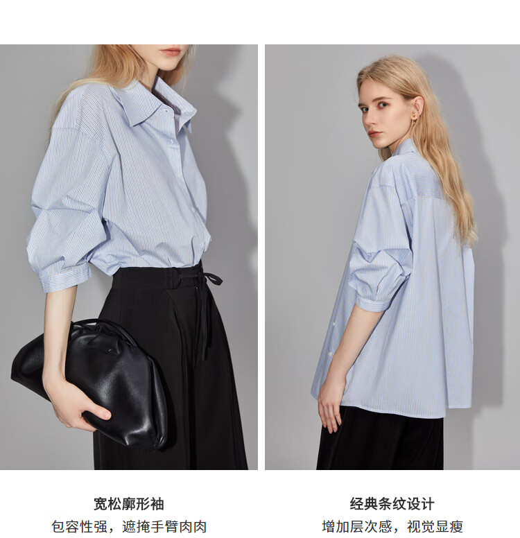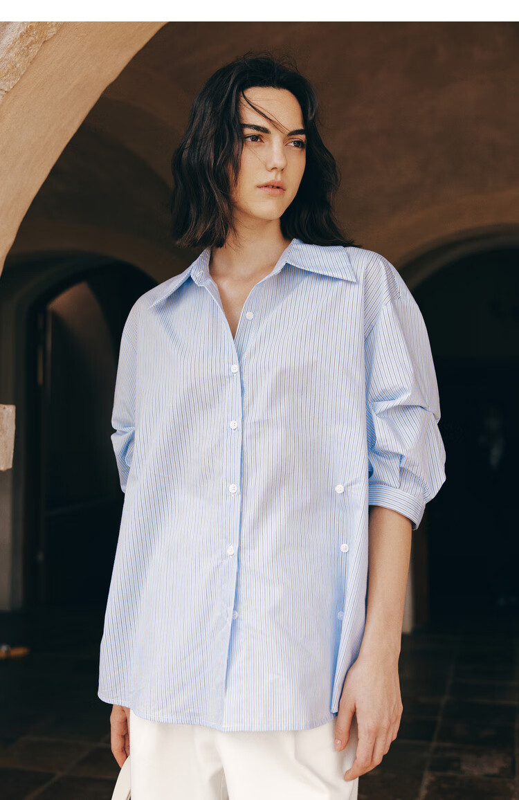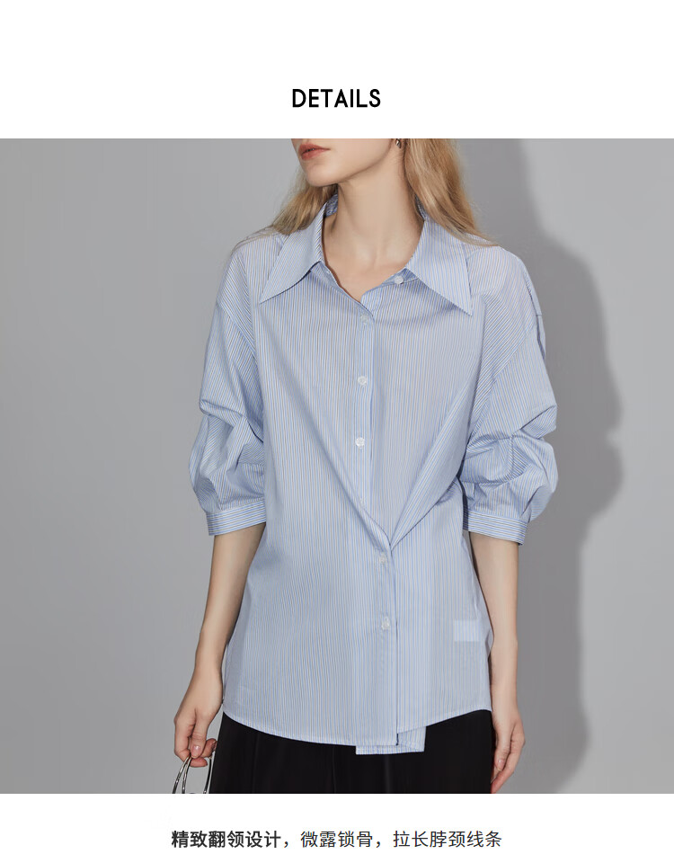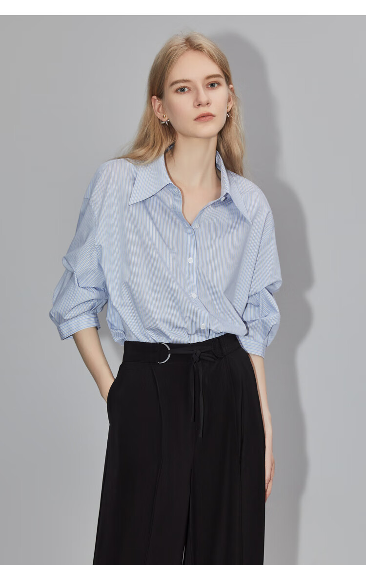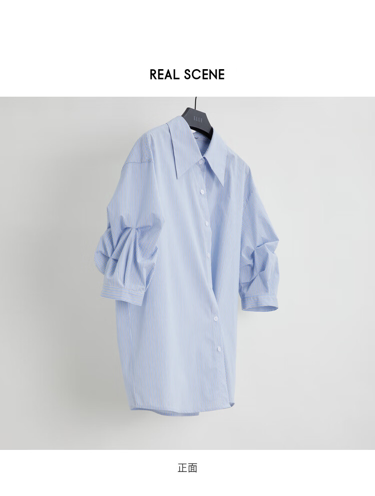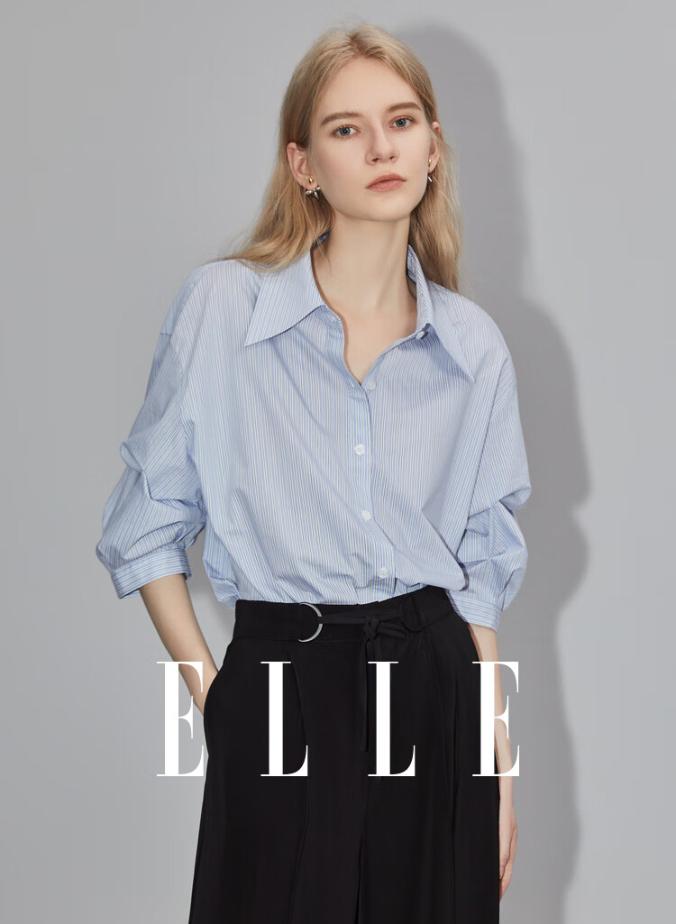 ELLE French fashion style age-reducing striped shirt for women 2026 spring new design loose niche top striped M