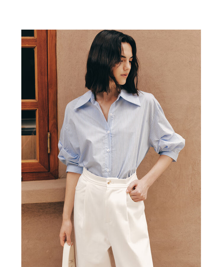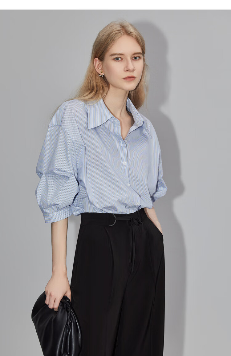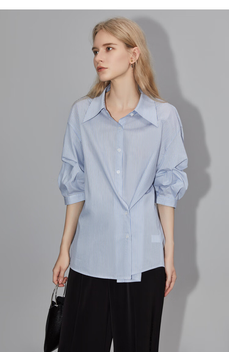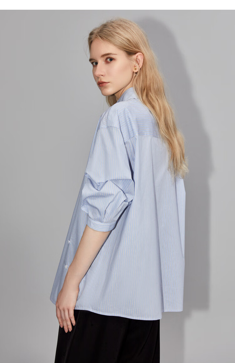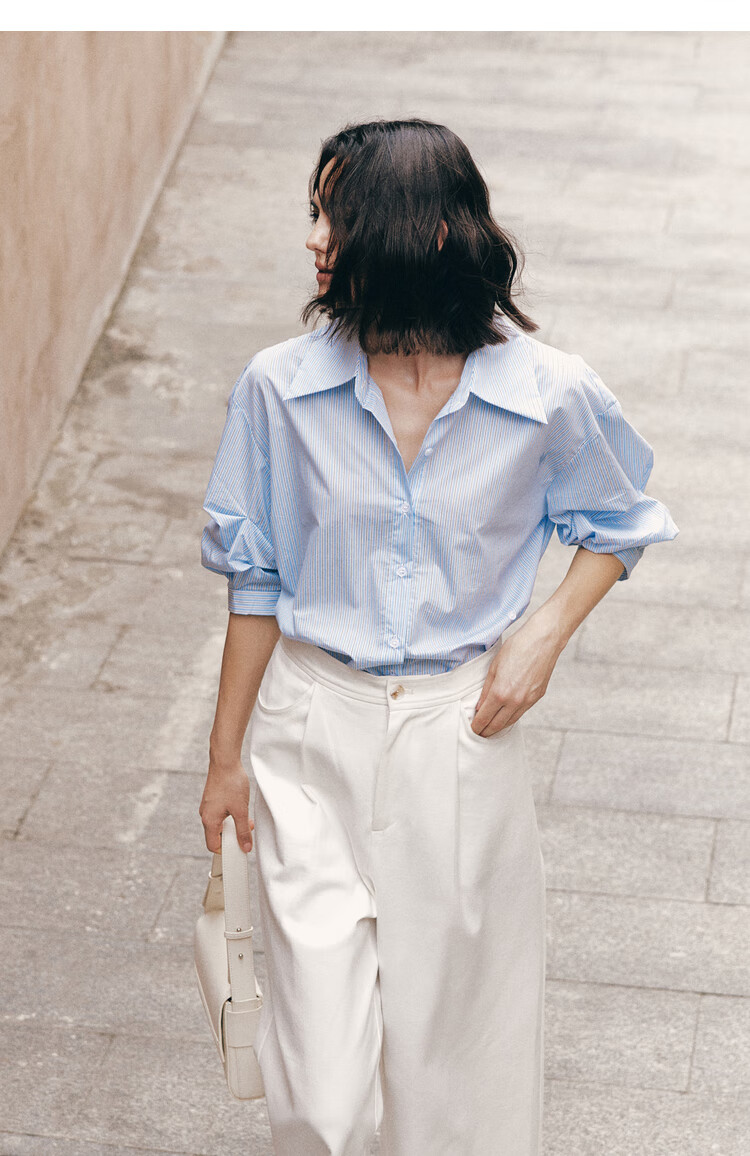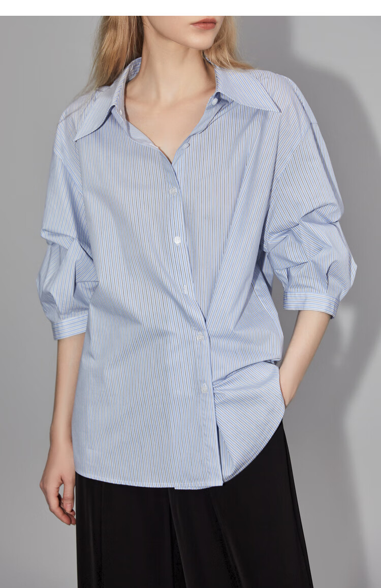 ELLE French fashion style age-reducing striped shirt for women 2026 spring new design loose niche top striped M