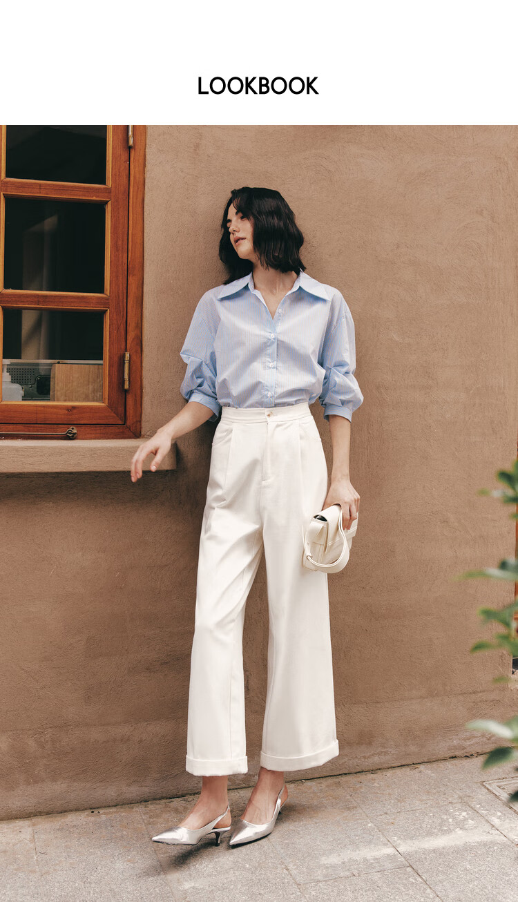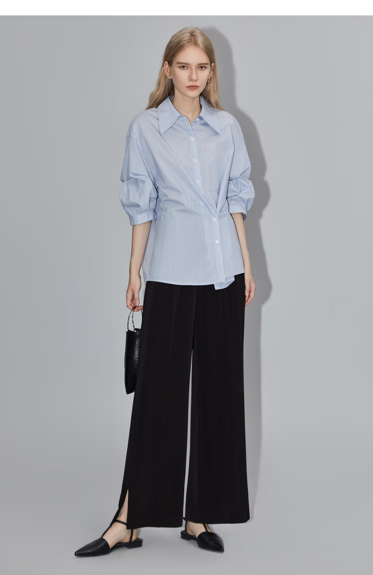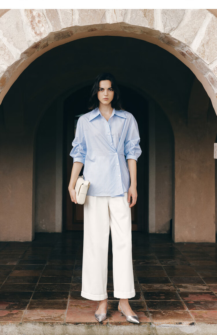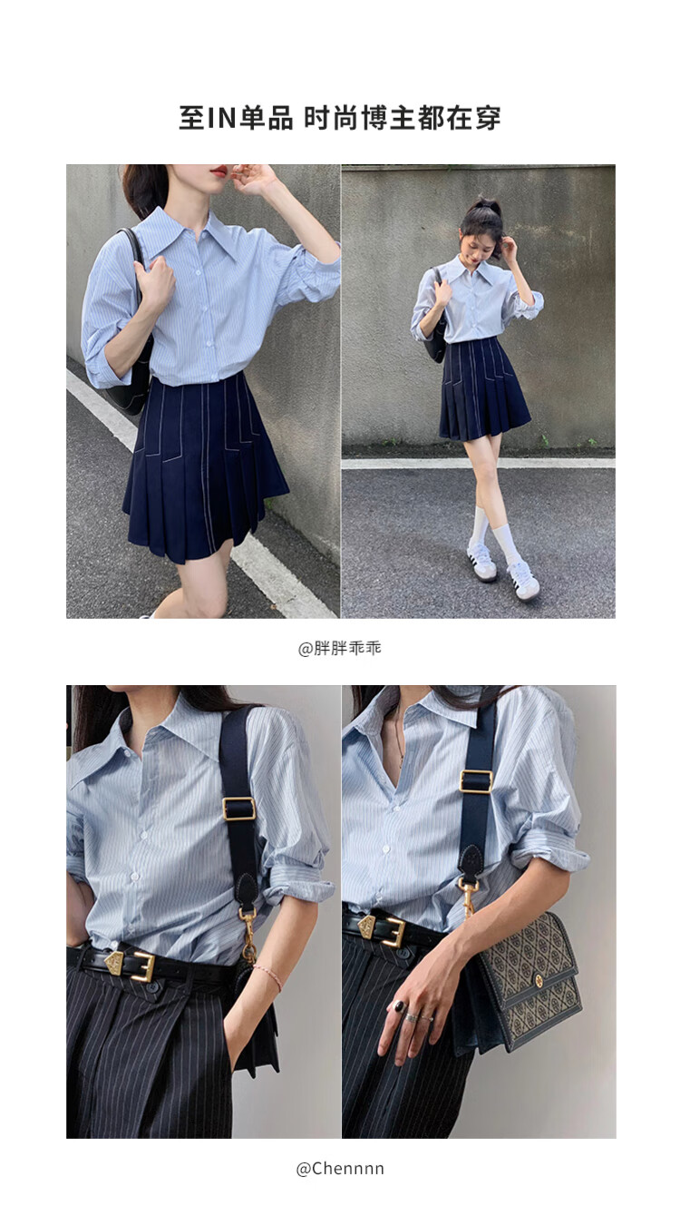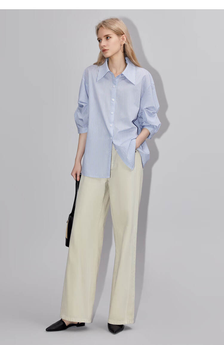 ELLE French fashion style age-reducing striped shirt for women 2026 spring new design loose niche top striped M