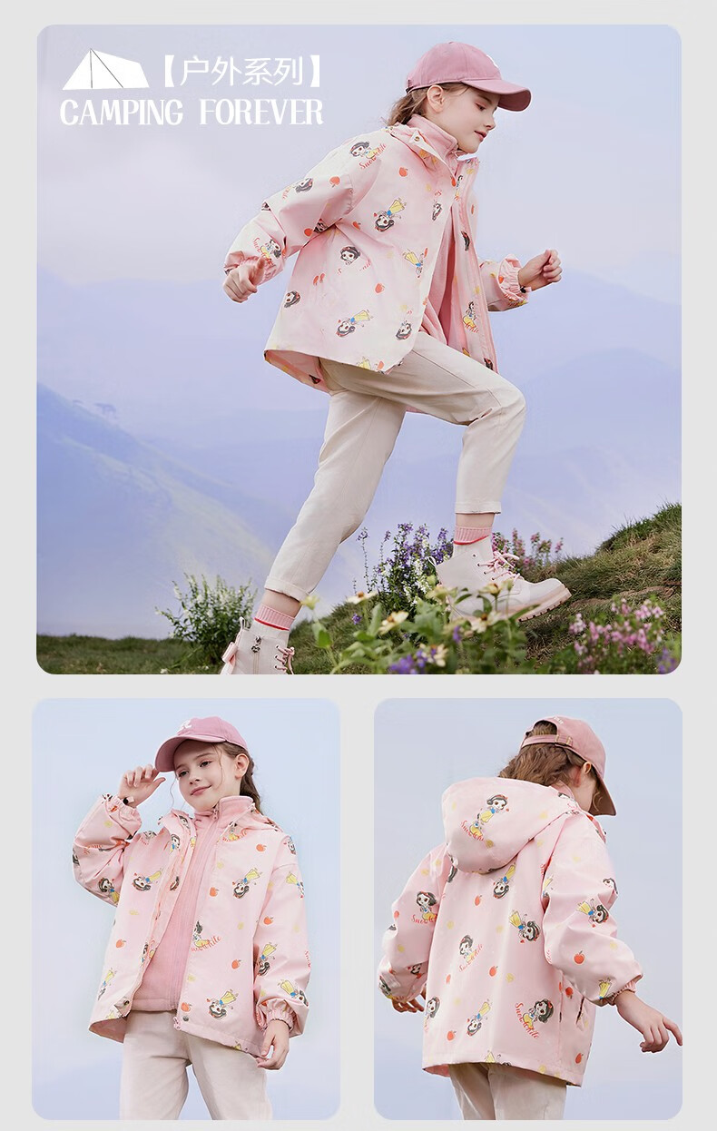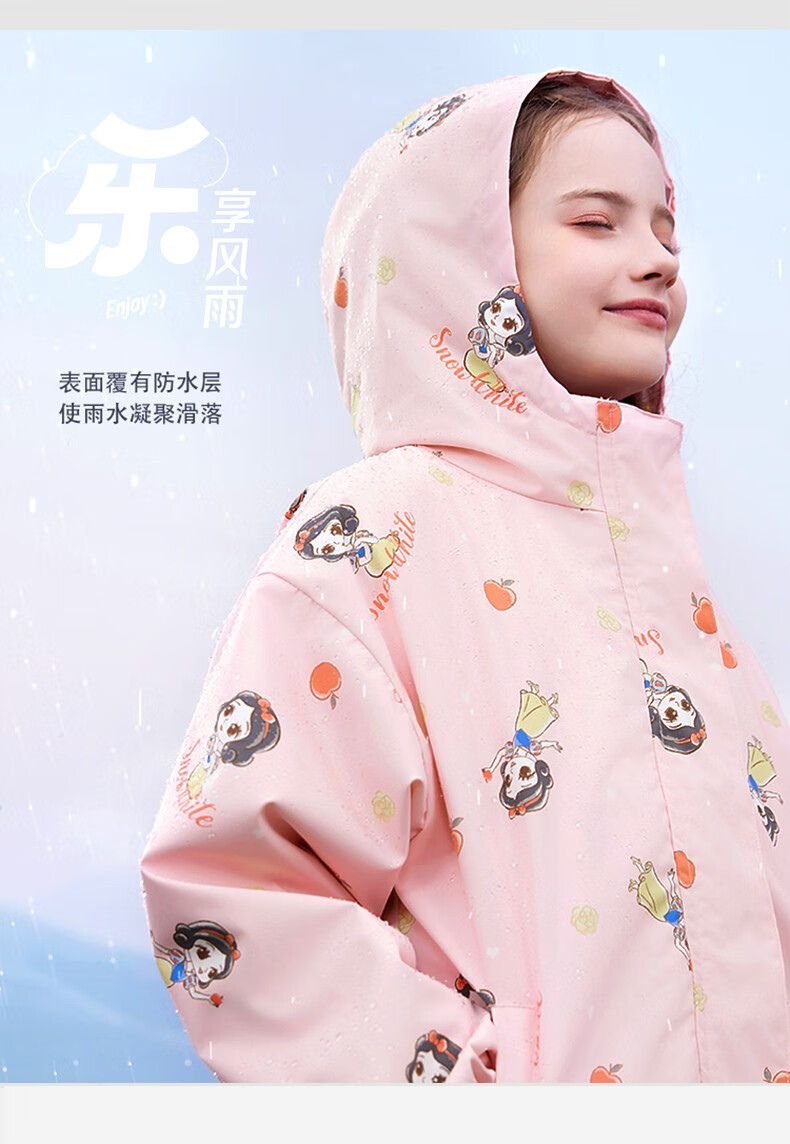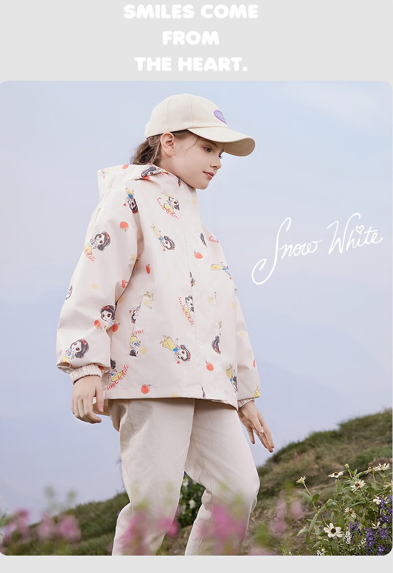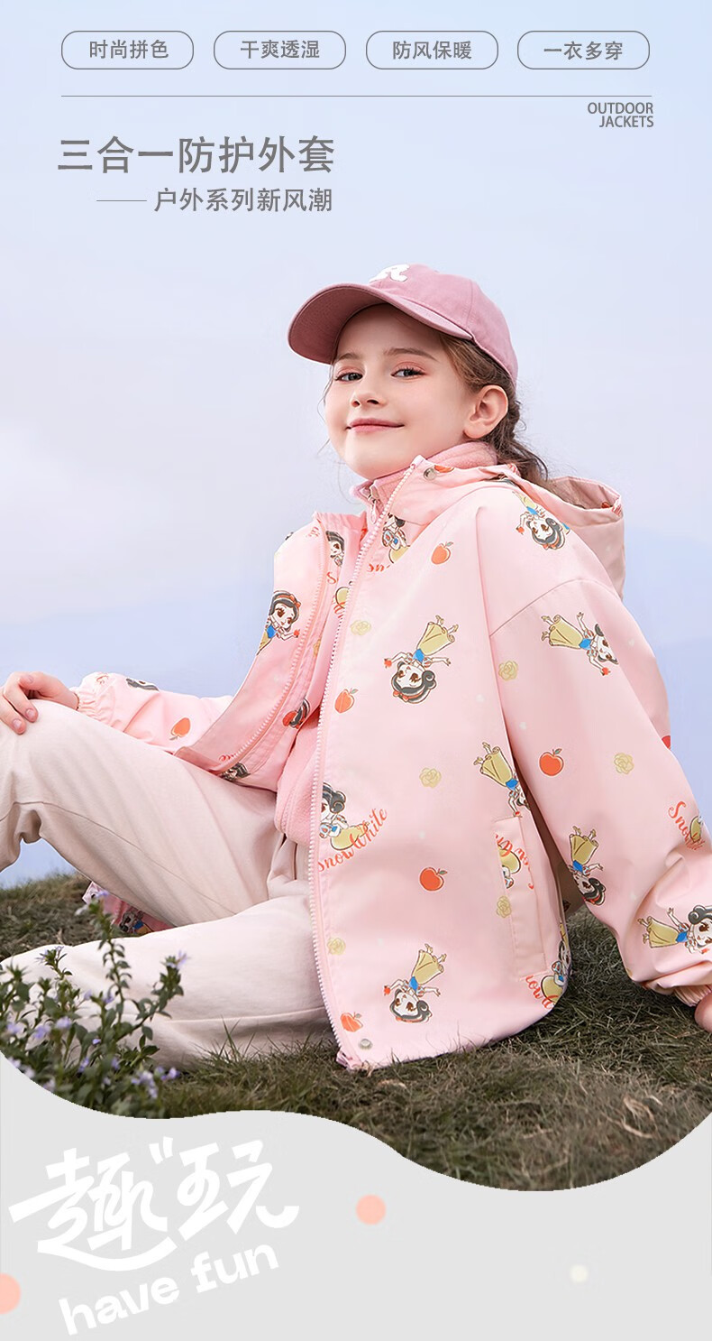 Disney girls' new style children's jacket outdoor three-in-one autumn windproof jacket for middle and large children baby pink 150 CM suitable for 10-12 years old