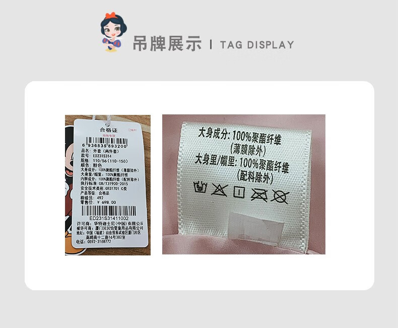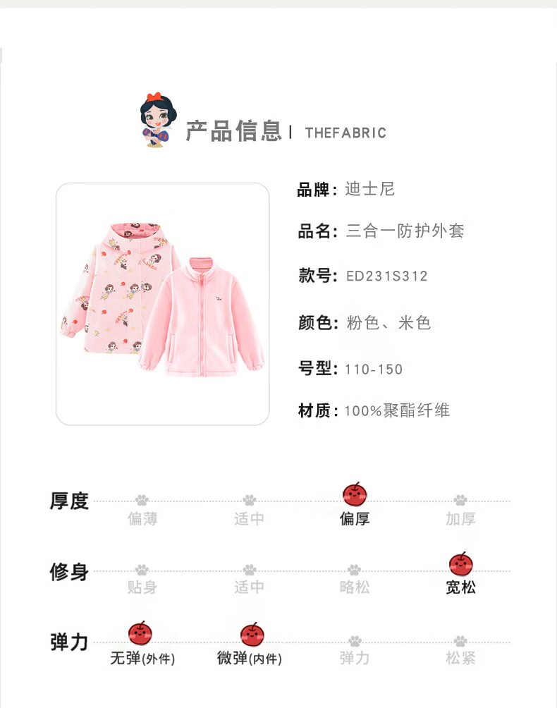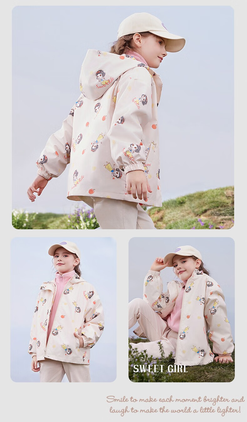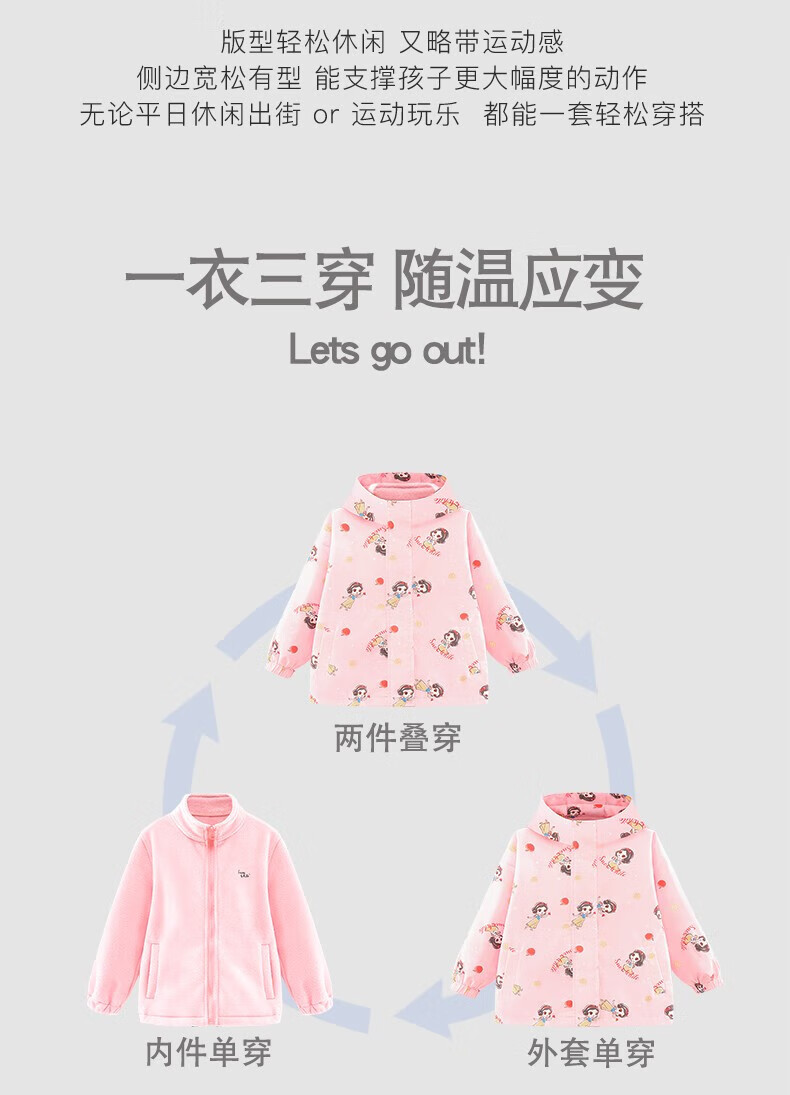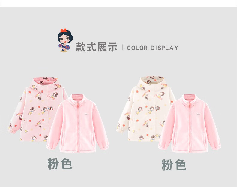 Disney girls' new style children's jacket outdoor three-in-one autumn windproof jacket for middle and large children baby pink 150 CM suitable for 10-12 years old