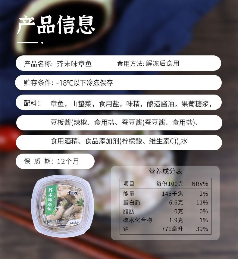 Wasabi octopus ready-to-eat octopus Japanese sushi seaweed salad spicy Japanese side dishes Wasabi octopus large box 500g*1
