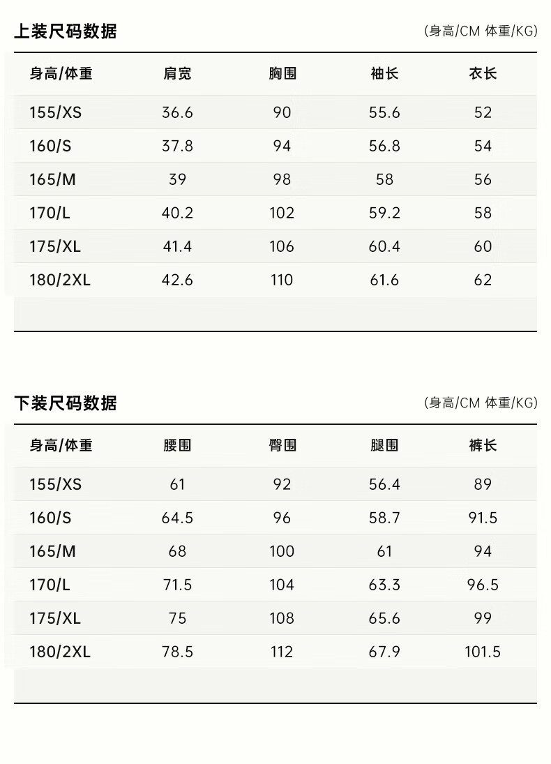 China (cm) 160-165/84-86 165-170 / 88-90 167-172 / 92-96 168-173 / 98-102 170-176 / 106-110