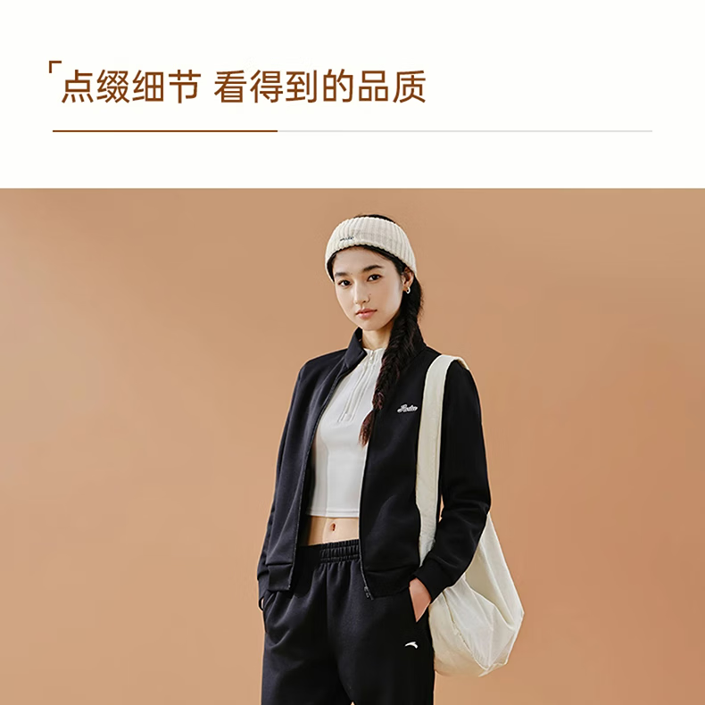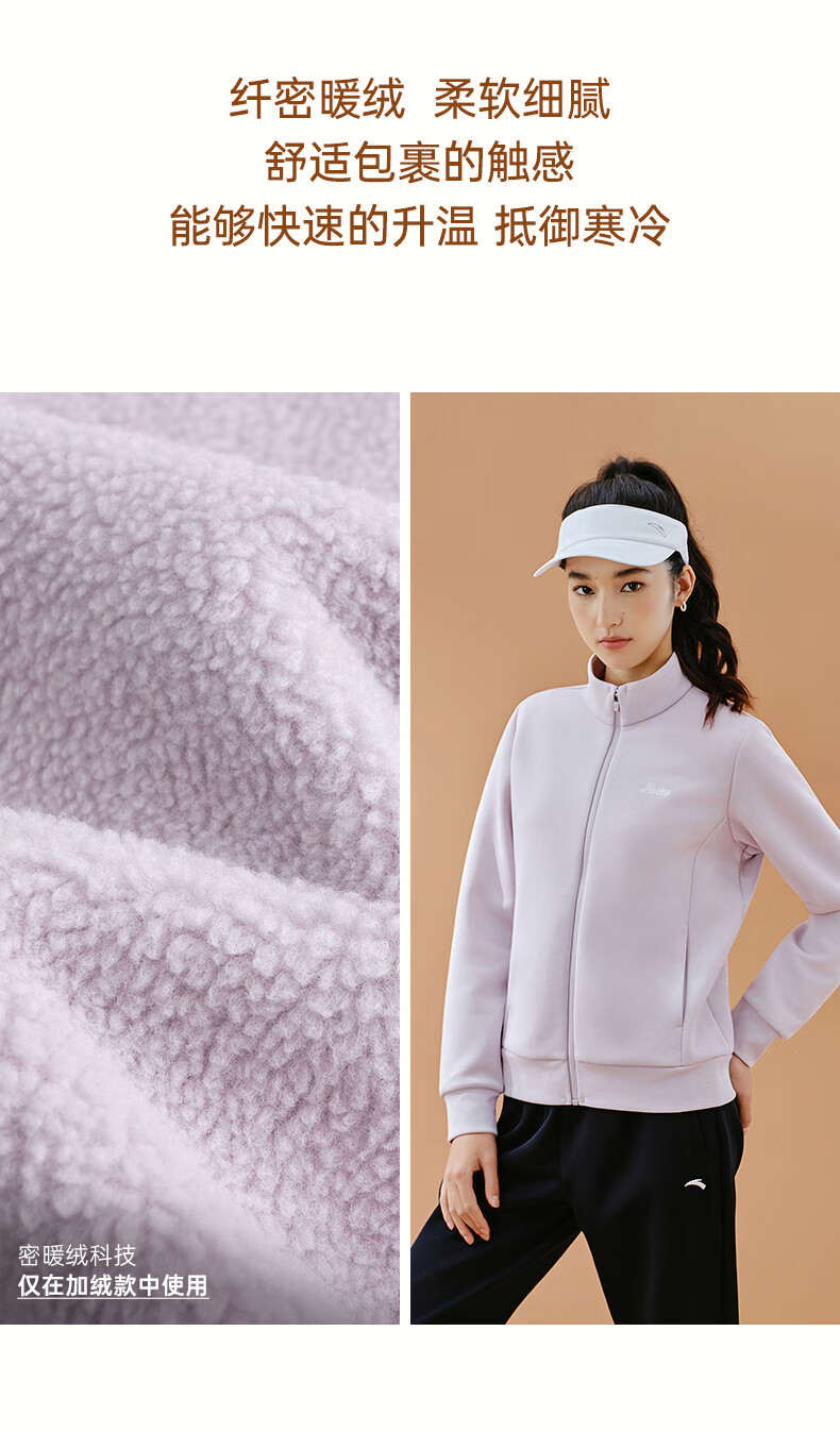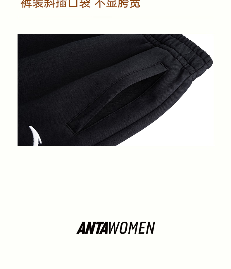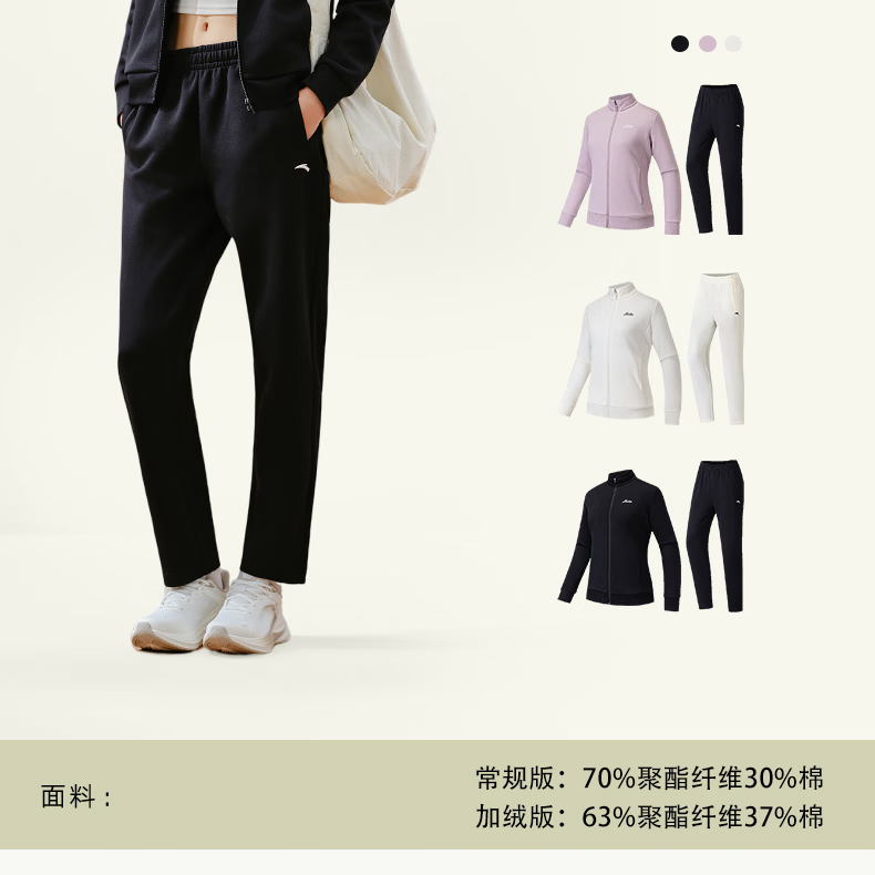 ANTA velvet warm sports suit for women winter women's casual suit sportswear jacket women's trousers sports two-piece set. Recommended regular two-piece set for autumn and winter. Basic black-1 M/female 165