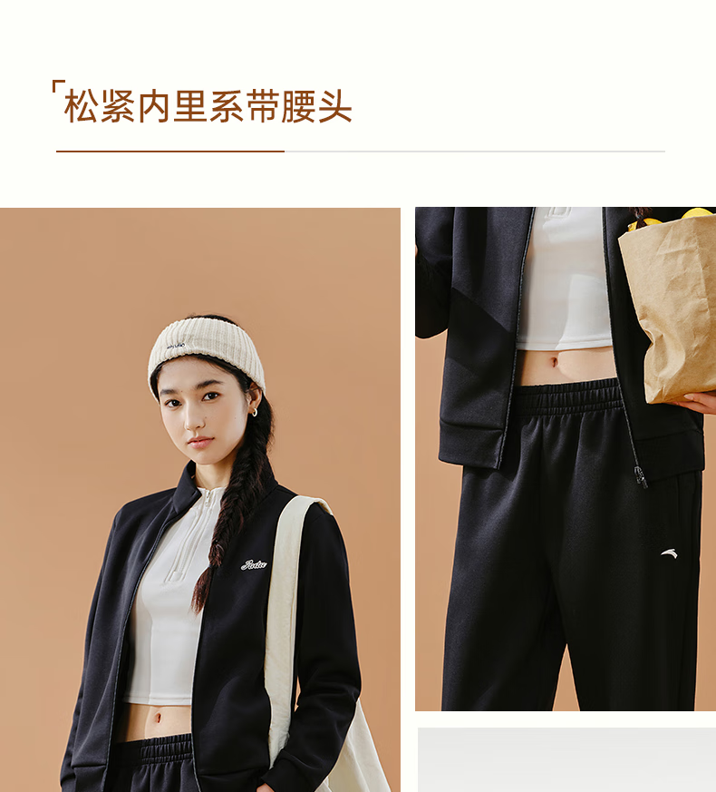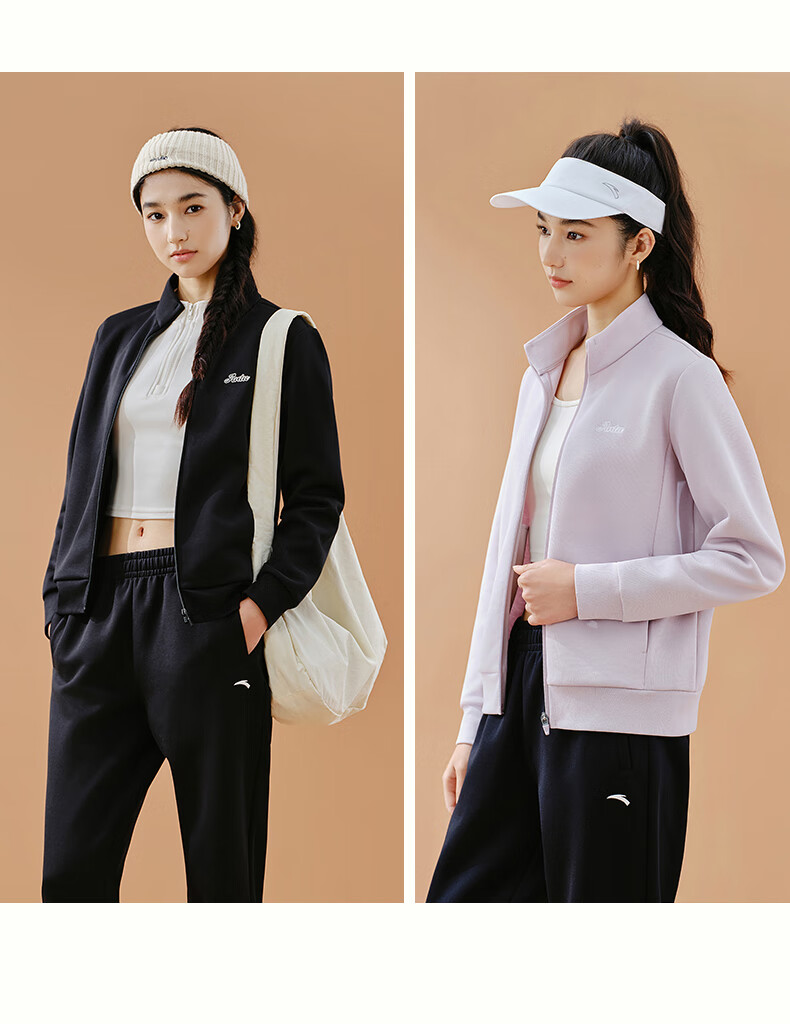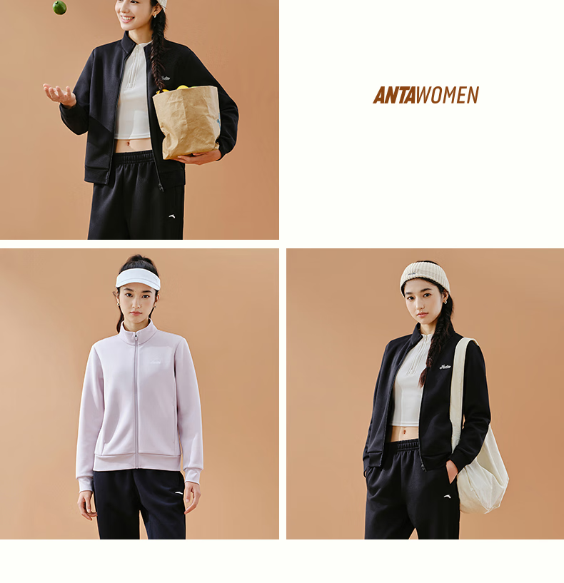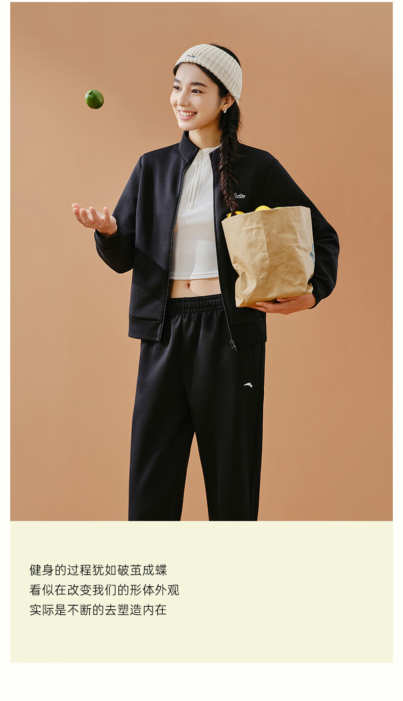 ANTA velvet warm sports suit for women winter women's casual suit sportswear jacket women's trousers sports two-piece set. Recommended regular two-piece set for autumn and winter. Basic black-1 M/female 165