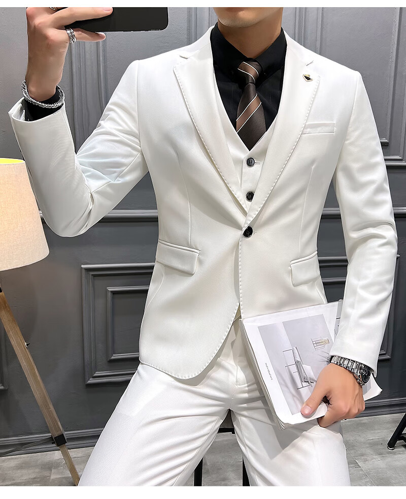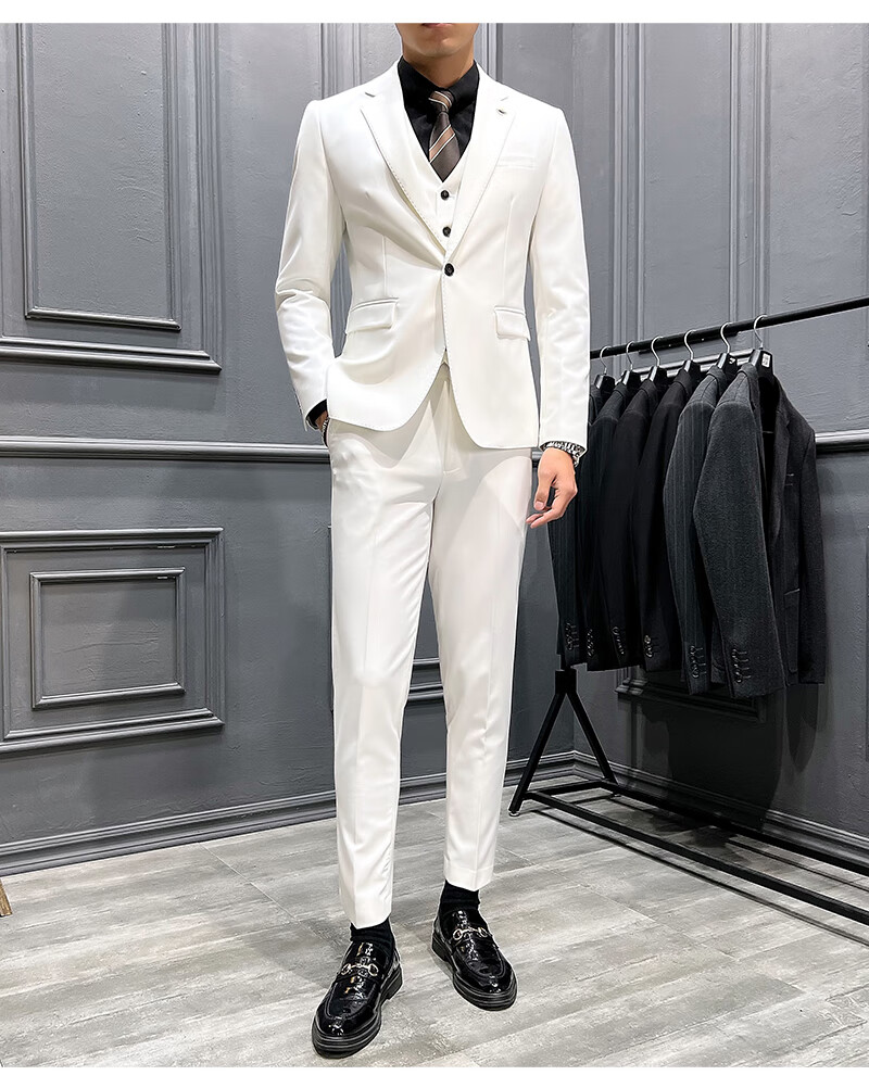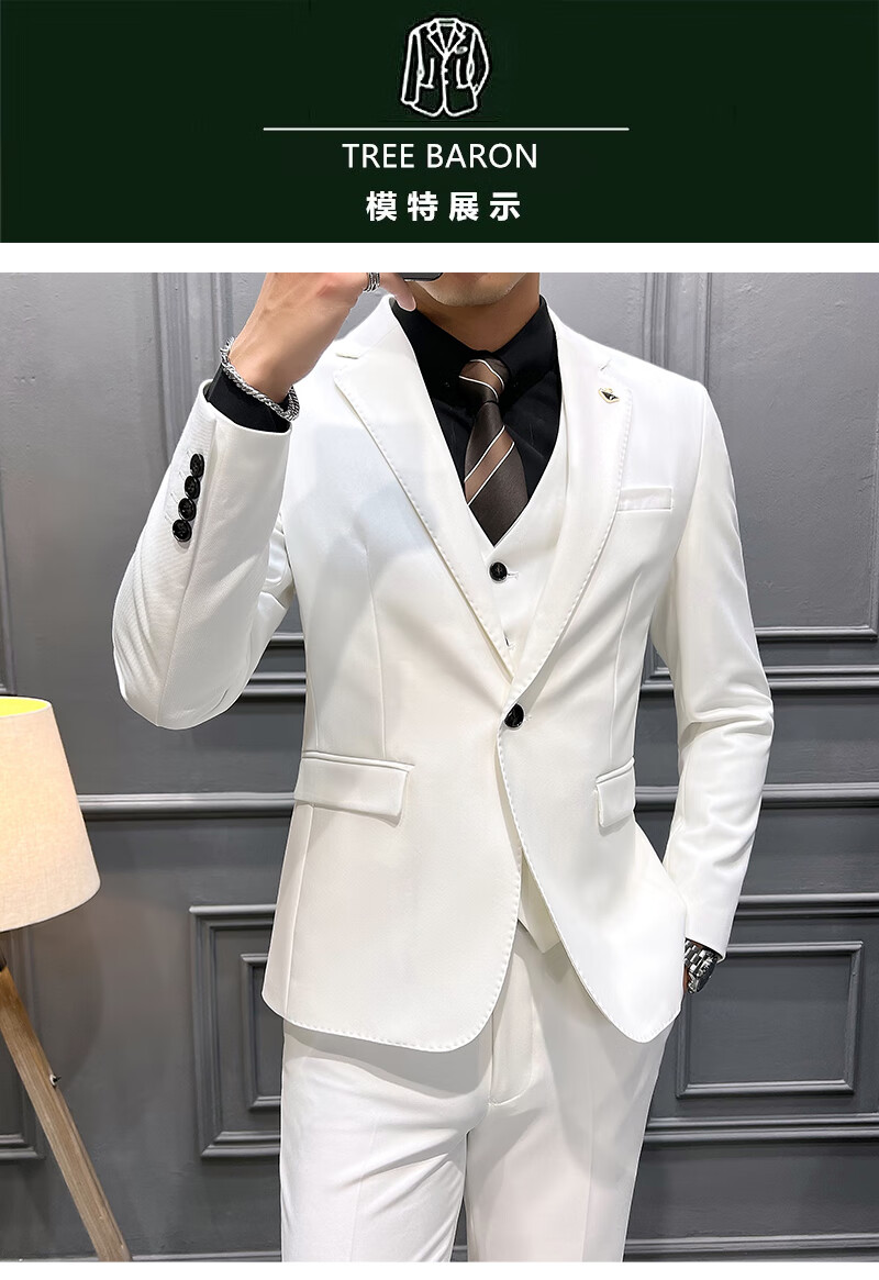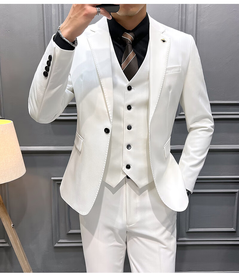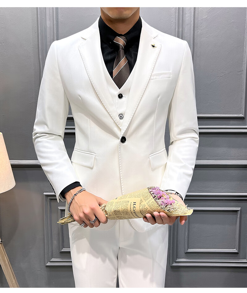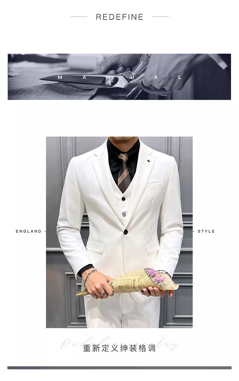 ROMON Groom's Suit Men's Business Professional Formal Wedding Dress British Style Casual Slim Korean Style Suit Men's White Three-piece Suit XL