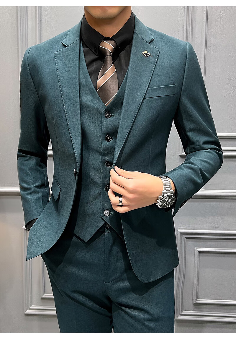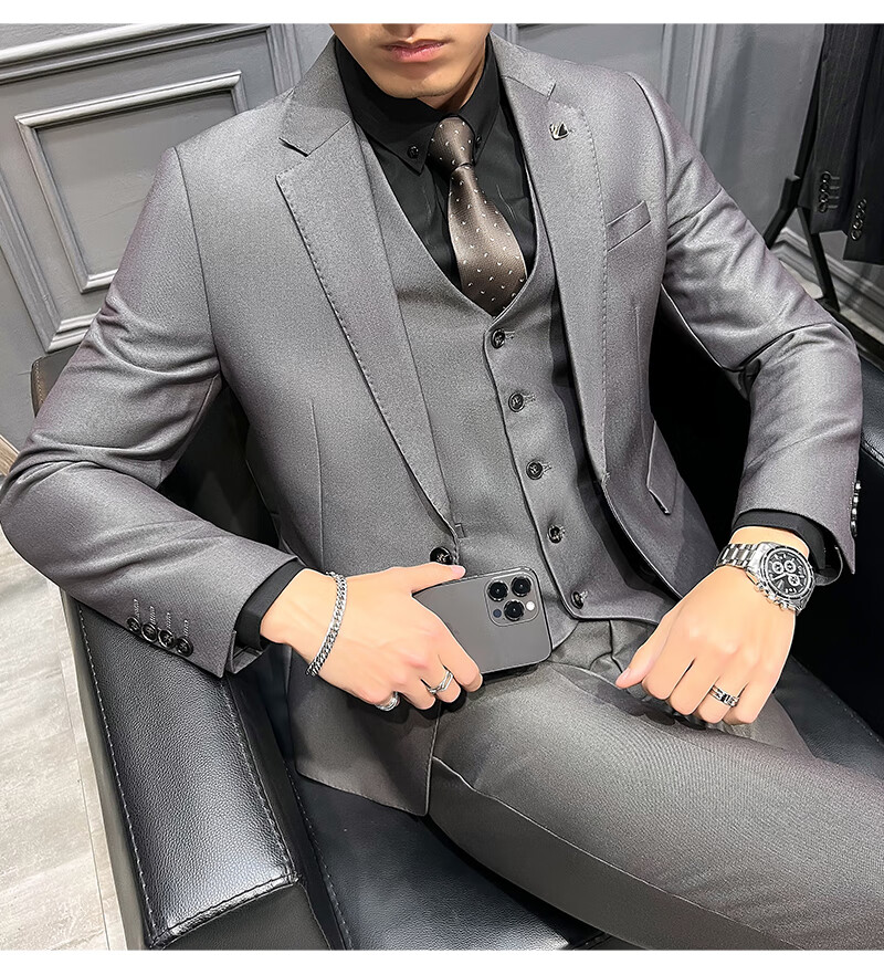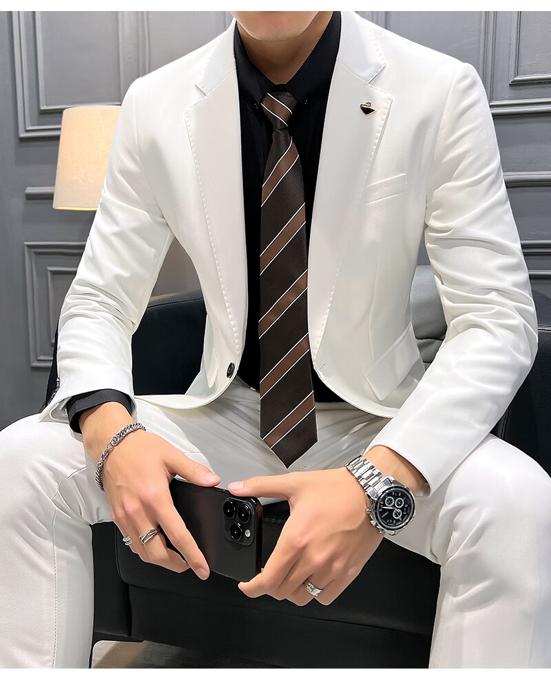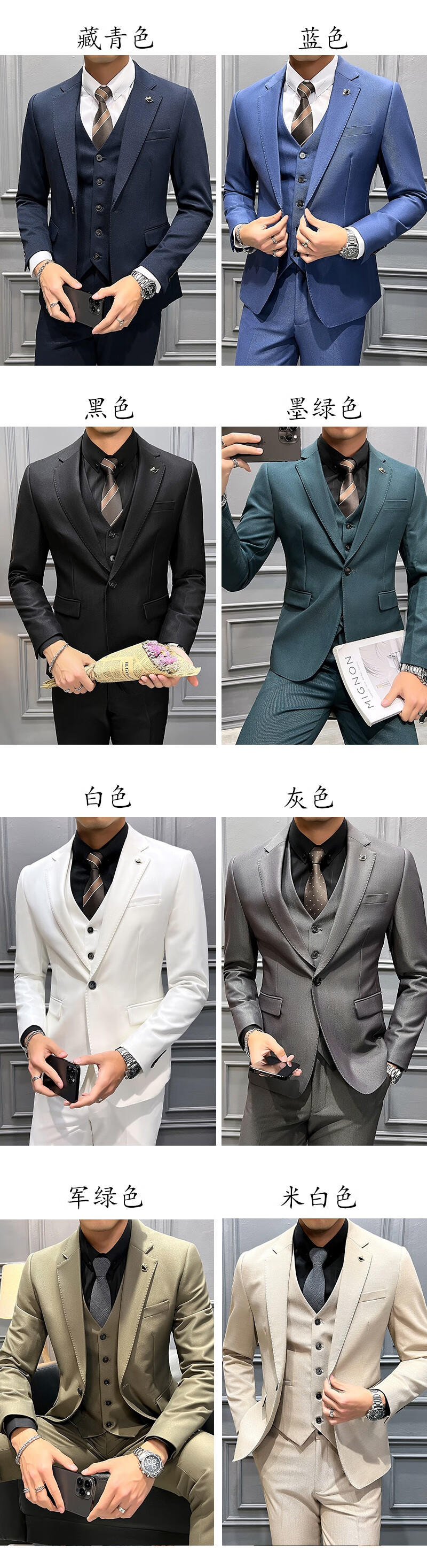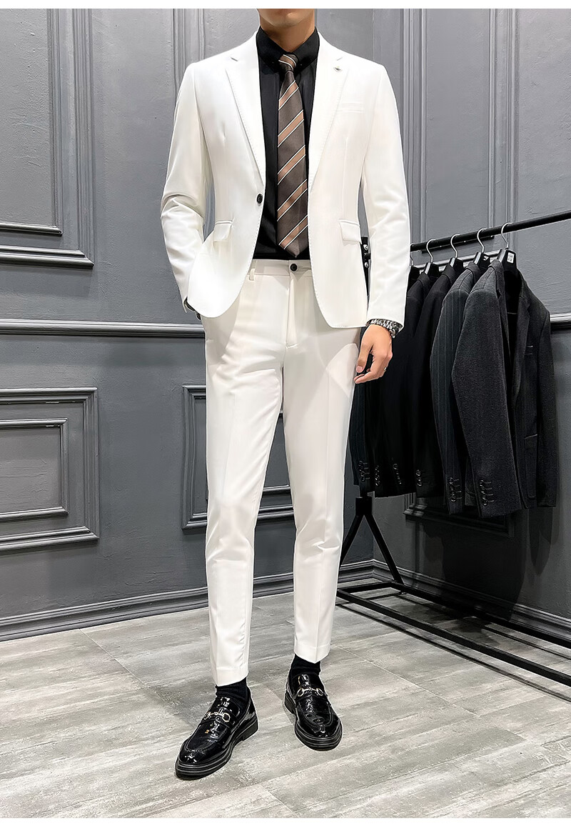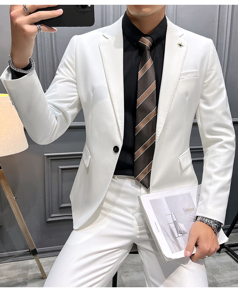 ROMON Groom's Suit Men's Business Professional Formal Wedding Dress British Style Casual Slim Korean Style Suit Men's White Three-piece Suit XL