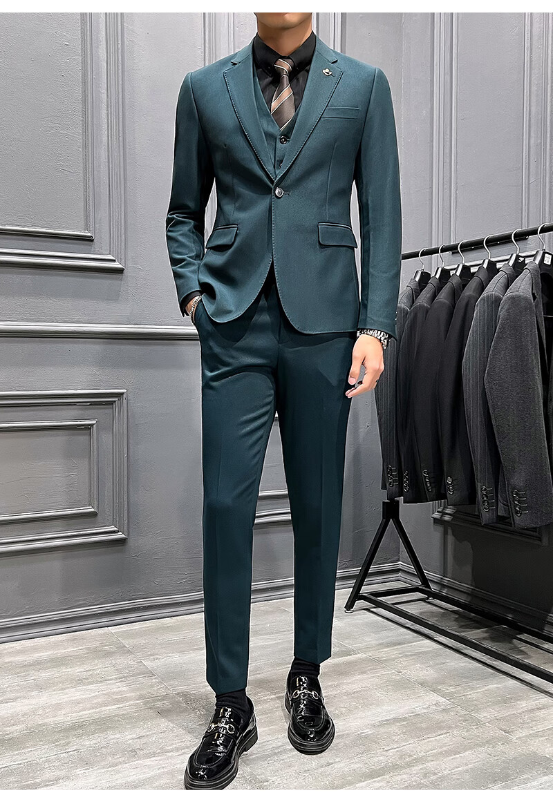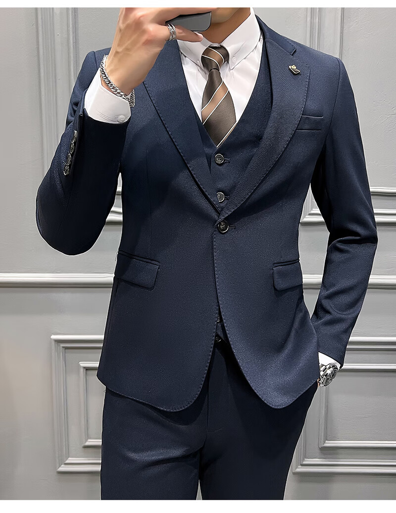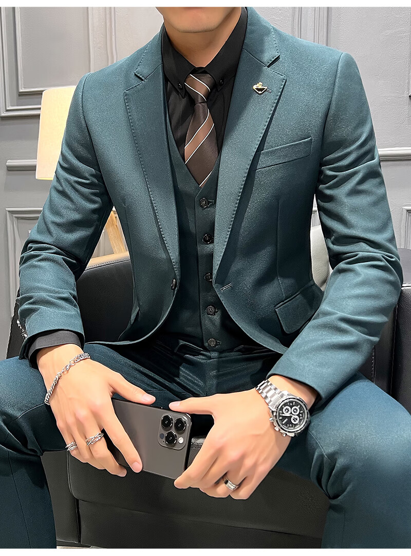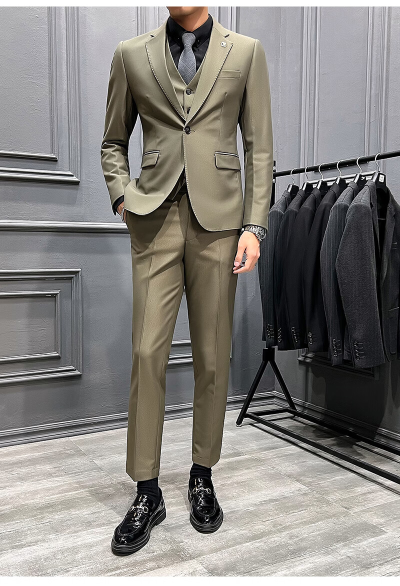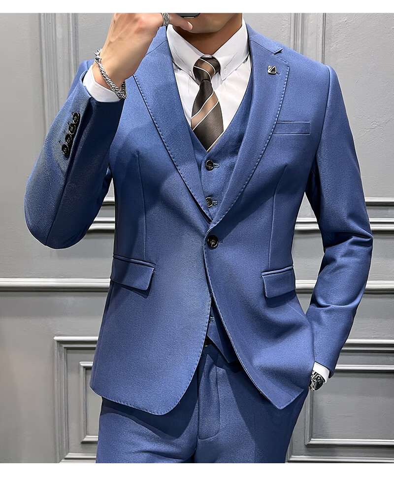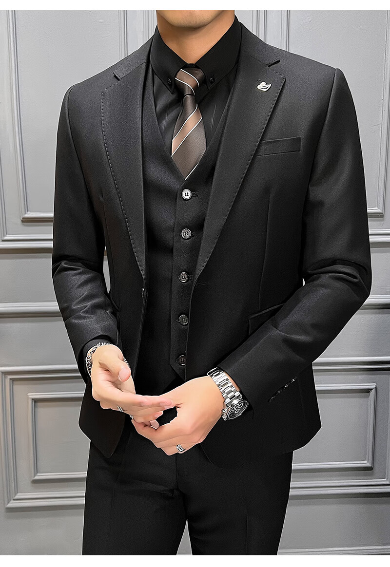 ROMON Groom's Suit Men's Business Professional Formal Wedding Dress British Style Casual Slim Korean Style Suit Men's White Three-piece Suit XL