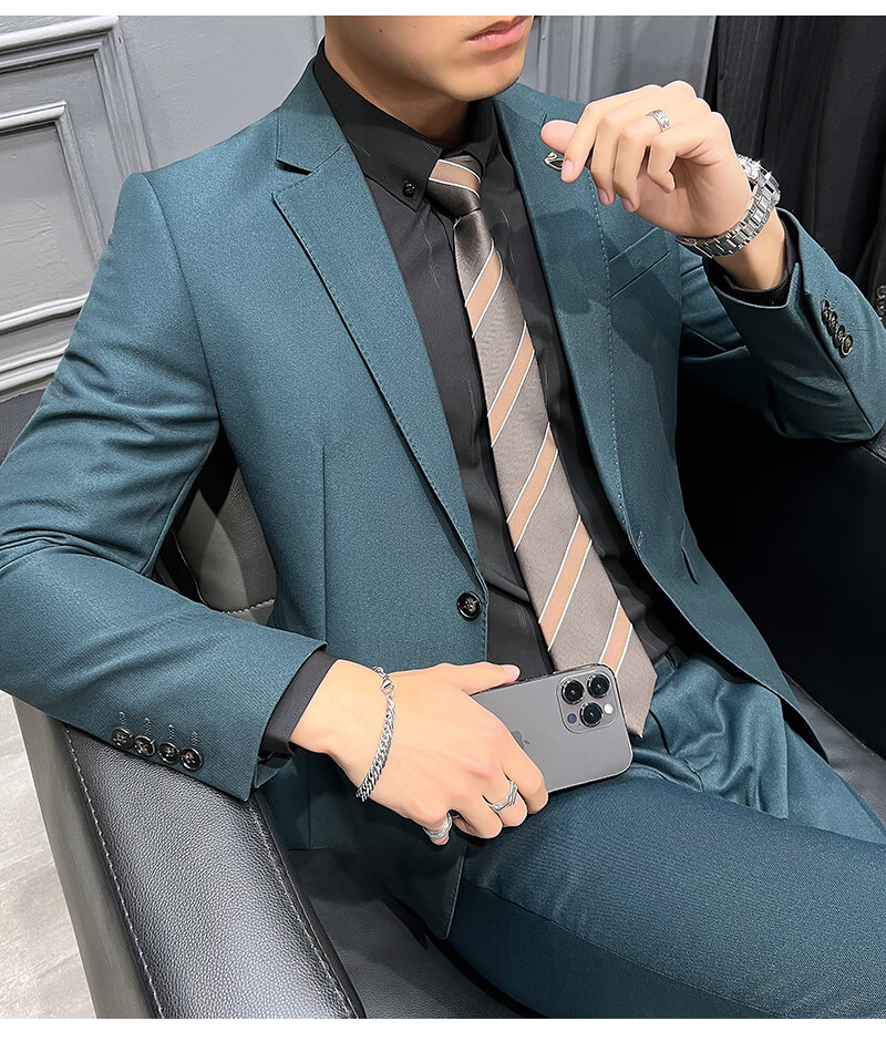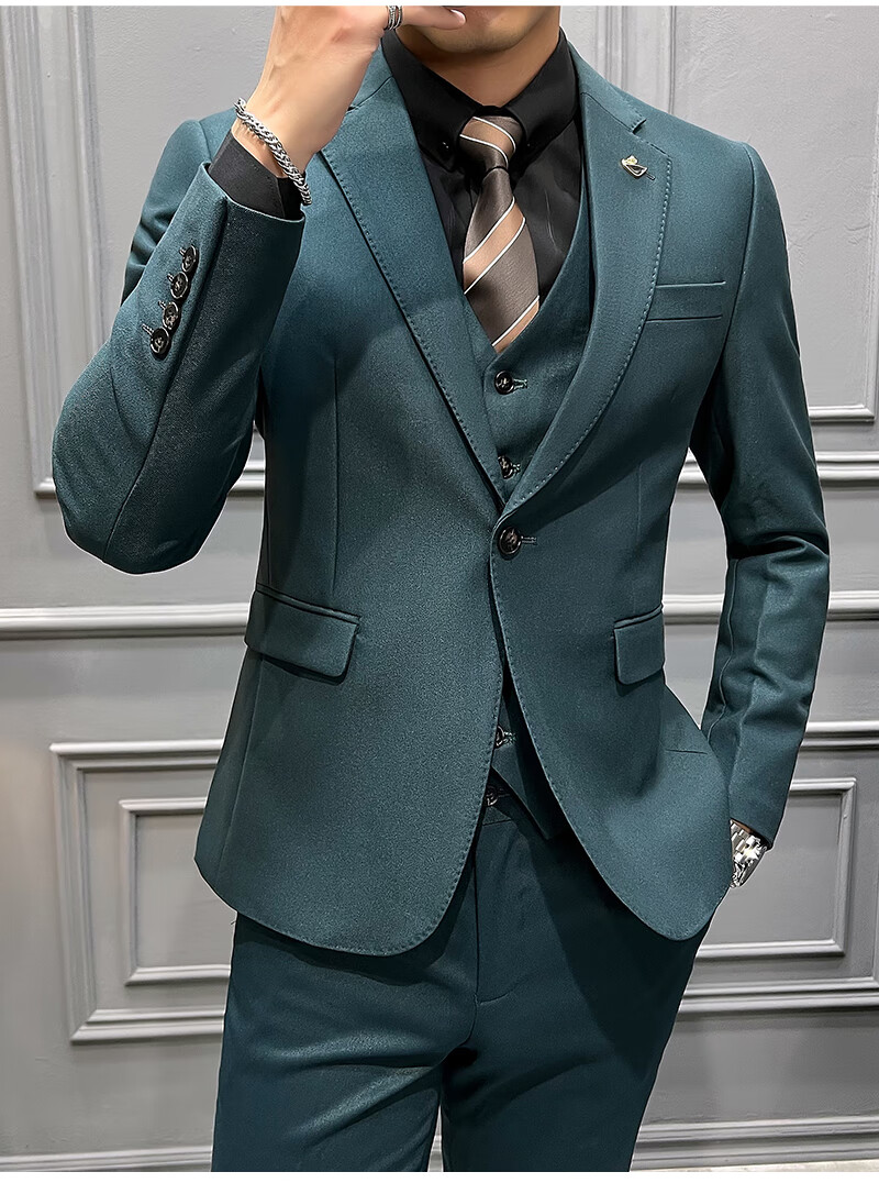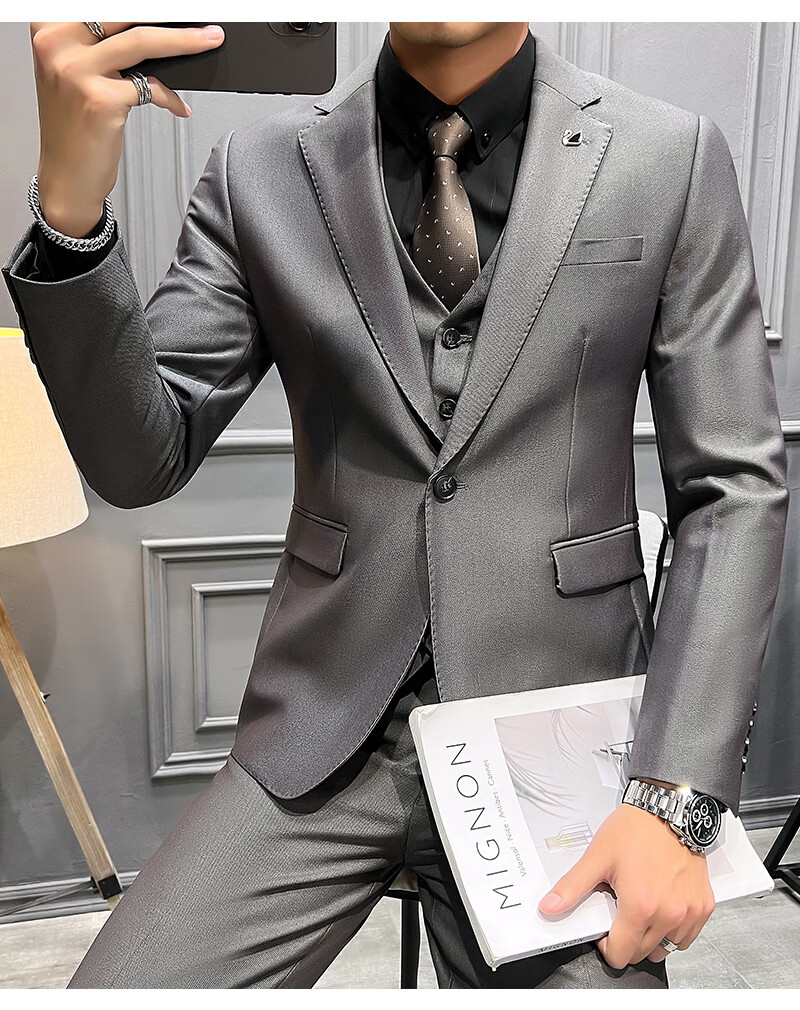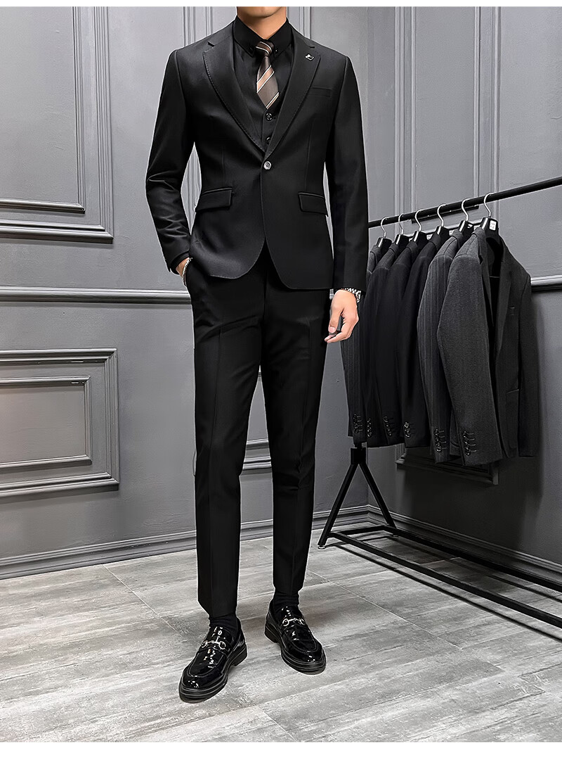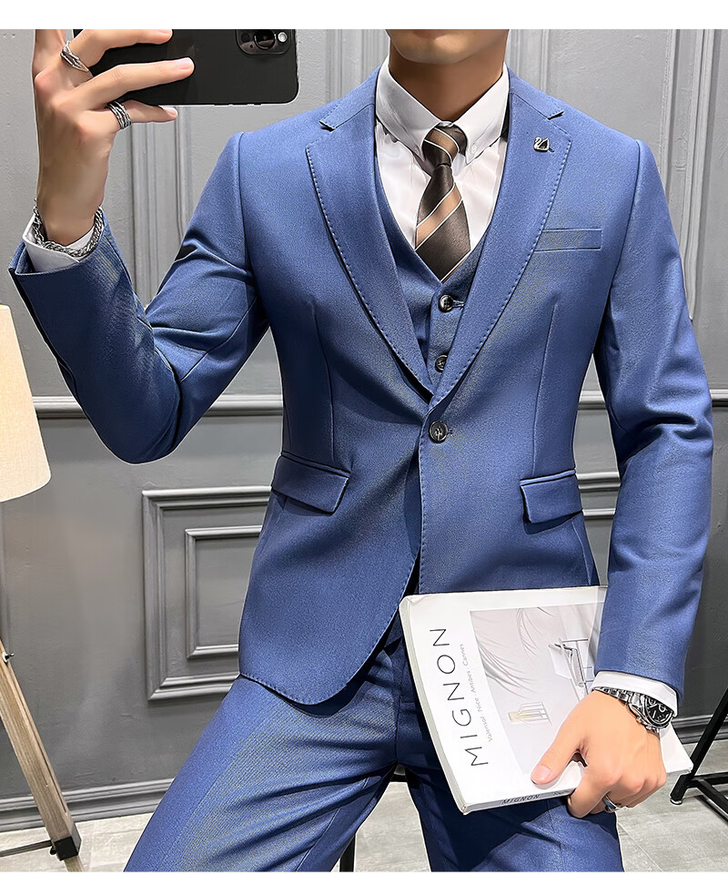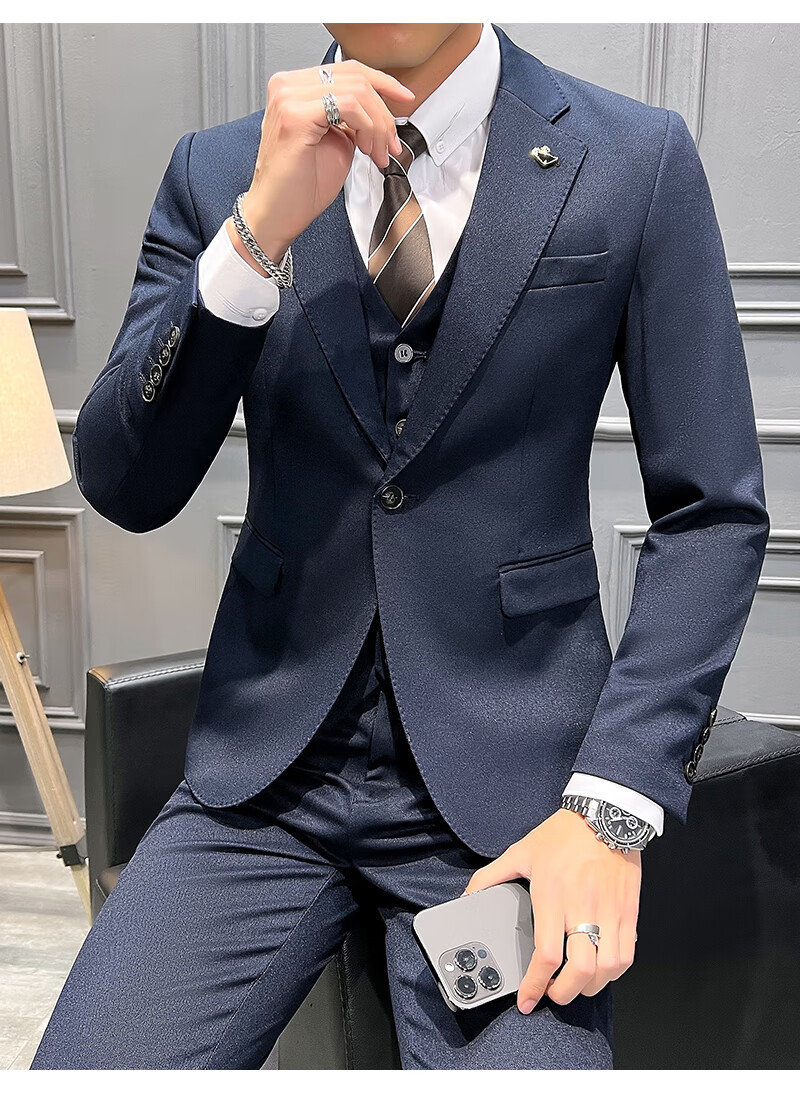ROMON Groom's Suit Men's Business Professional Formal Wedding Dress British Style Casual Slim Korean Style Suit Men's White Three-piece Suit XL