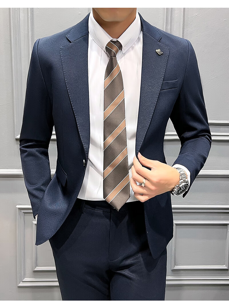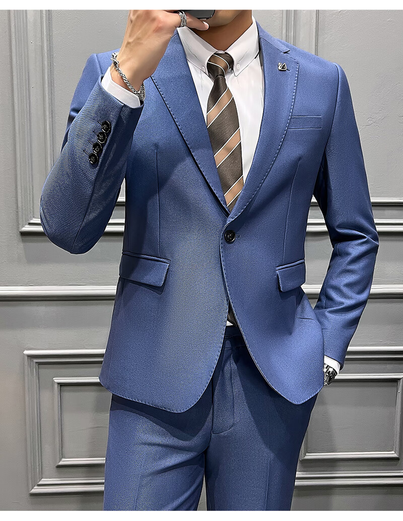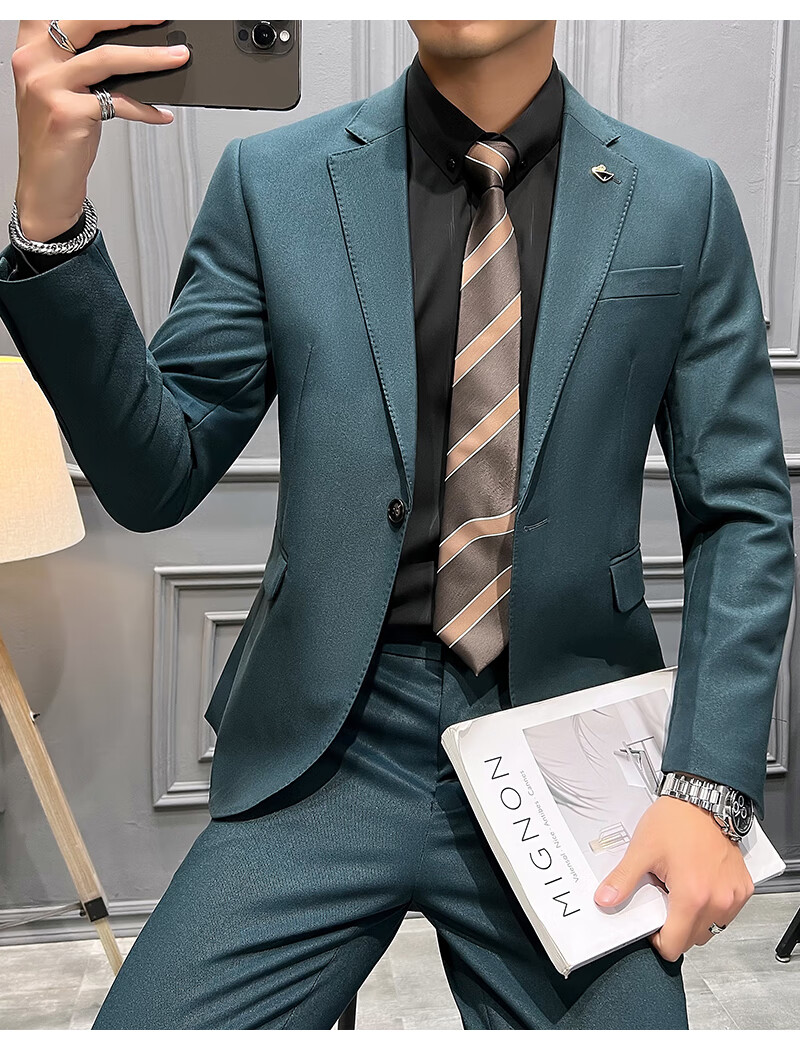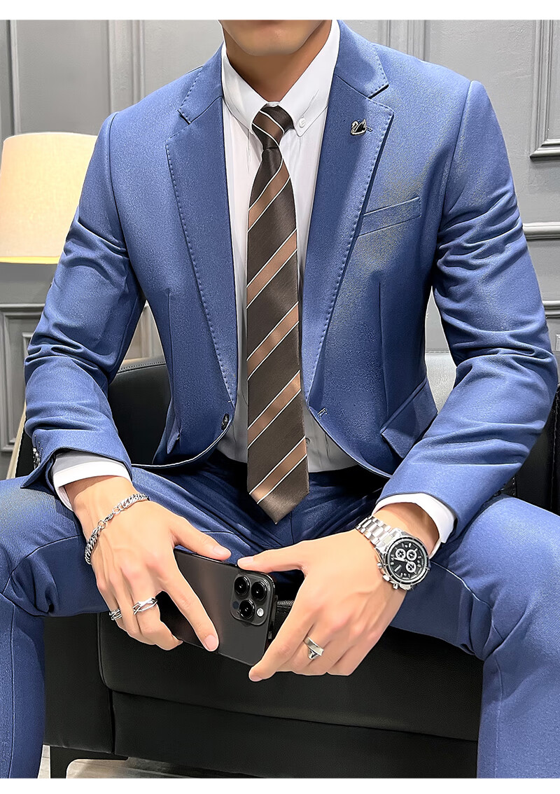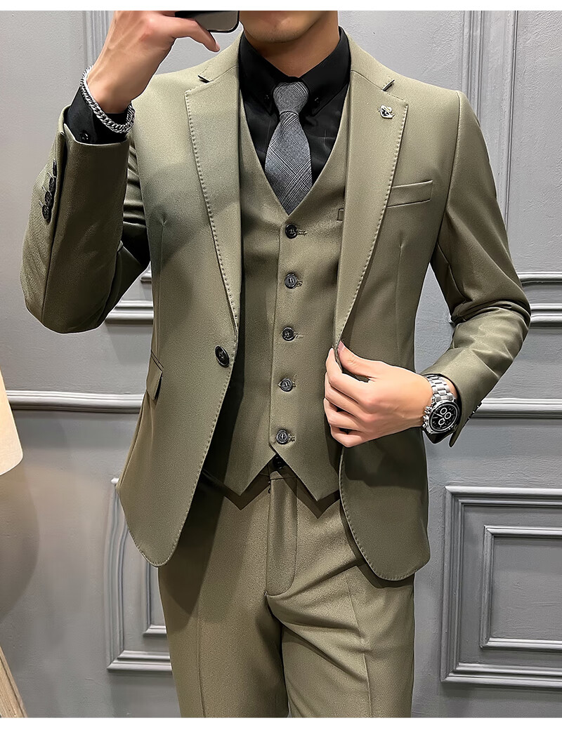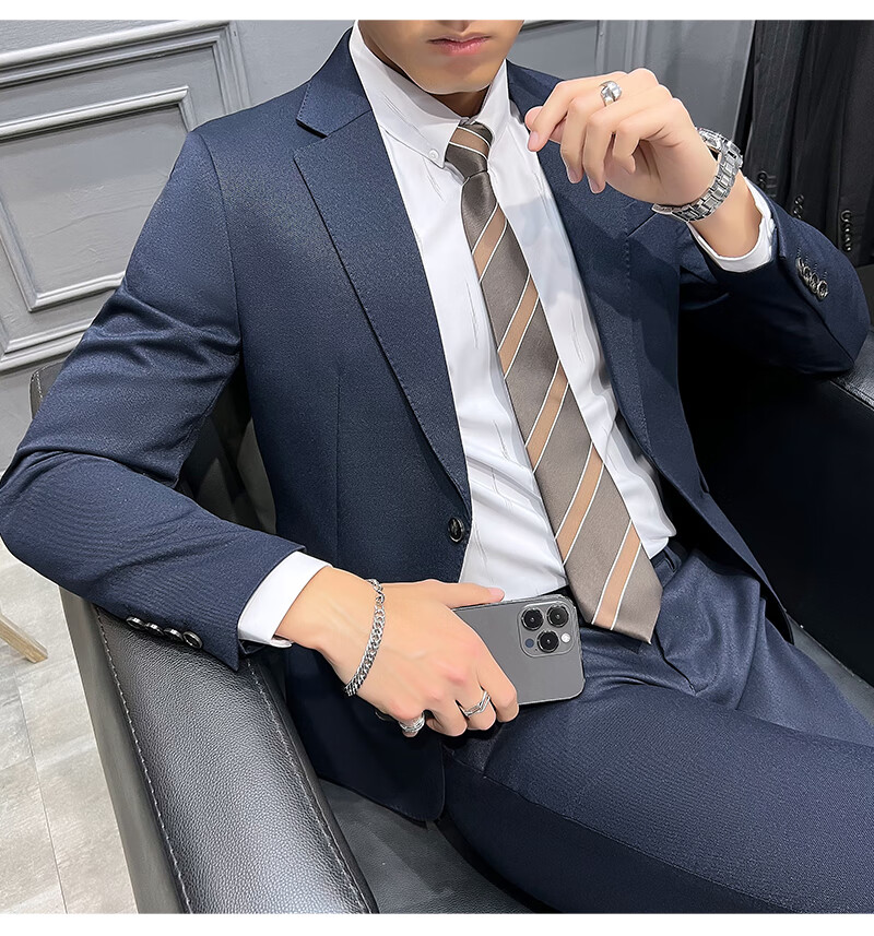 ROMON Groom's Suit Men's Business Professional Formal Wedding Dress British Style Casual Slim Korean Style Suit Men's White Three-piece Suit XL