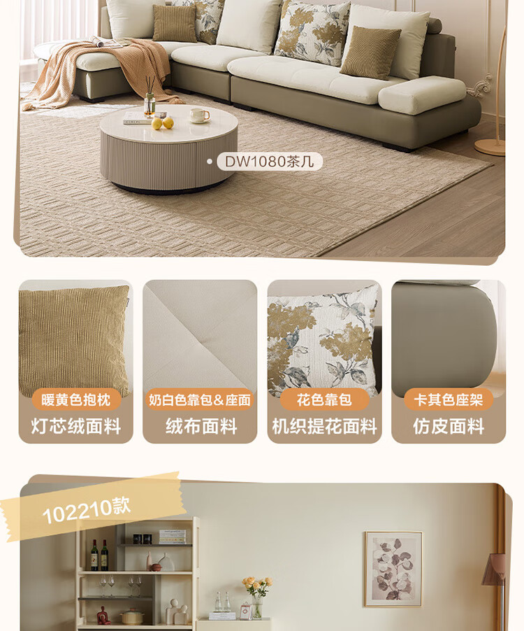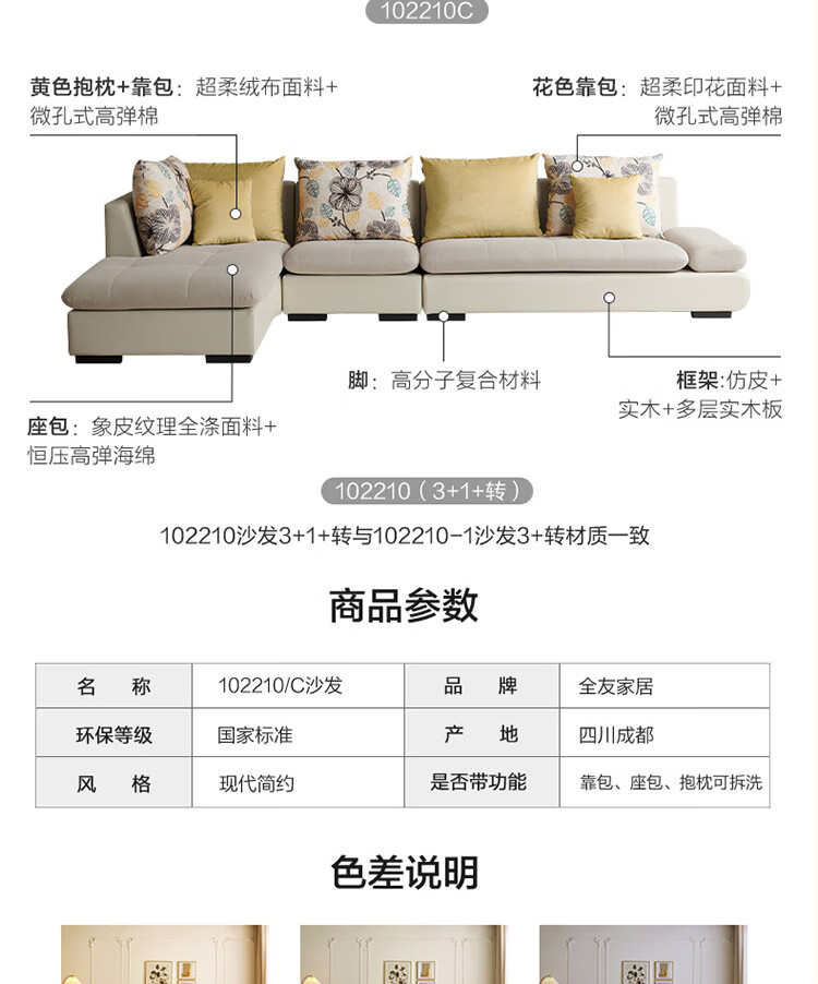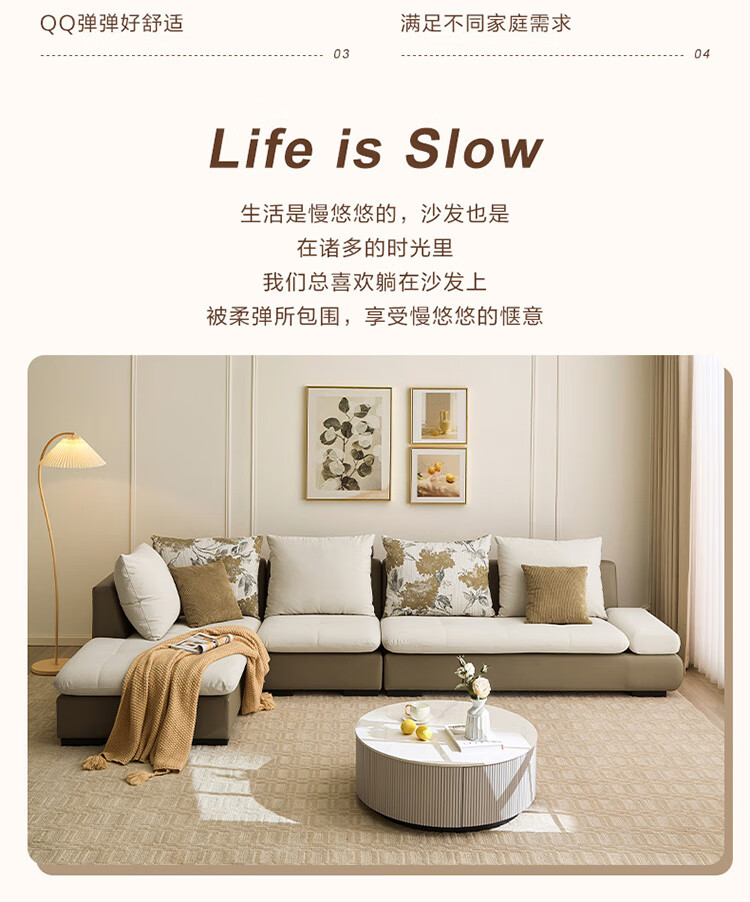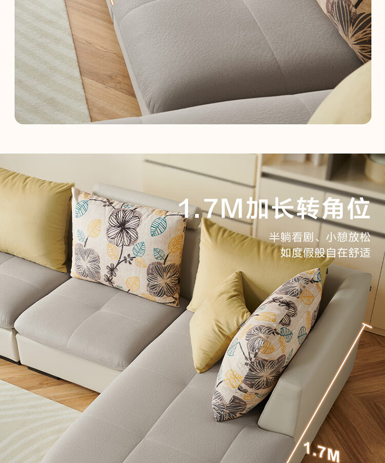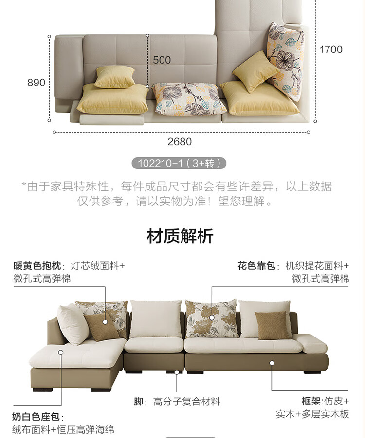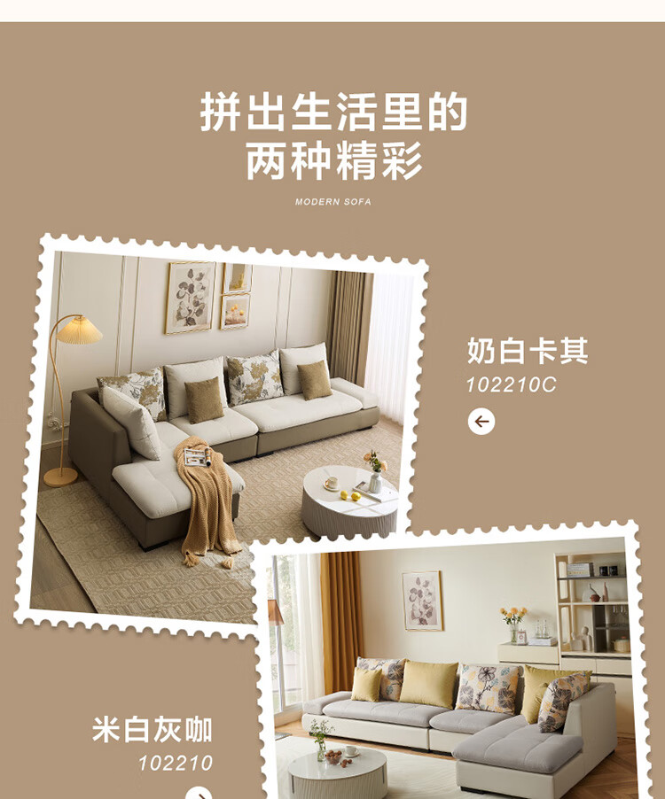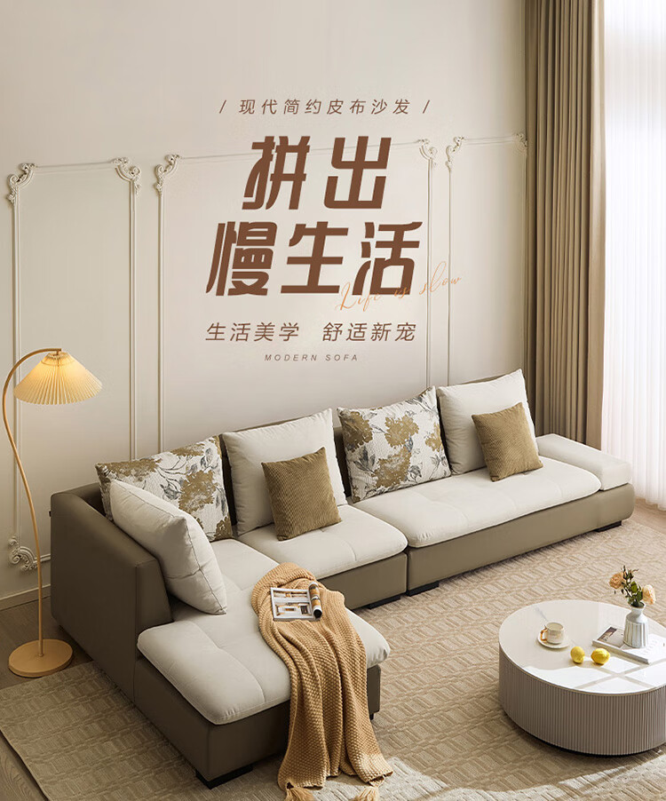 Quanyou Home modern style L-shaped fabric corner sofa living room simple large and small household imperial concubine combination sofa gray coffee color | 2.68m left concubine sofa