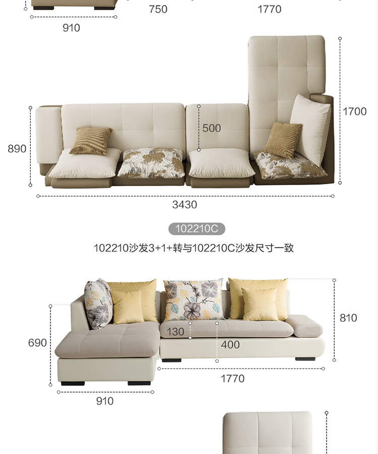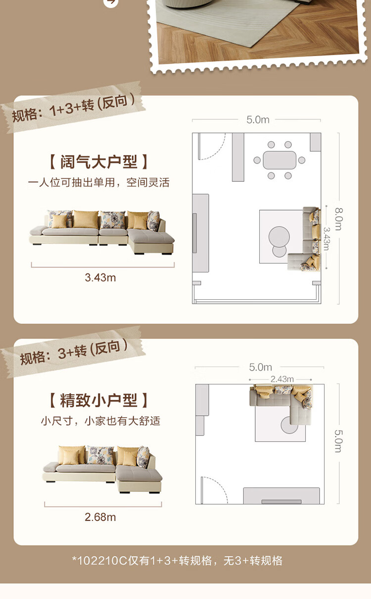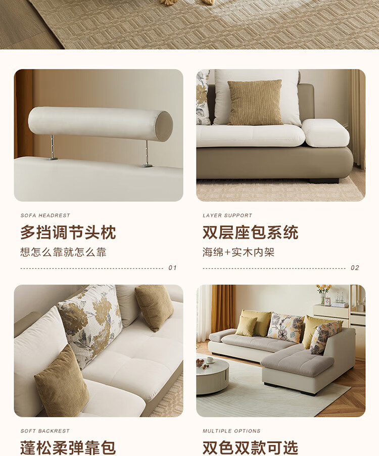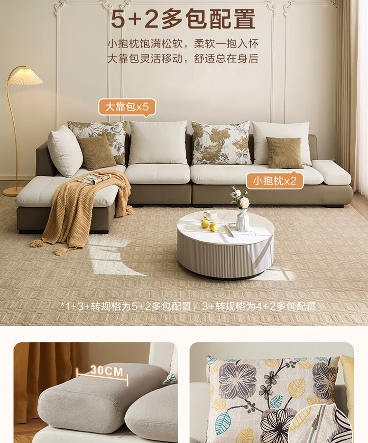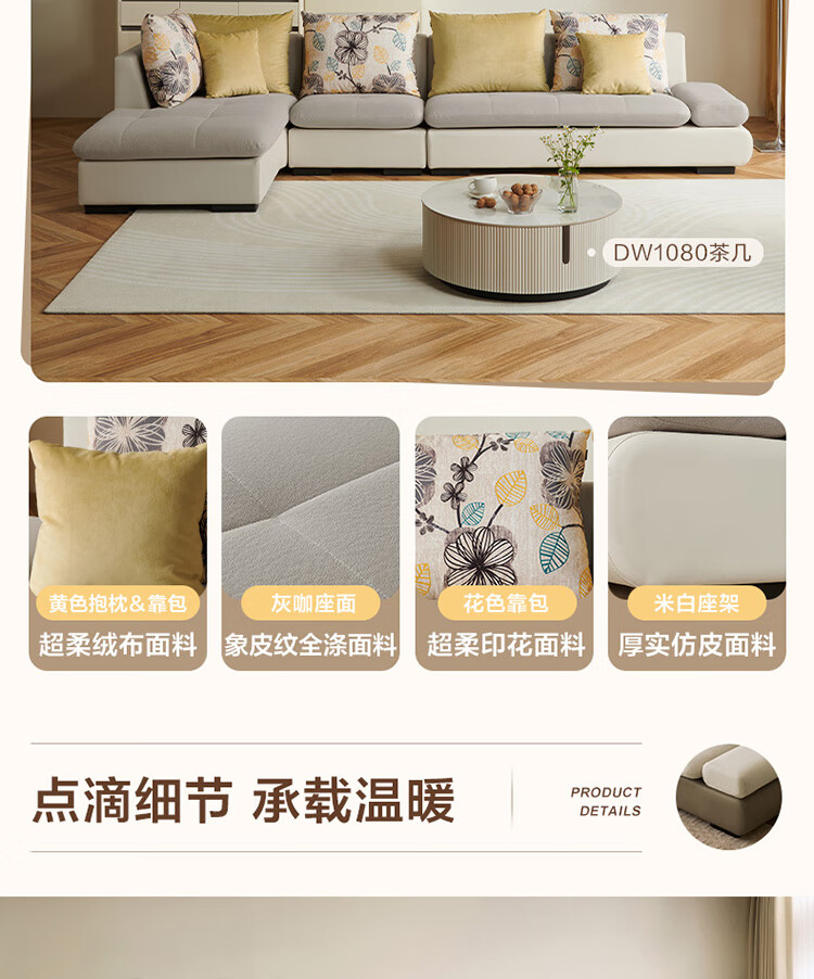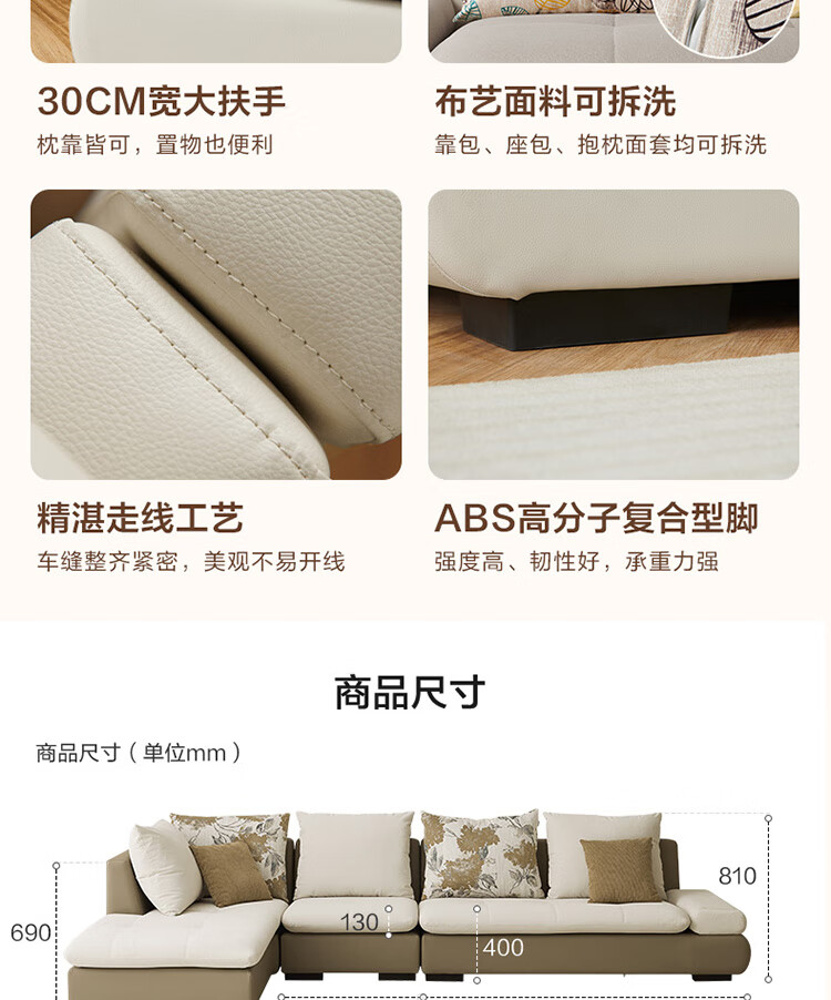 Quanyou Home modern style L-shaped fabric corner sofa living room simple large and small household imperial concubine combination sofa gray coffee color | 2.68m left concubine sofa