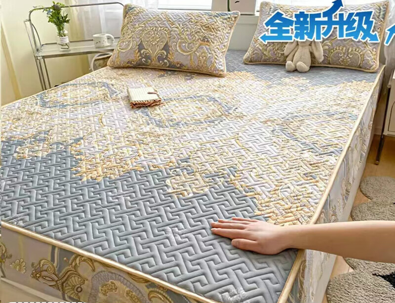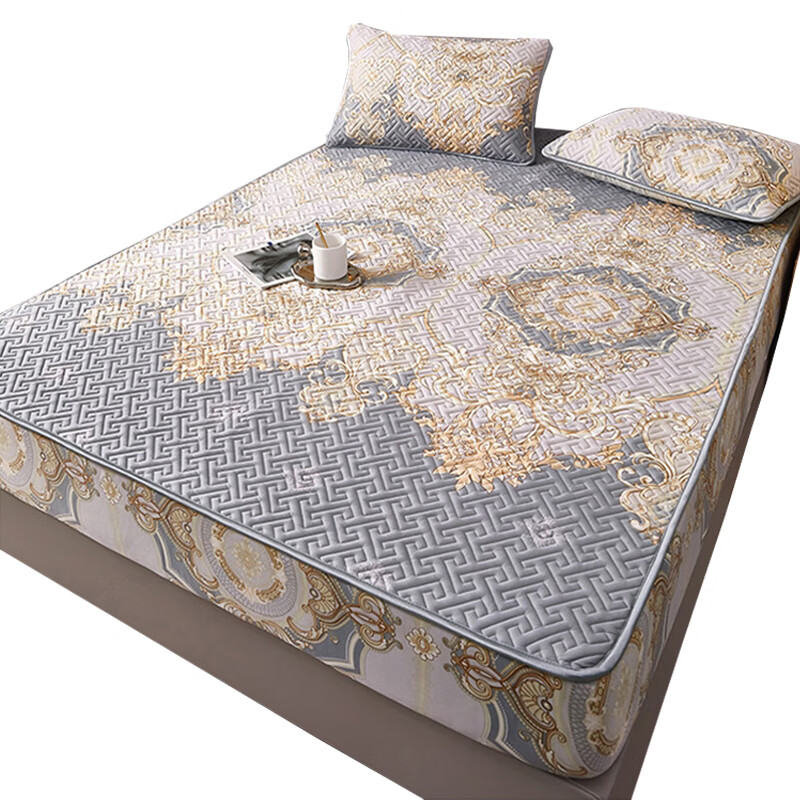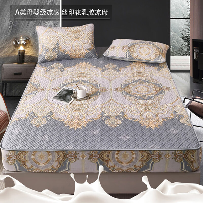 Ice silk latex mat three-piece set, fitted sheet, mattress protector, summer bed cover, air-conditioning mat, European gray, thick latex filling throughout, free 2 200cmx220cm