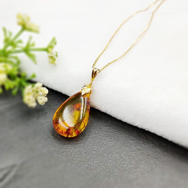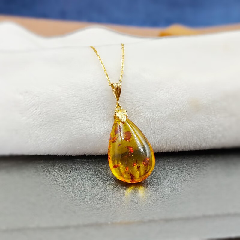 Yixiang natural amber flower drop pendant S925 silver buckle necklace simple and noble temperament women's necklace light luxury style jewelry natural flower amber (with silver plated chain)