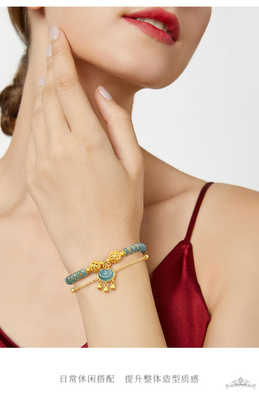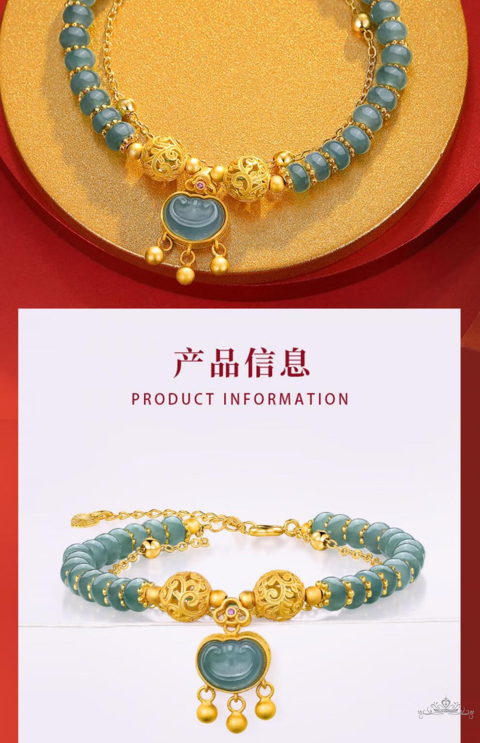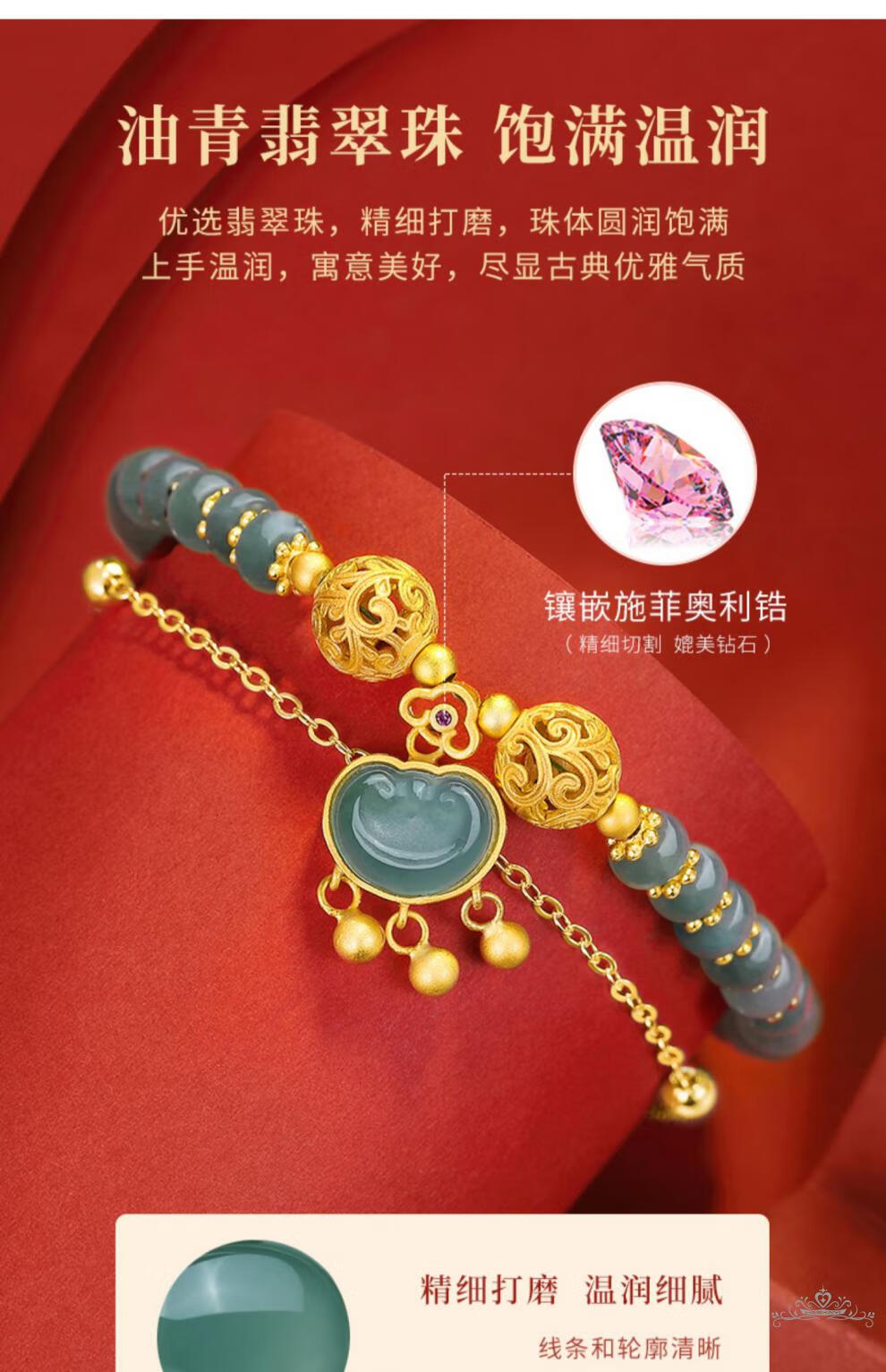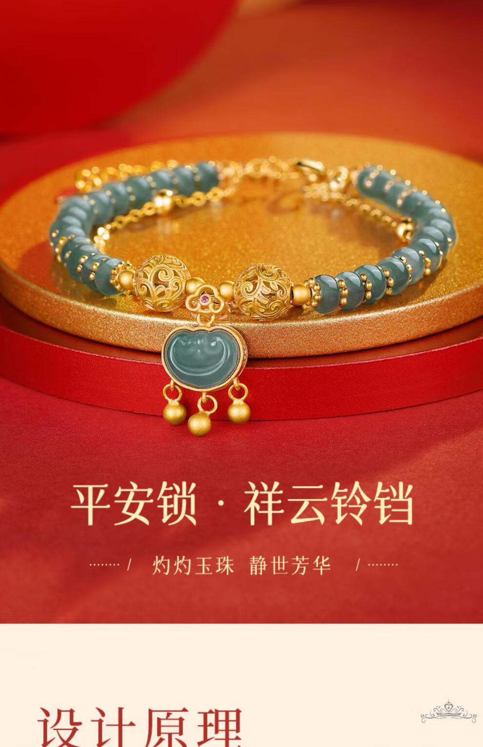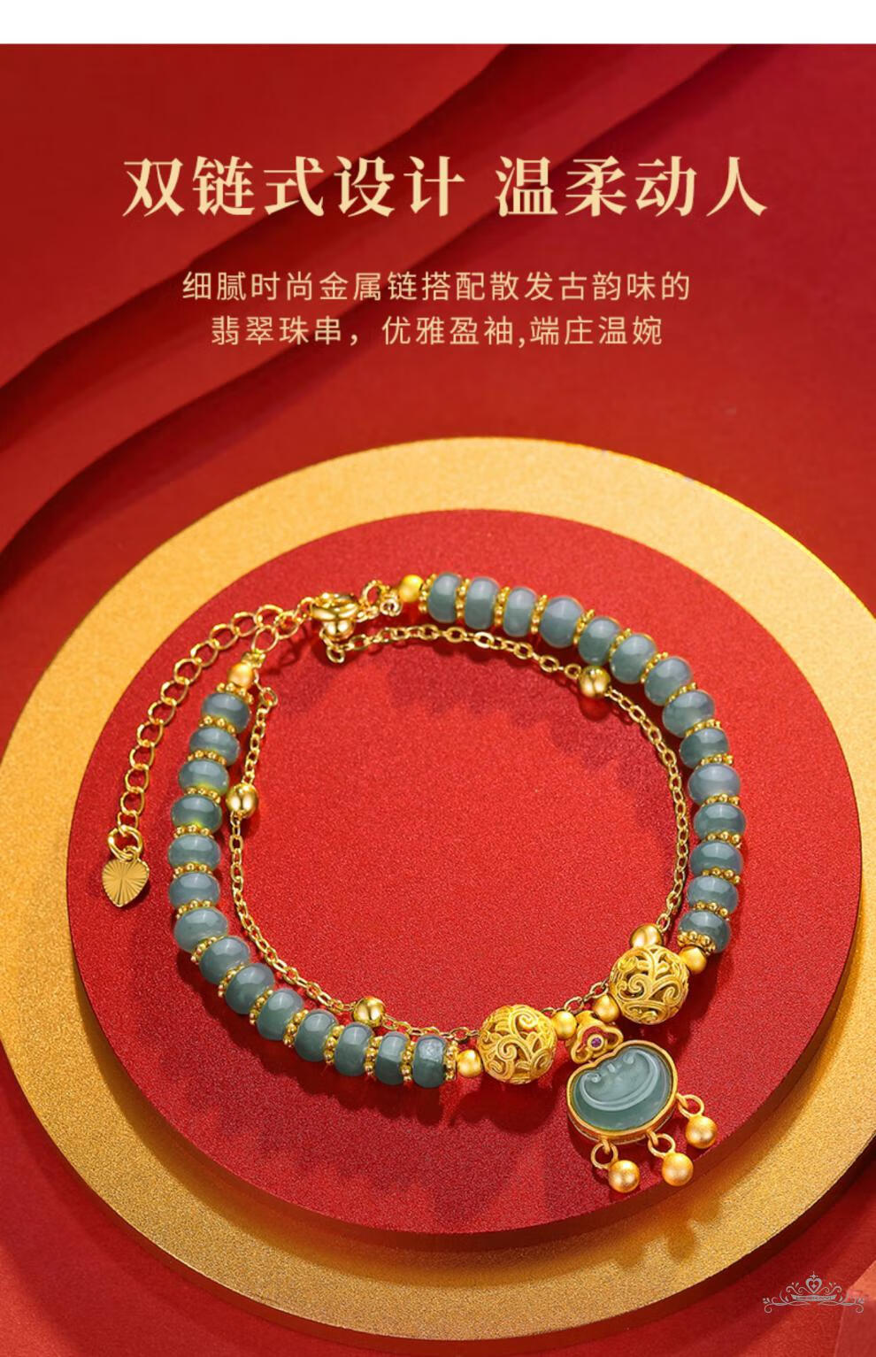 Haikai jadeite bracelet for women, hydrangea safety lock bracelet, transfer beads, Chinese Valentine's Day, birthday gift for wife, jadeite blessing lock hydrangea double chain bracelet