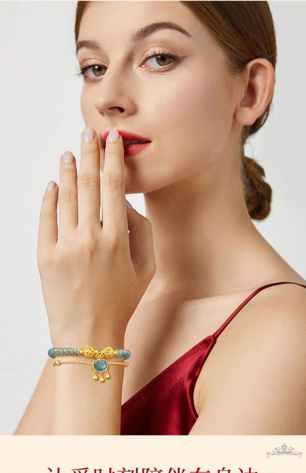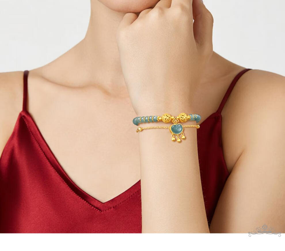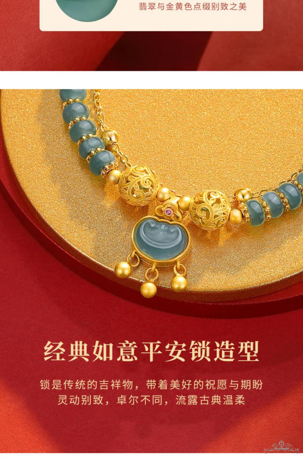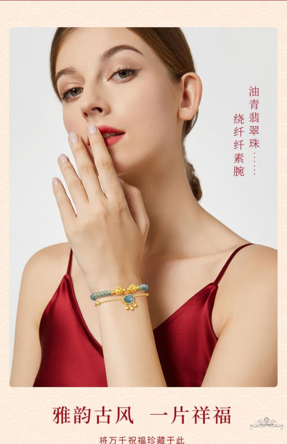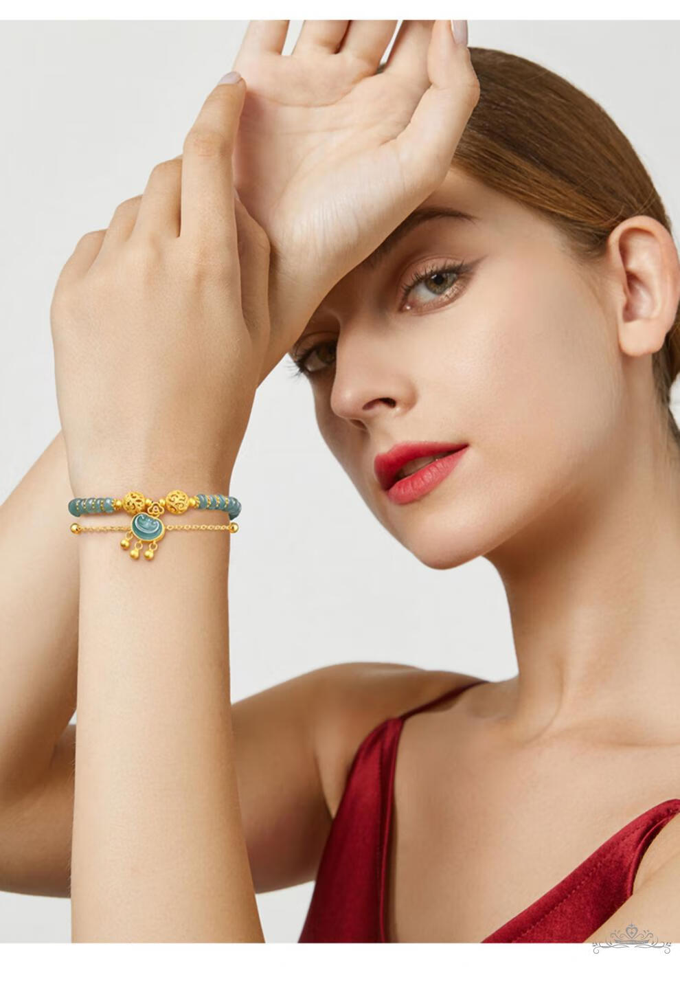 Haikai jadeite bracelet for women, hydrangea safety lock bracelet, transfer beads, Chinese Valentine's Day, birthday gift for wife, jadeite blessing lock hydrangea double chain bracelet