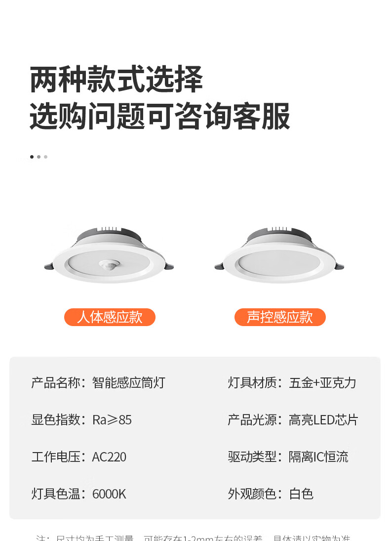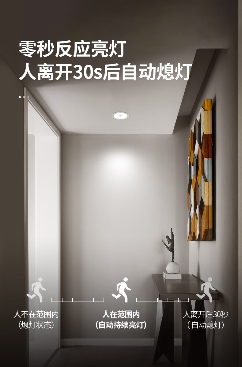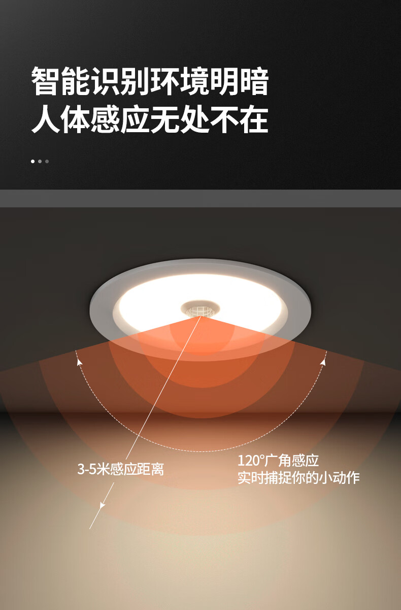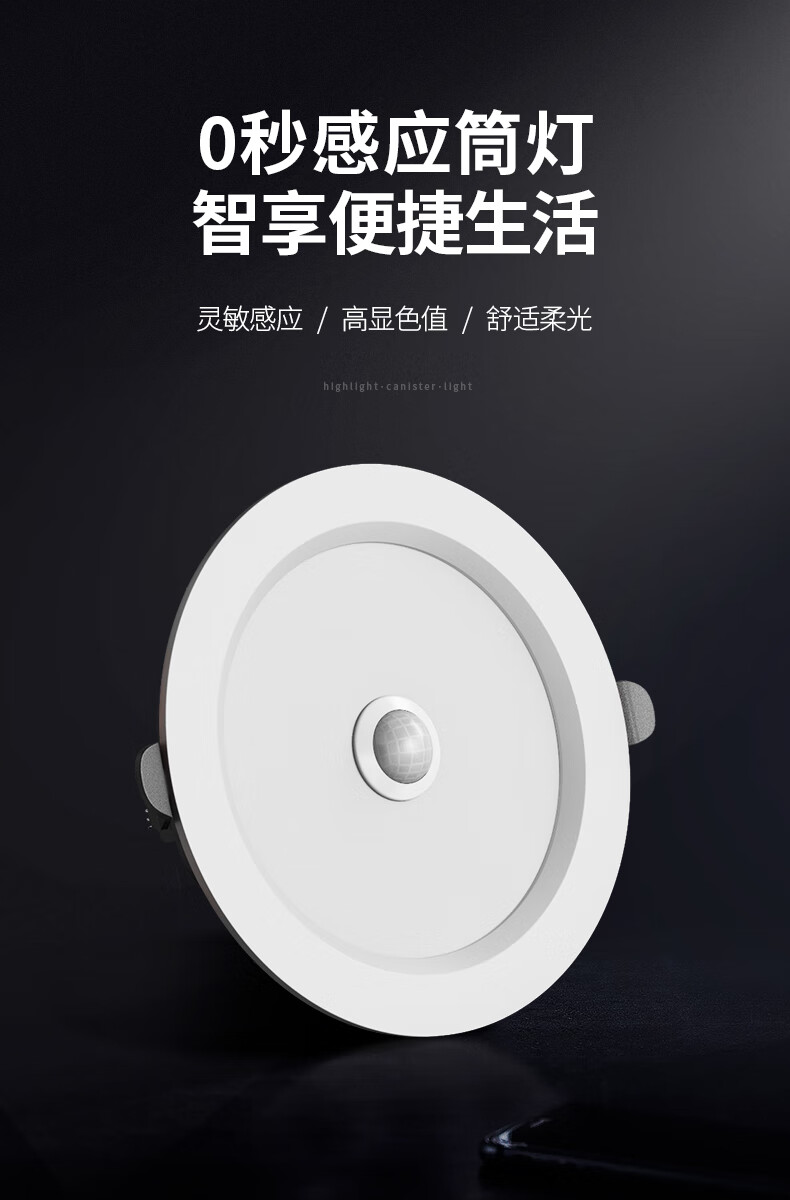 Yilin (yilin) led intelligent voice-activated human body induction downlight embedded ceiling light home ceiling entrance hallway corridor spotlight 7W white light human body induction + with light control hole 7-9