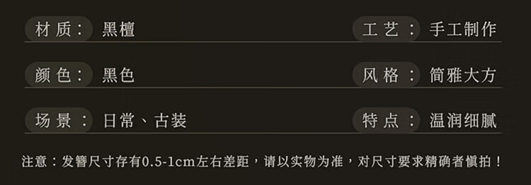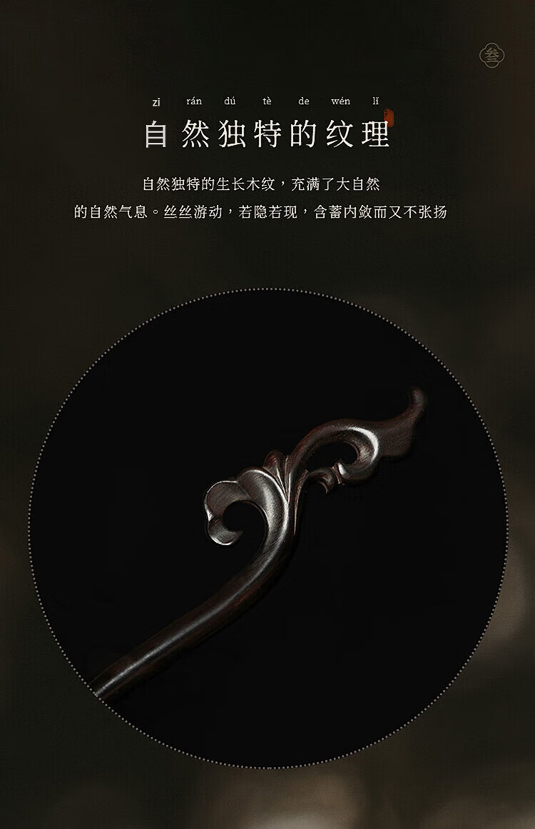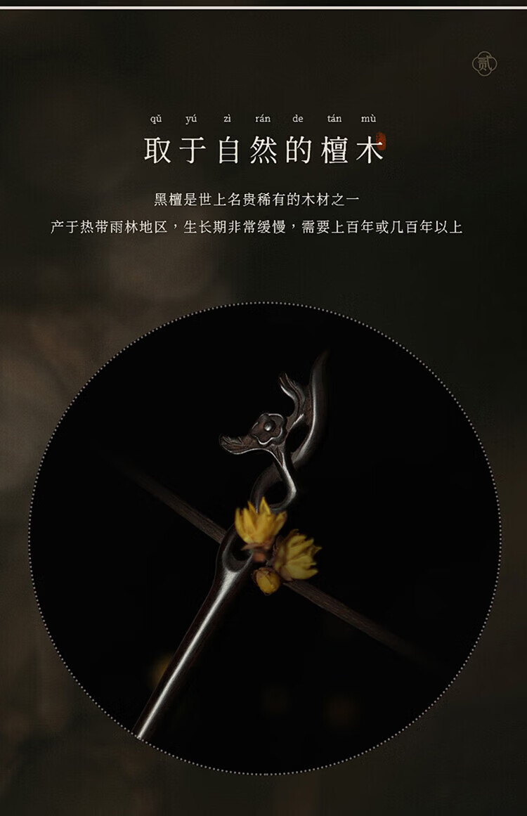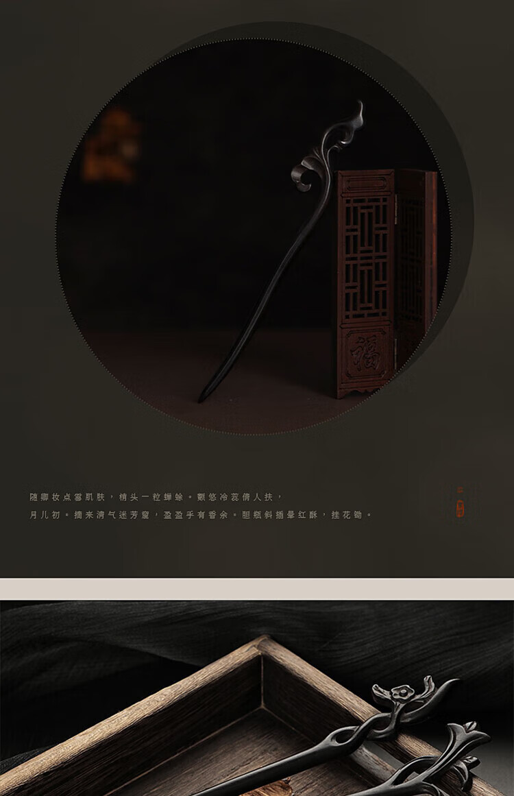 Two Worlds Ebony Hairpin Women's Ancient Style High-Quality Temperament Hairpin Modern Simple New Chinese Style Hairpin Wooden Hairpin Gift Hairpin