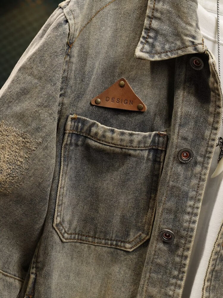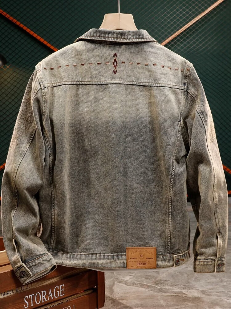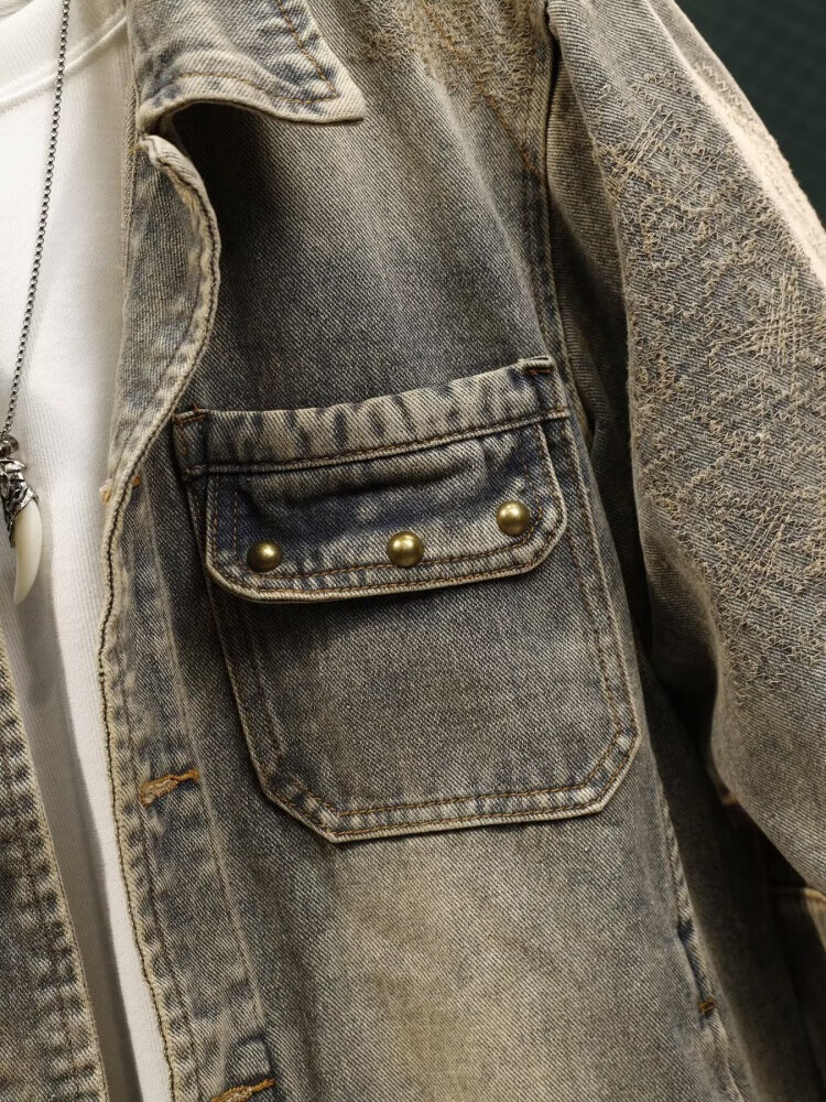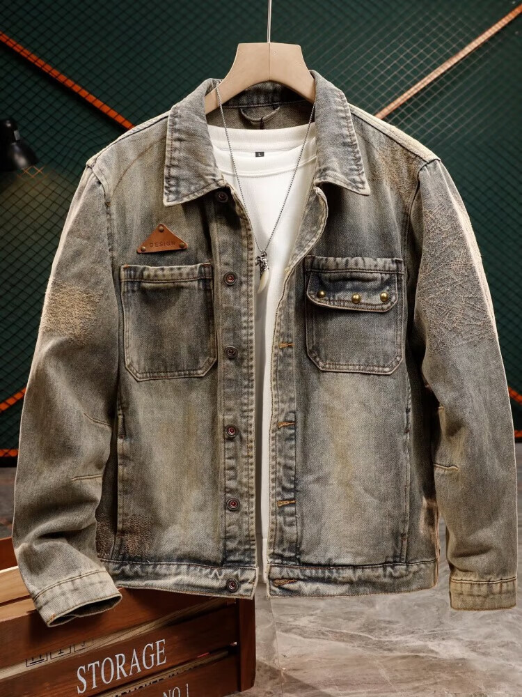 JIAYE Workwear Denim Jacket Men's Spring and Autumn New Casual Handsome American Loose Jacket Men's Trendy Brand Black Gown Black 2XL 175-180cm 150-170Jin Jin equals 0.5 kg