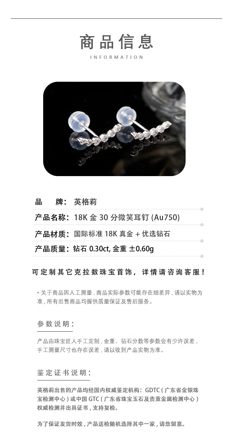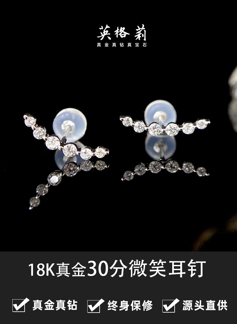 Ingrid 18K Gold Natural Diamond Earrings for Women 30 Points Real Diamond Smile Earrings Smiley Face Super Sparkling Earrings as a Gift for Wife Elegant White Gold