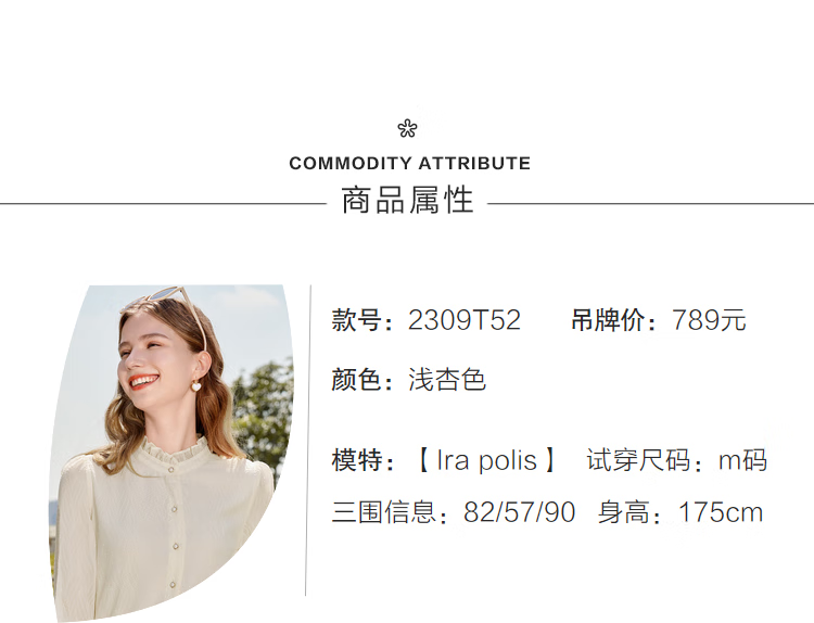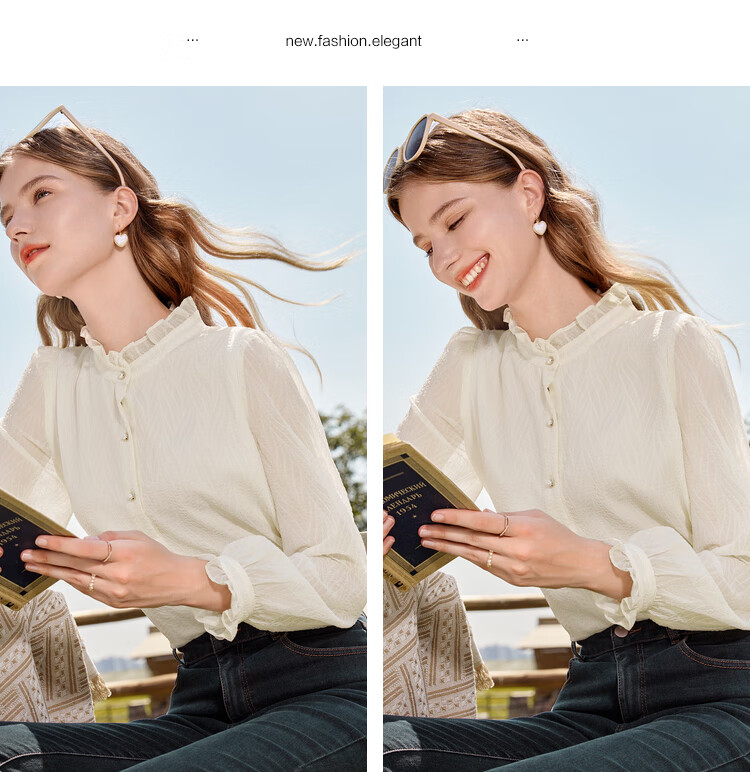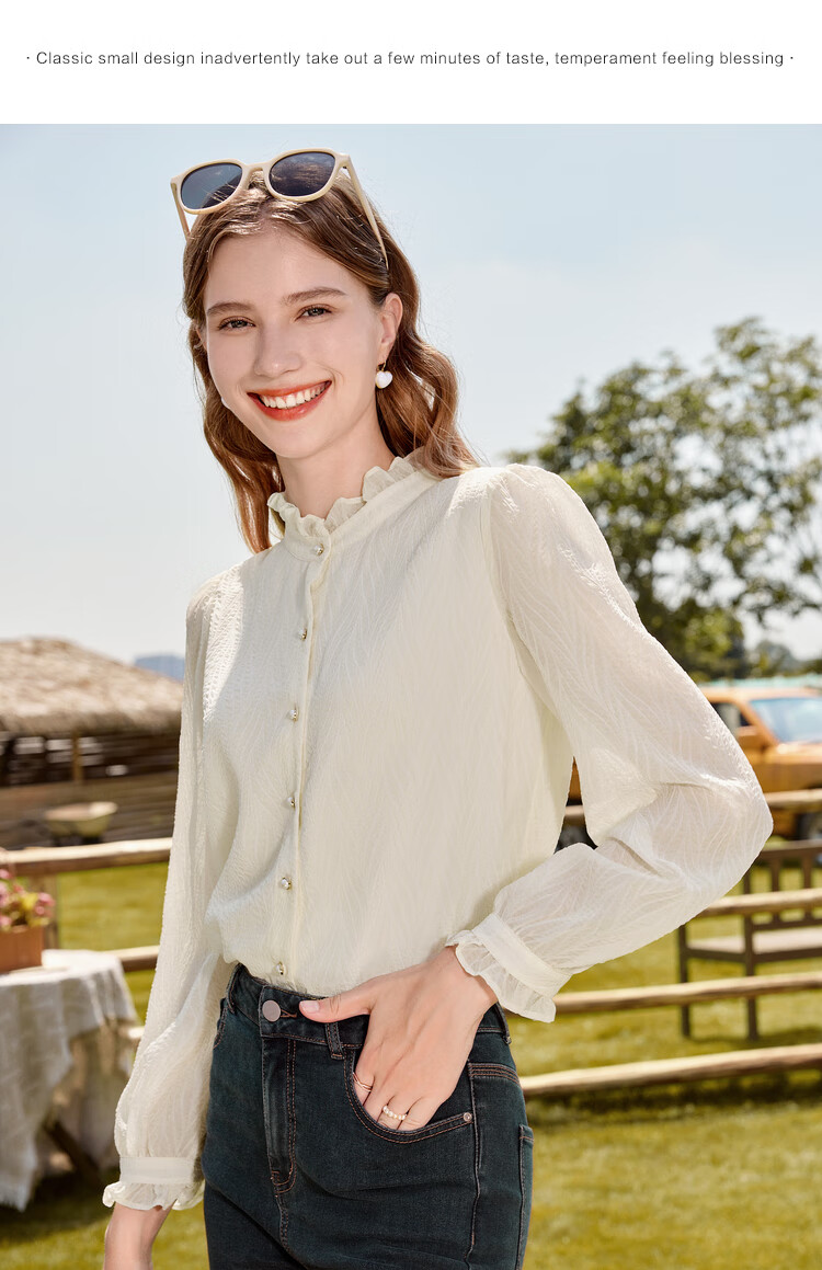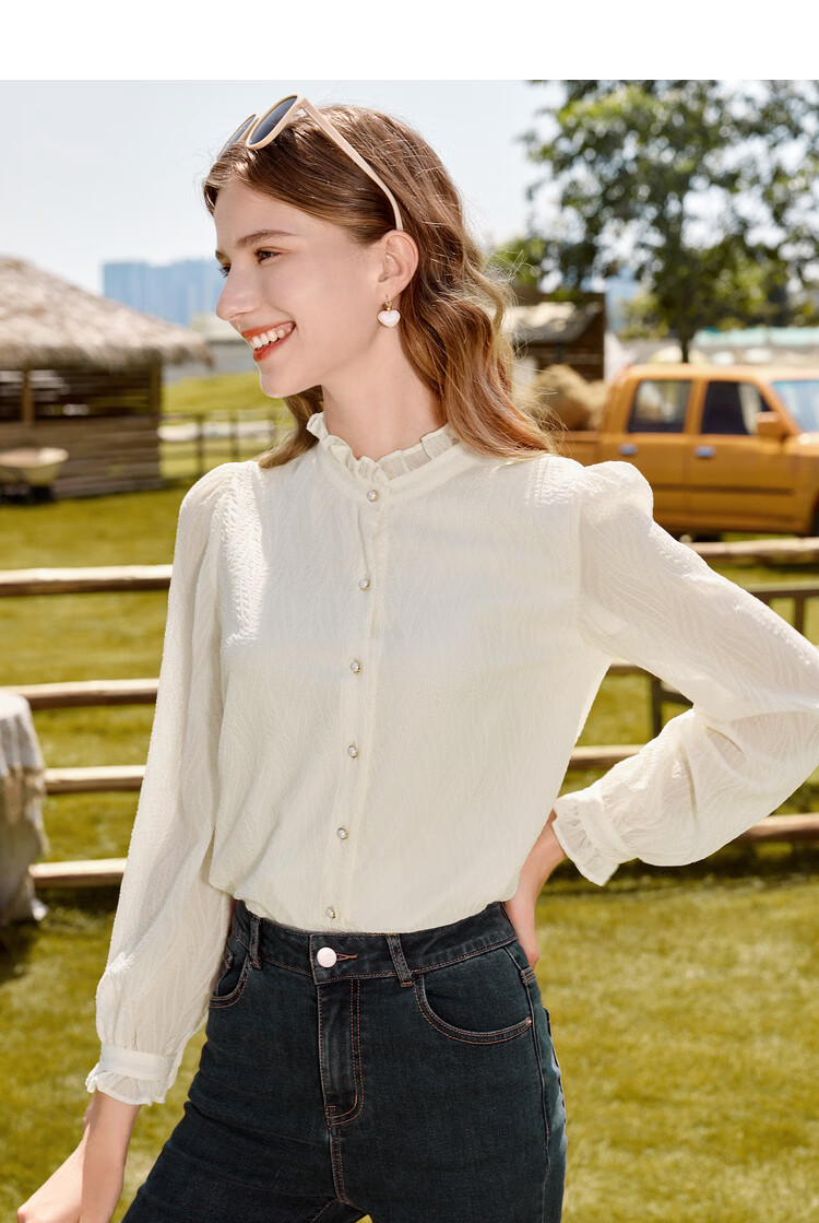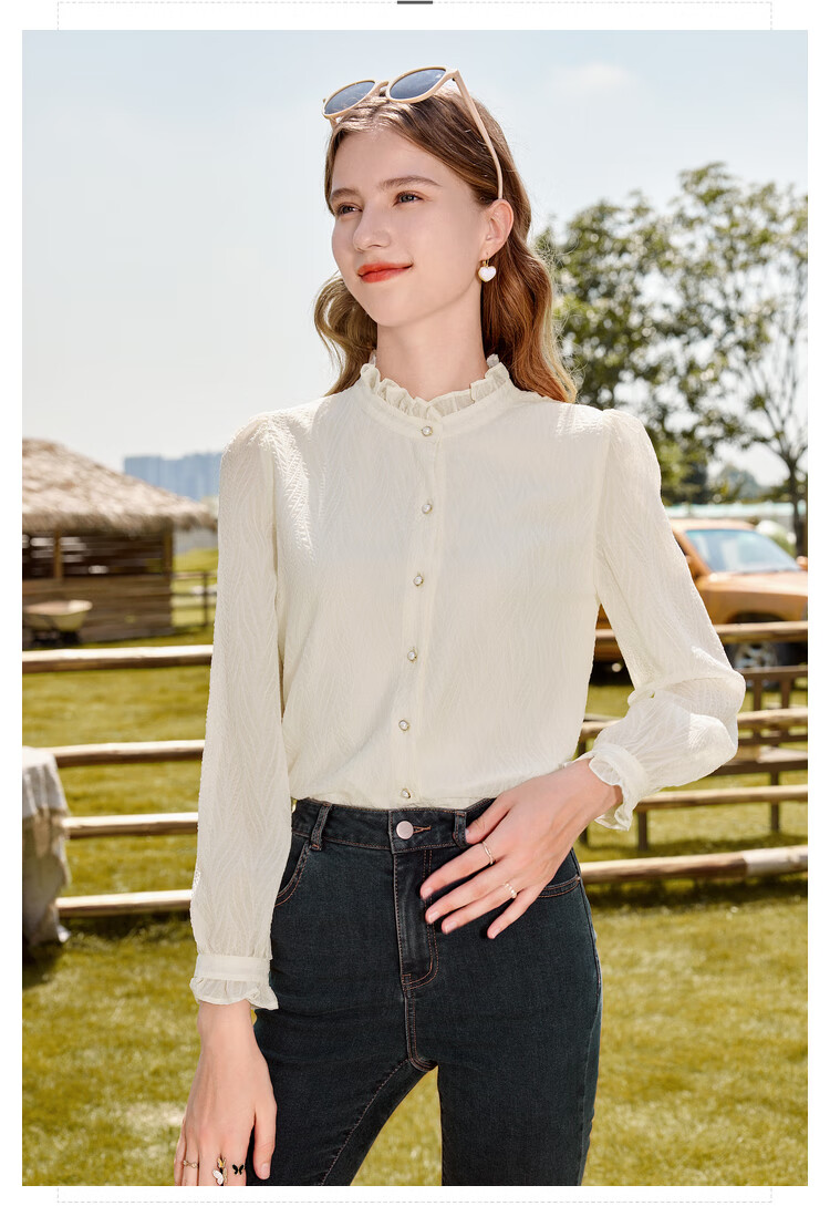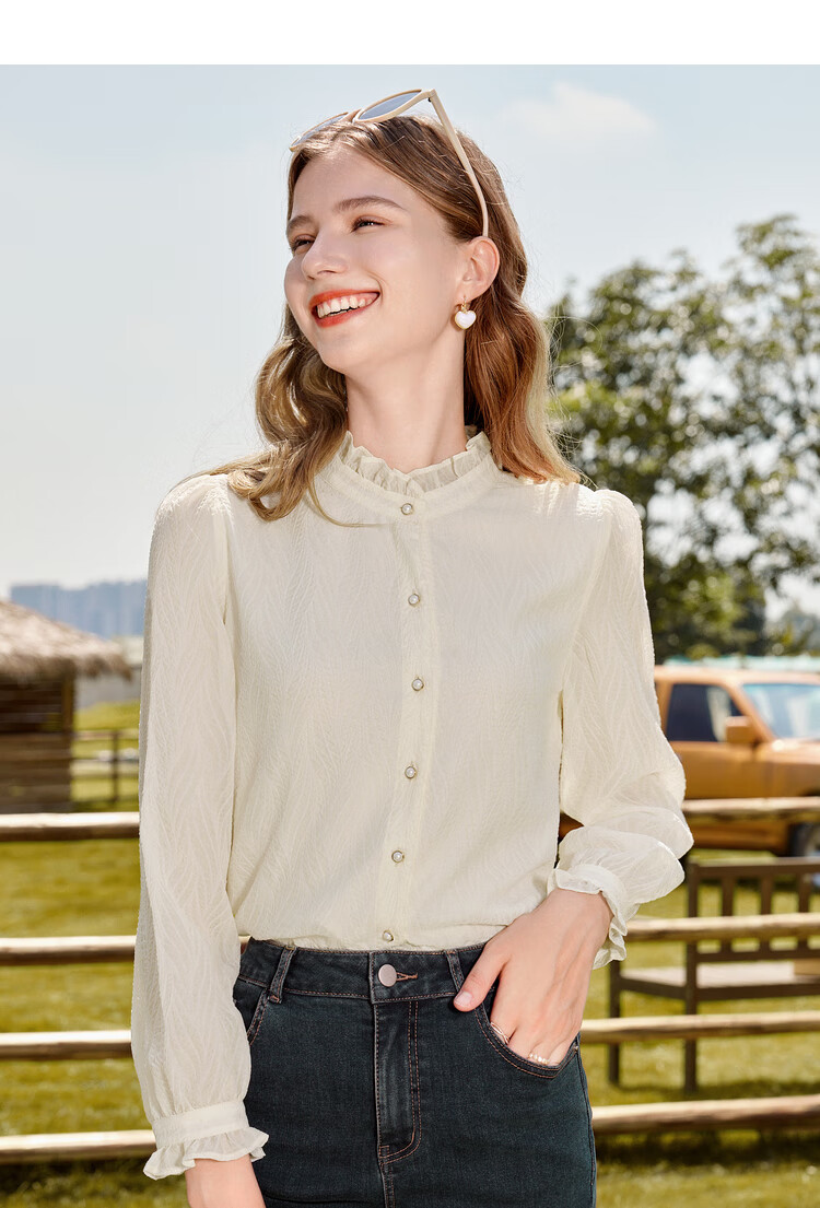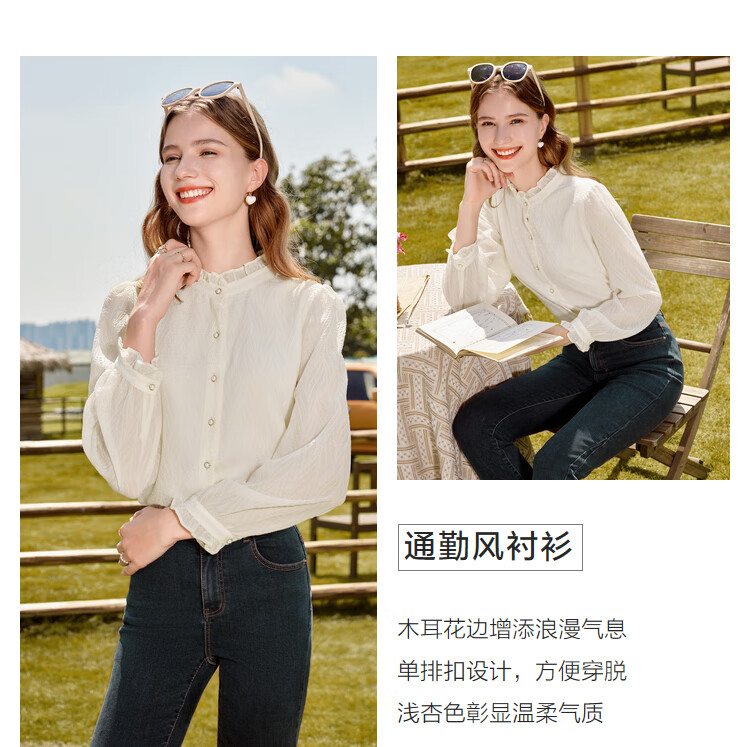 Betu women's autumn new shirt with wrinkled texture and temperament stand collar versatile shirt for women 2309T52 light apricot M