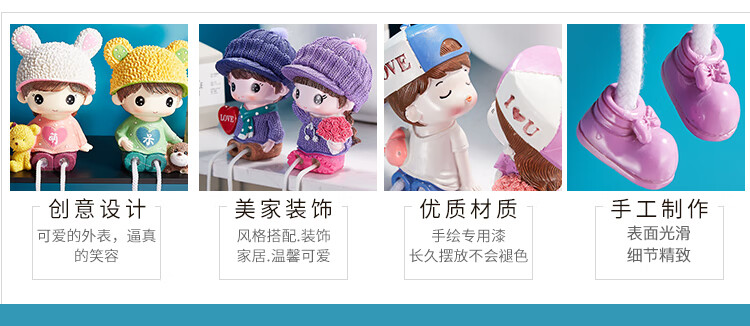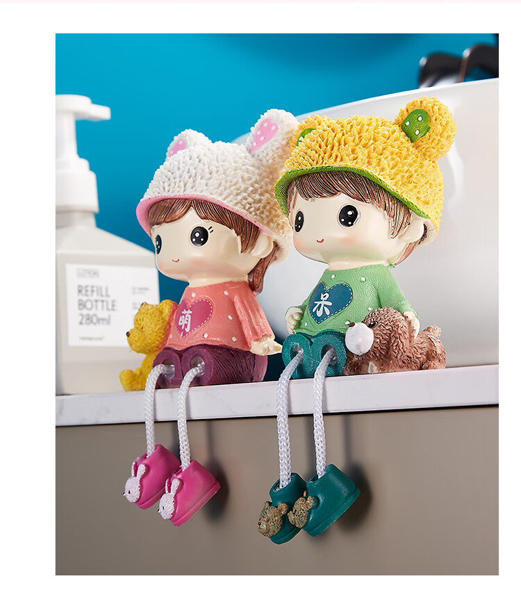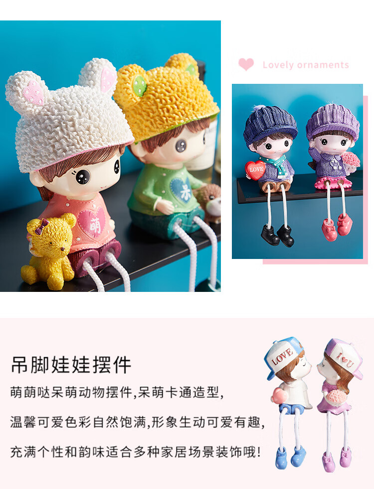 Shuqule home creative decorations, living room small ornaments, handicrafts, cute hanging-legged dolls, bathroom room, bedroom decorations, hanging-legged dolls, cute men and women