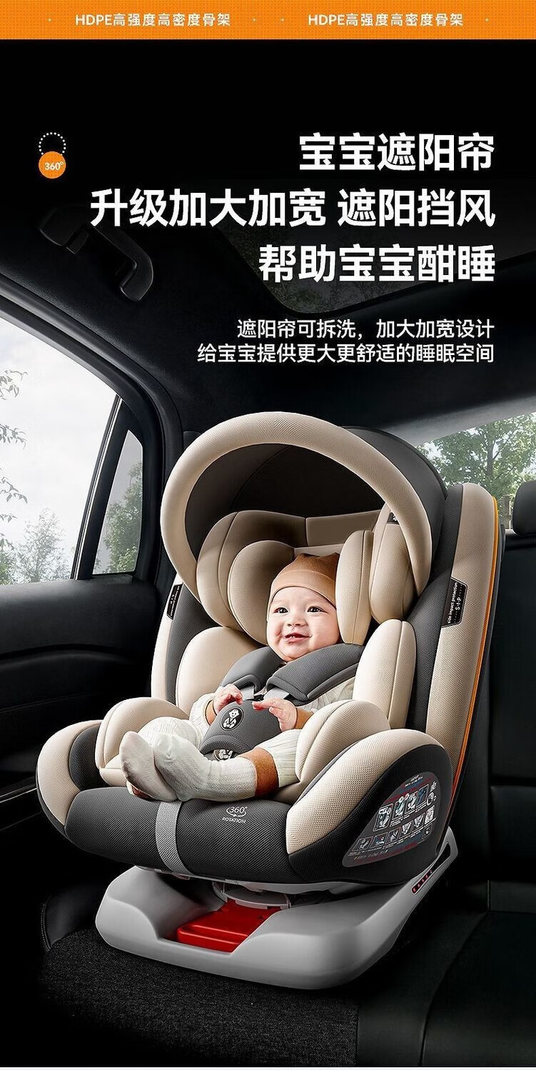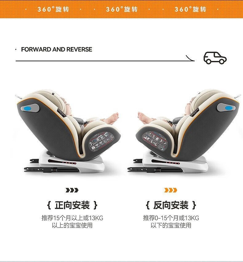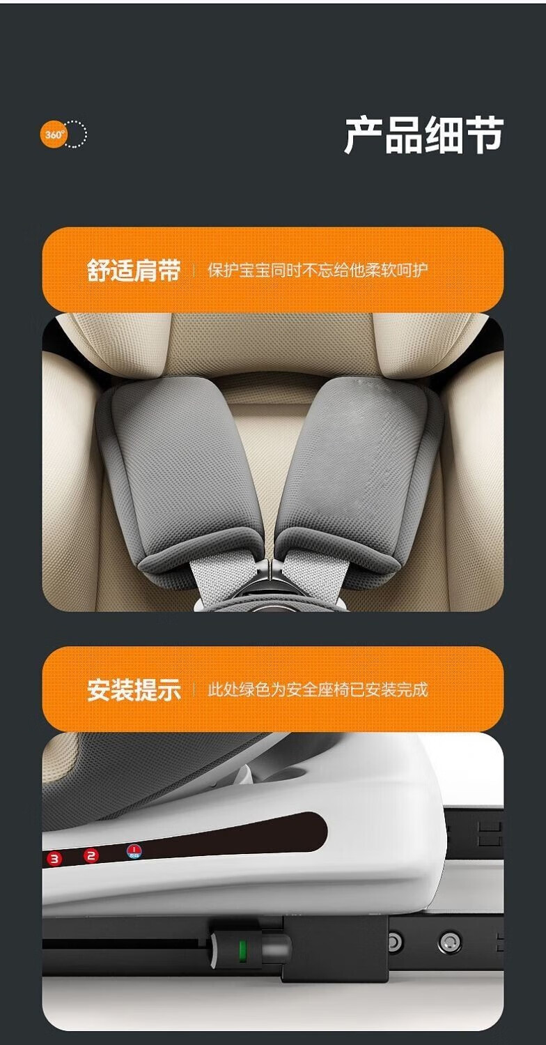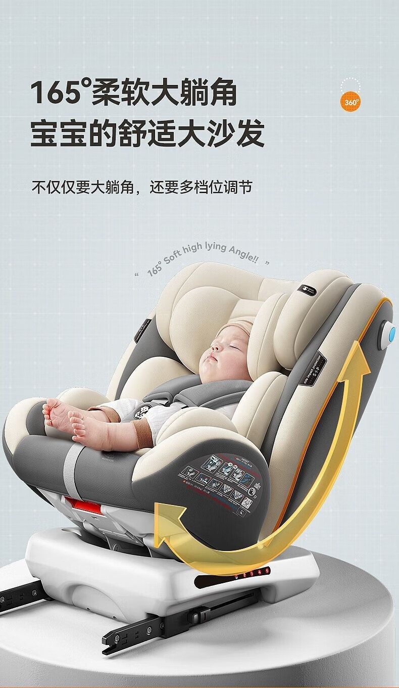 Kairuishi child safety seat, car electric car back seat, universal infant and toddler, 0 to 12 years old, newborns can sit and lie down, elite model - gray/360+hard interface+headrest adjustment