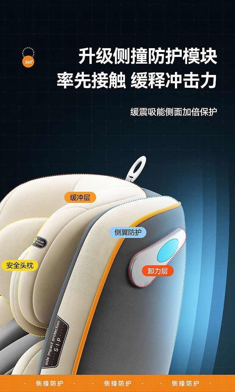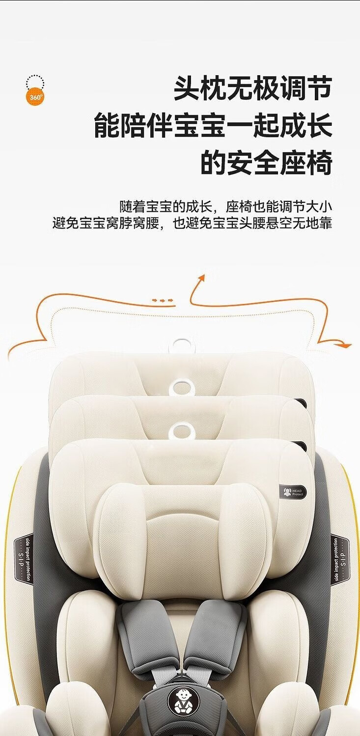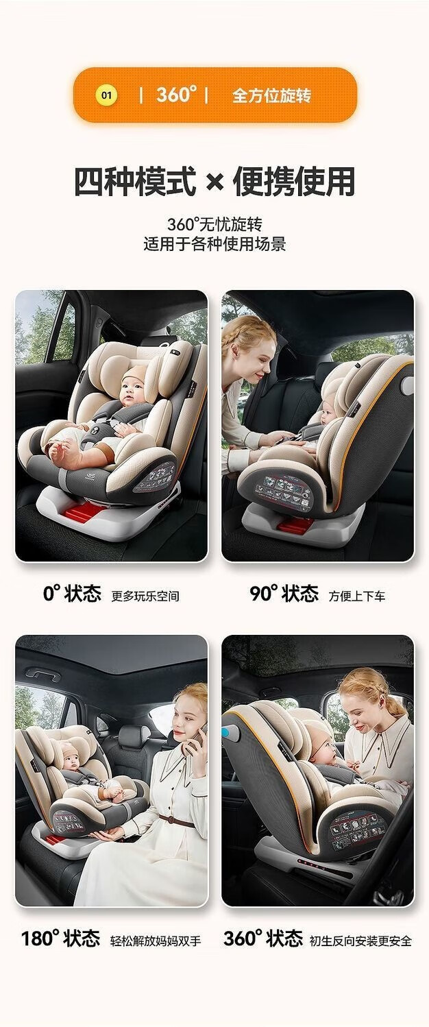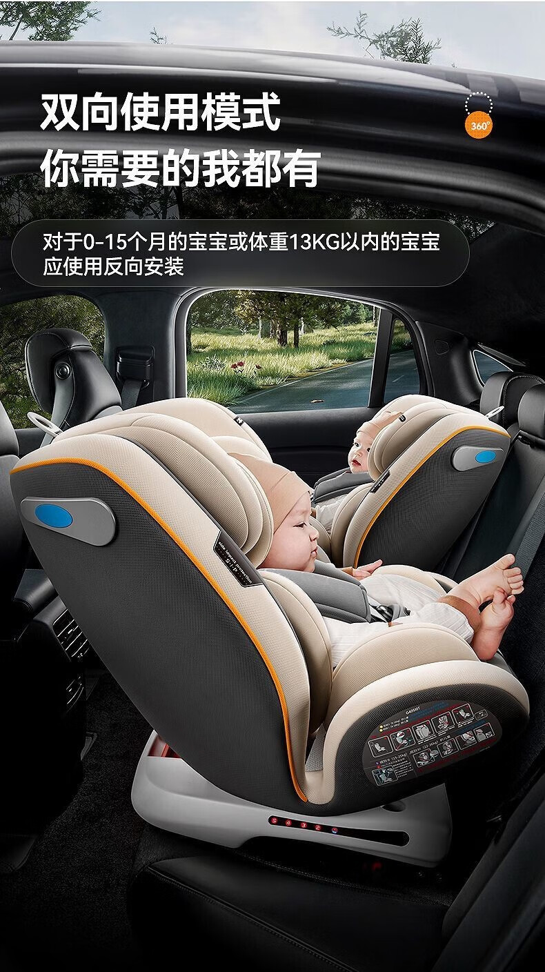 Kairuishi child safety seat, car electric car back seat, universal infant and toddler, 0 to 12 years old, newborns can sit and lie down, elite model - gray/360+hard interface+headrest adjustment