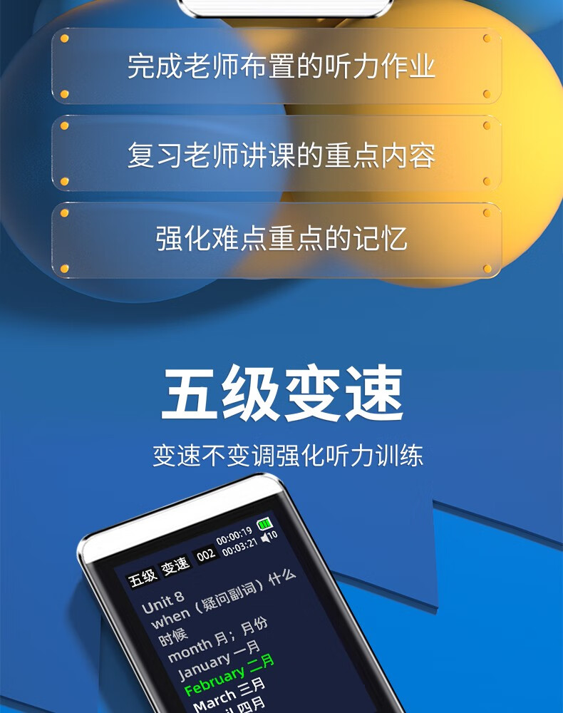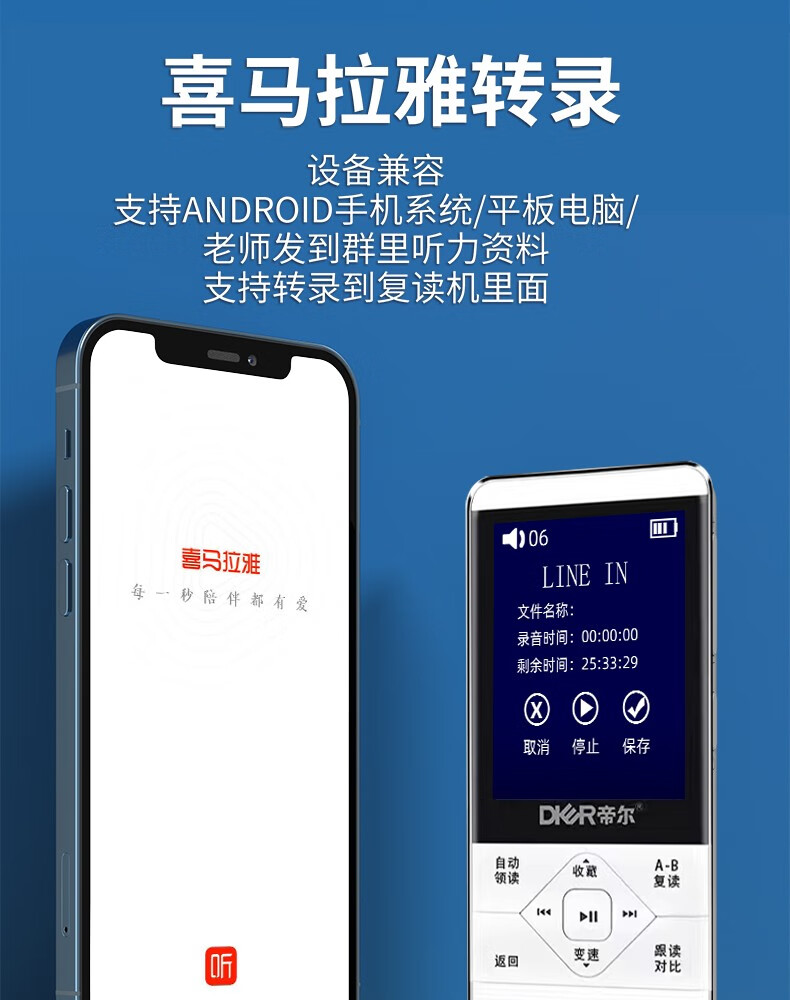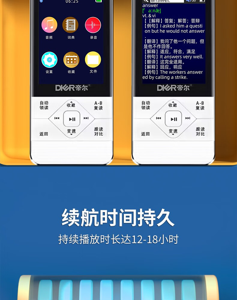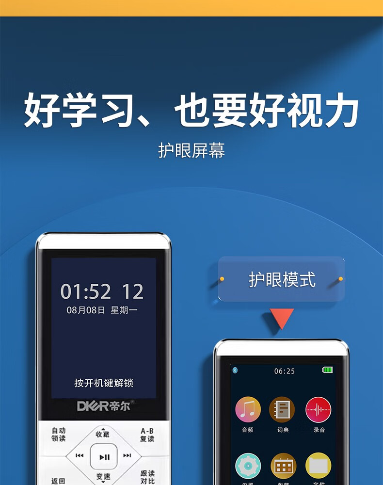 Dier (2025 edition new textbook) D39 new repeater Bluetooth English listening learning synchronization for primary, middle and high school students 60 white D39-128G+ Bluetooth headset