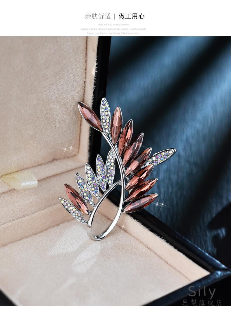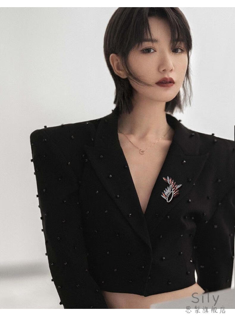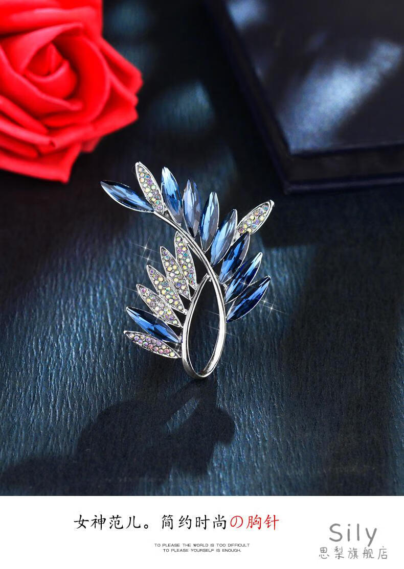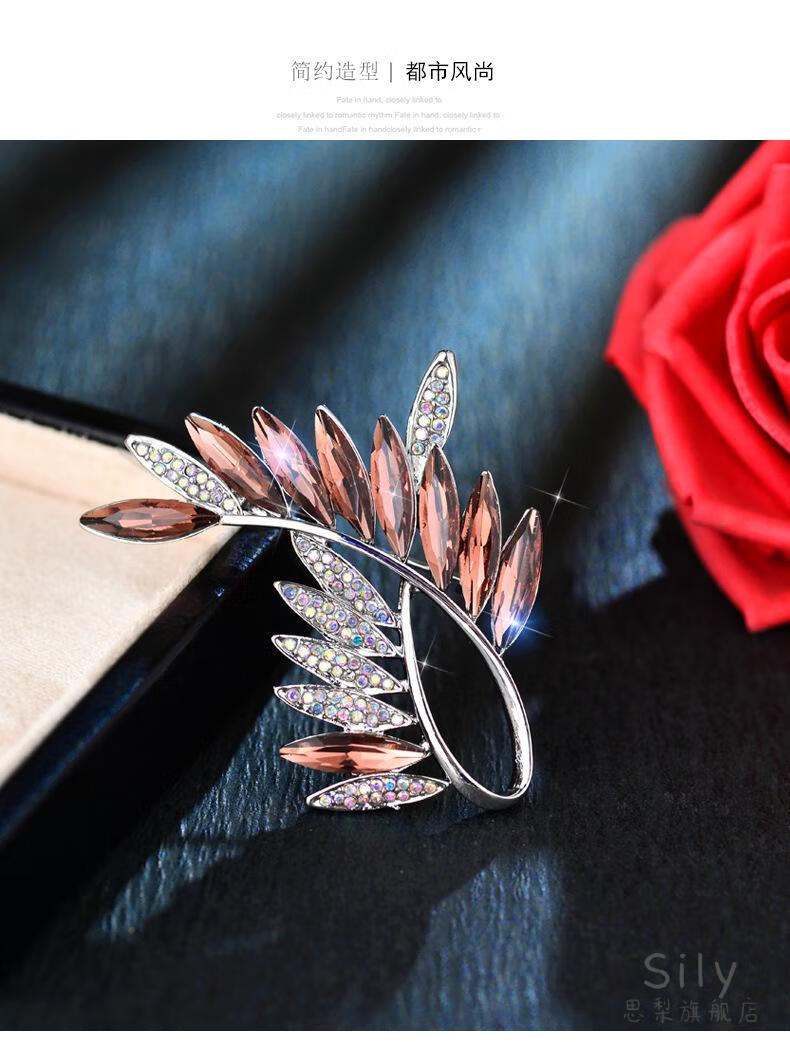 Si Li Korean design crystal brooch, elegant temperament, anti-exposure pin, simple and elegant corsage, suit accessories, purple olive branch