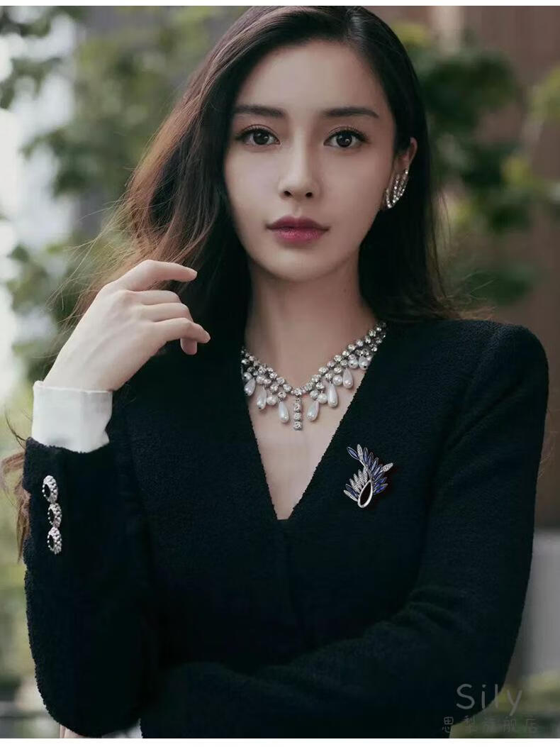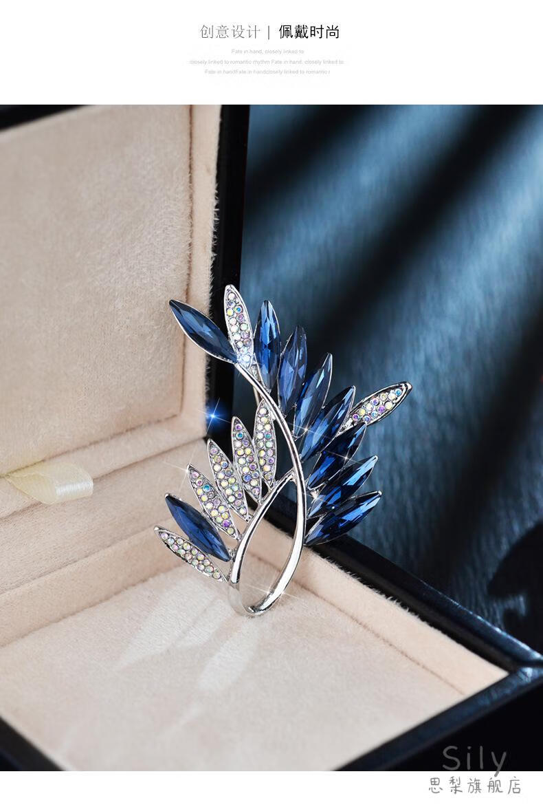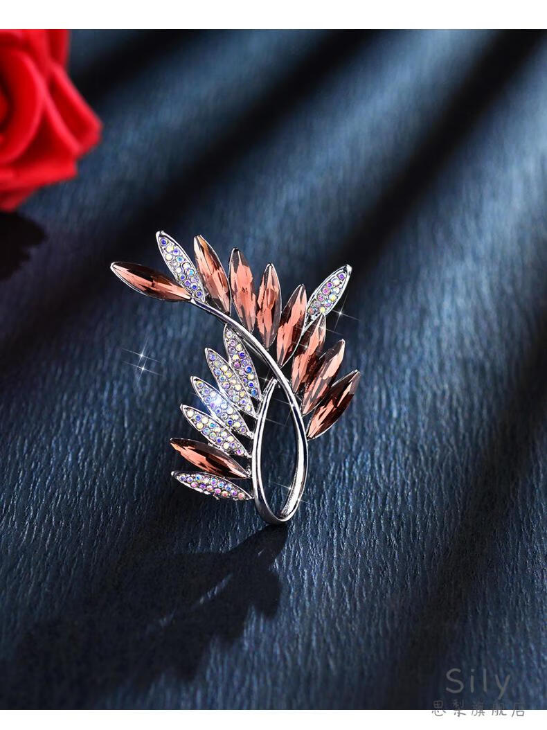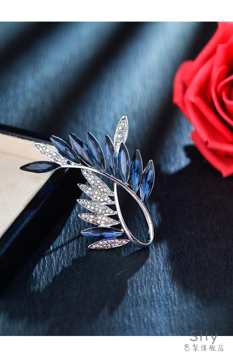 Si Li Korean design crystal brooch, elegant temperament, anti-exposure pin, simple and elegant corsage, suit accessories, purple olive branch