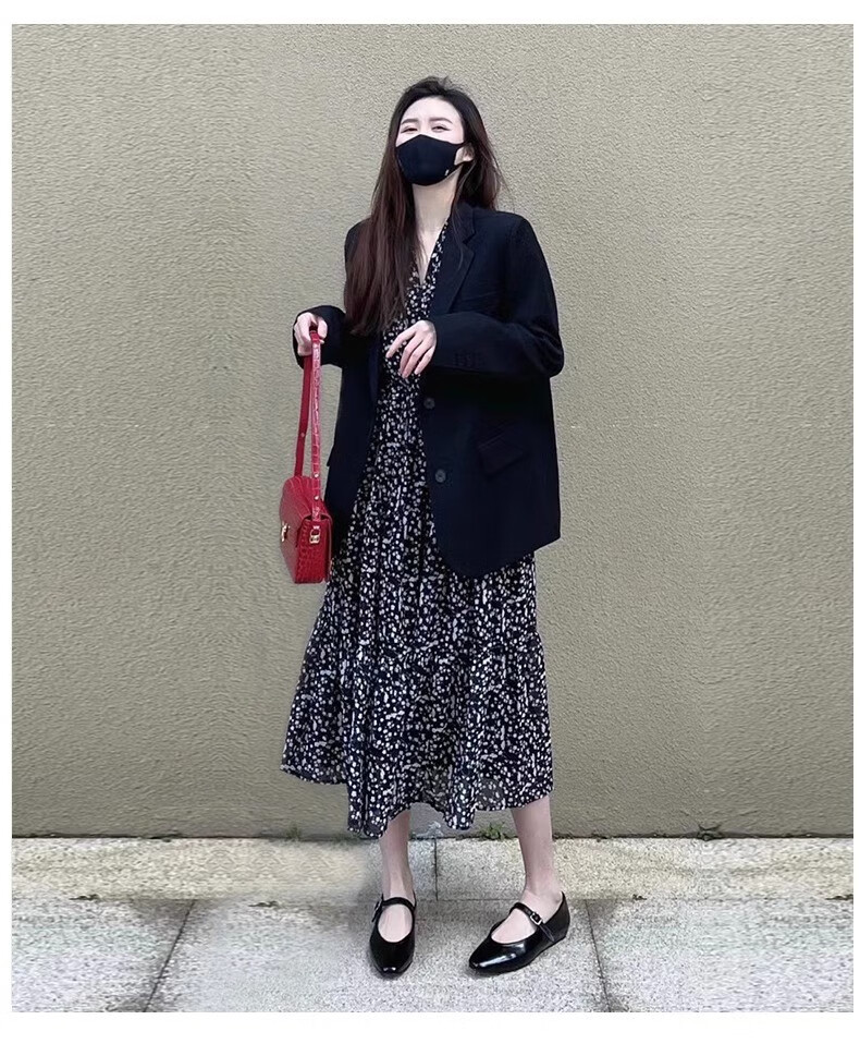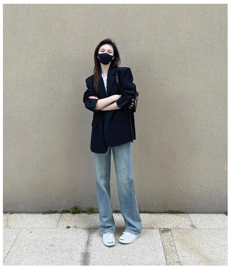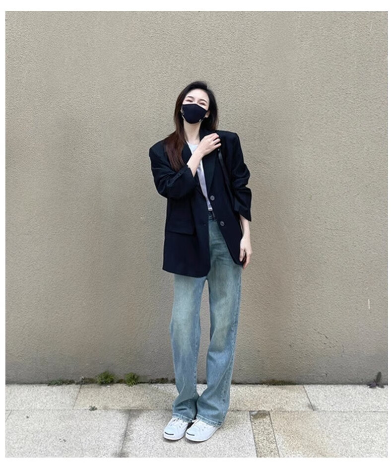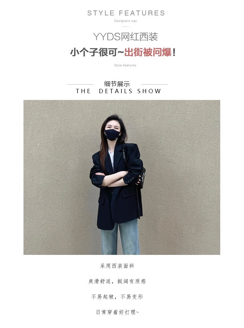 AEMAPE black small suit jacket for women oversize2025 spring and autumn new style high-end loose silhouette casual small man black XL -120-135Jin Jin is equal to 0.5 kg