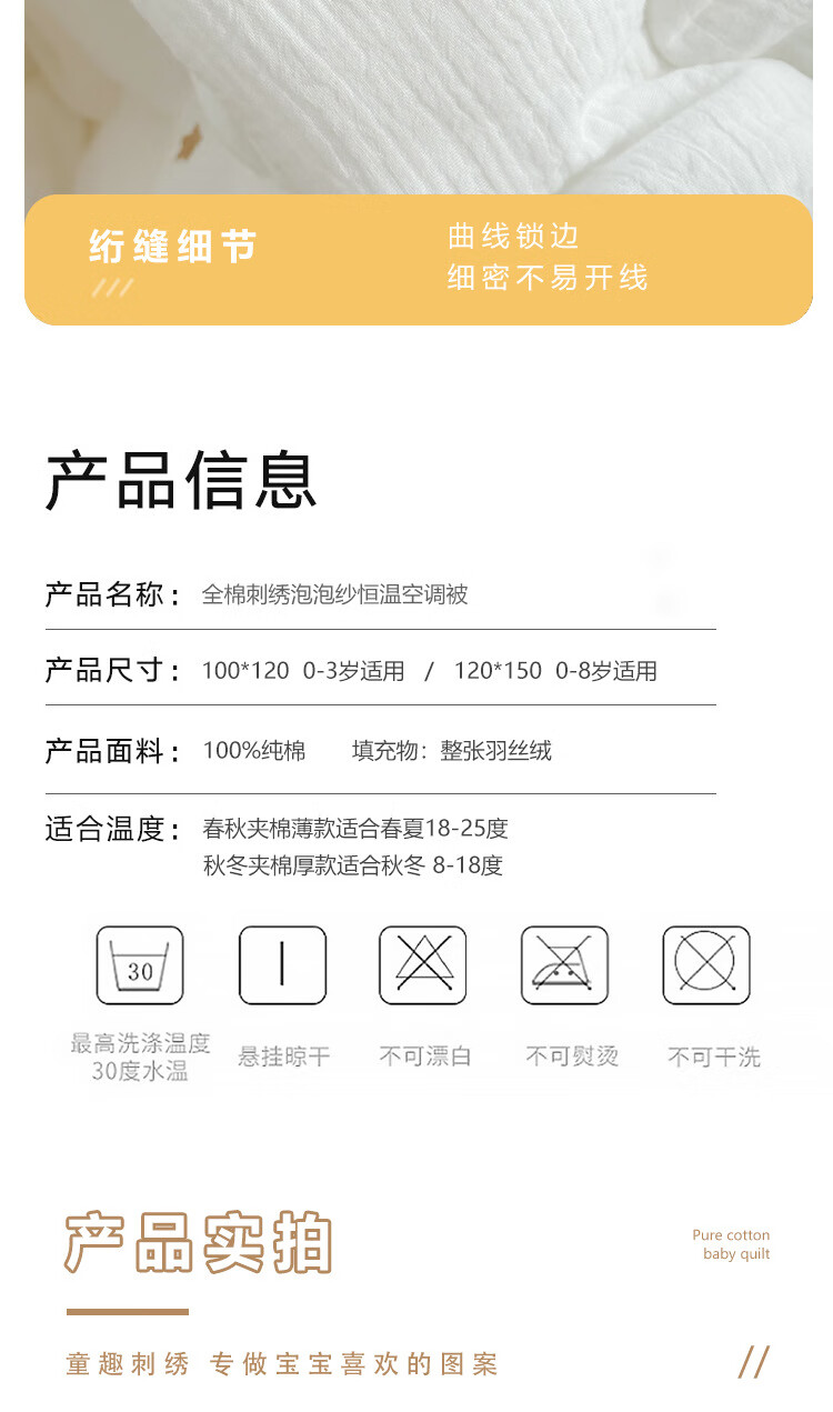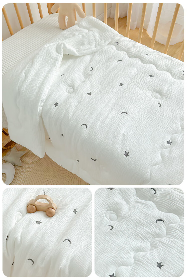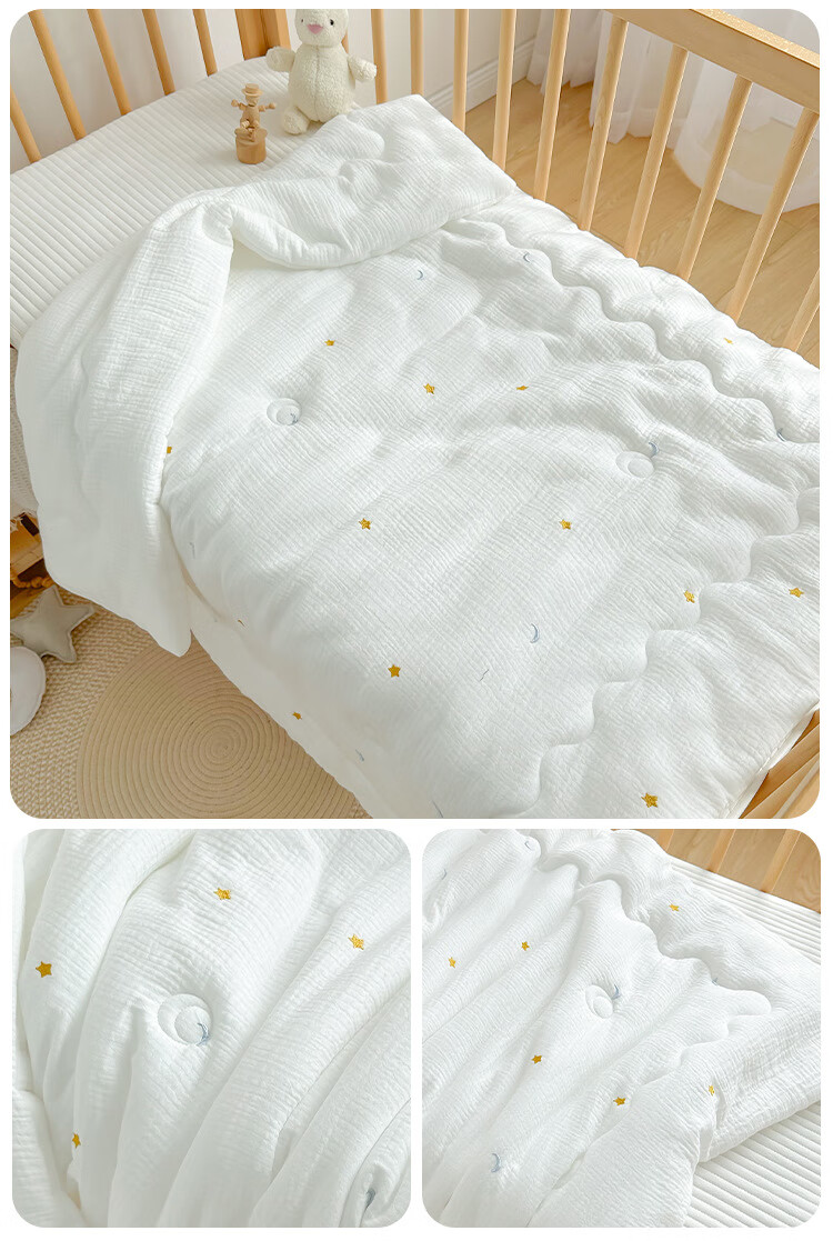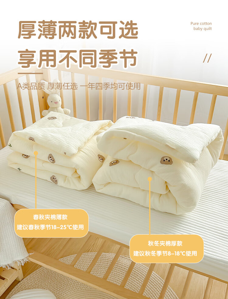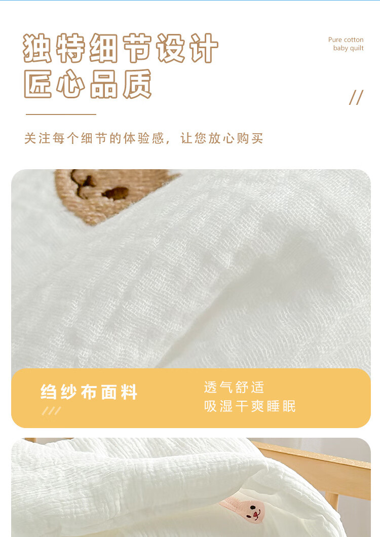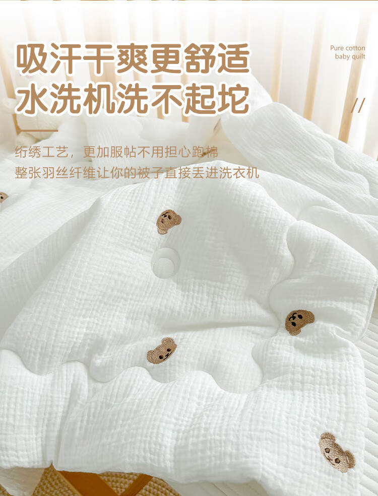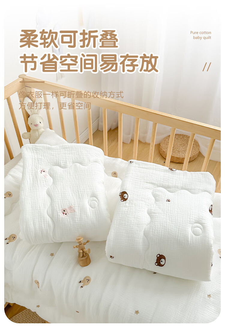 Bei Qichu newborn quilt baby quilt kindergarten quilt all-season pure cotton quilt double-sided white background crepe cotton-embroidered bear 100*120cm autumn and winter style