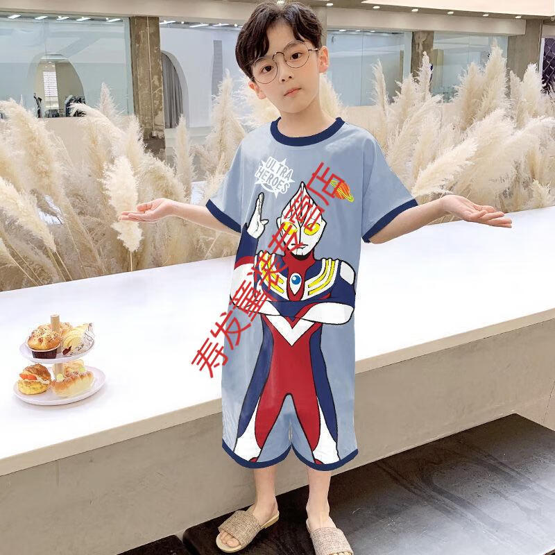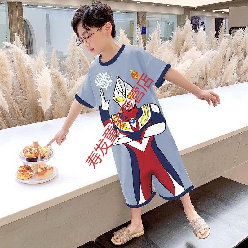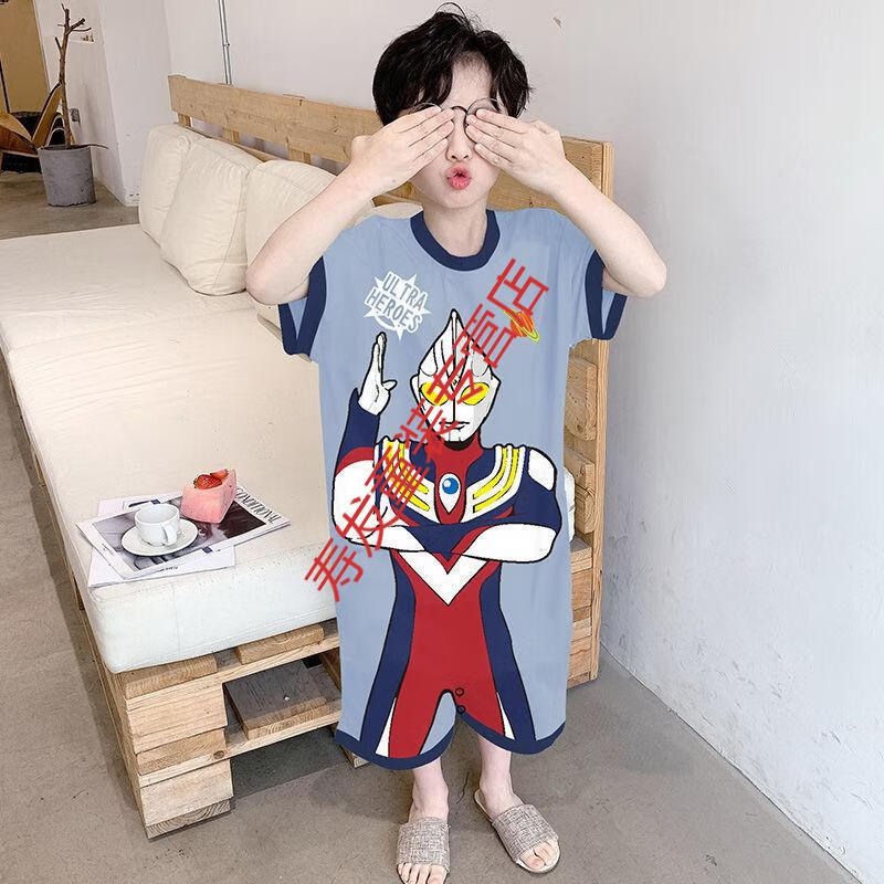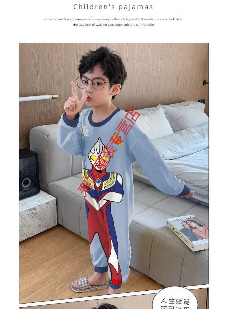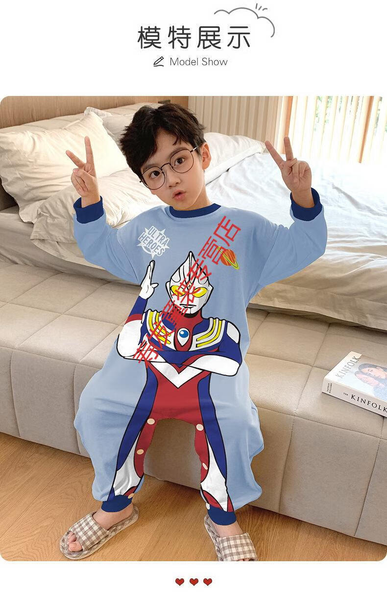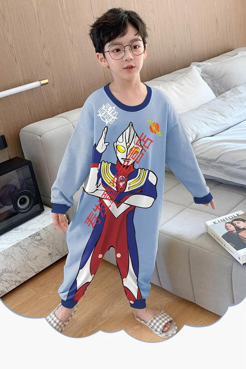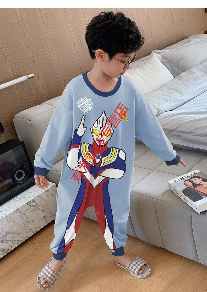 G.DUCKKIDS children's one-piece pajamas boys autumn winter summer long-sleeved boys cartoon Ultraman baby boy one-piece anti-kick sleeping bag large Ultraman long-sleeved size 10 recommended height 105-115cm 4-5 years old