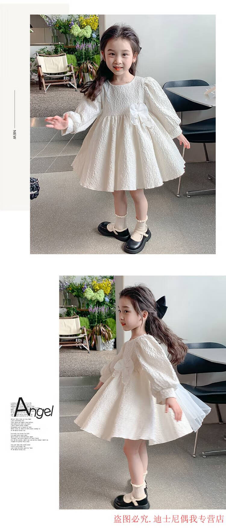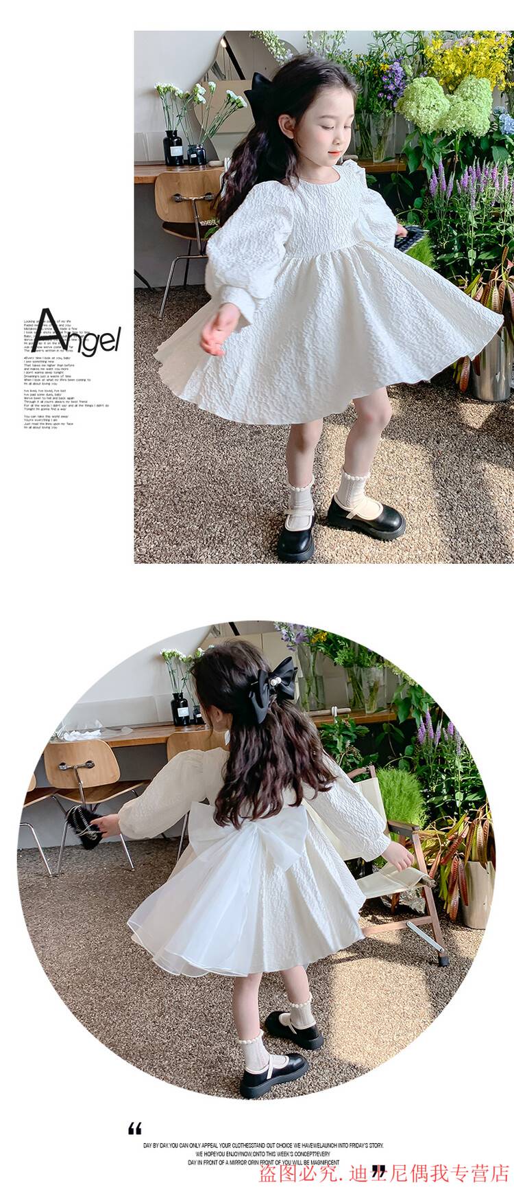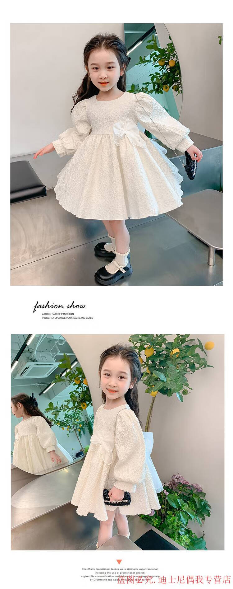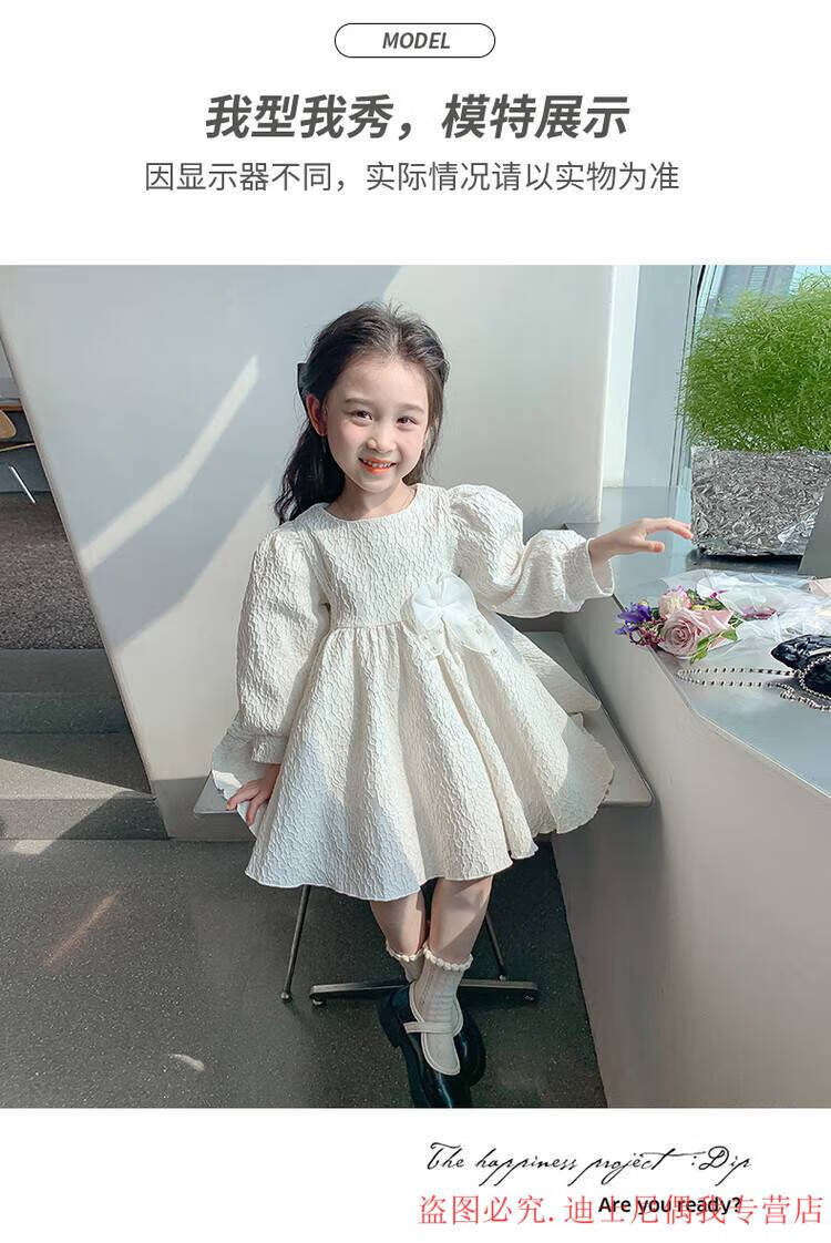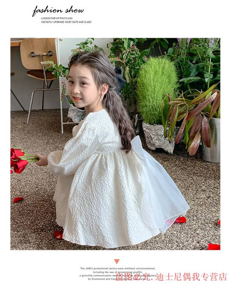 G.duck girls dress, autumn high-end princess dress, birthday flower girl wedding, children's summer dress, one-year-old dress, baby dress, white (spring and autumn) 100 (height 90-100cm, age 3-4 years old)