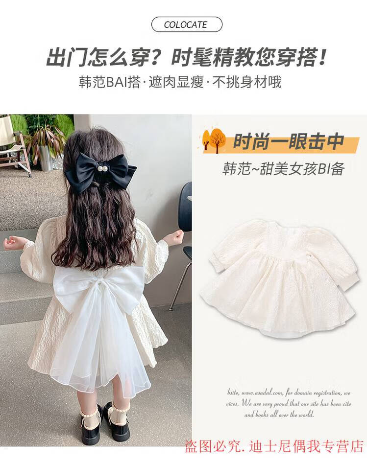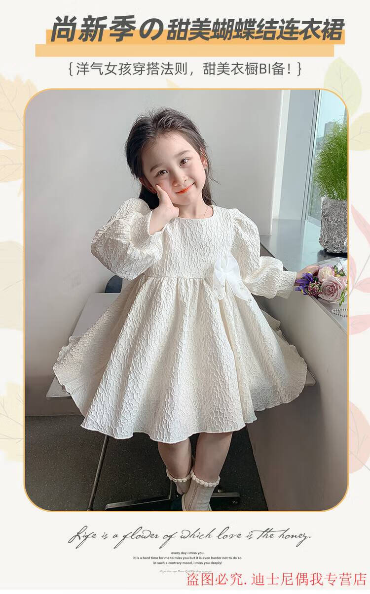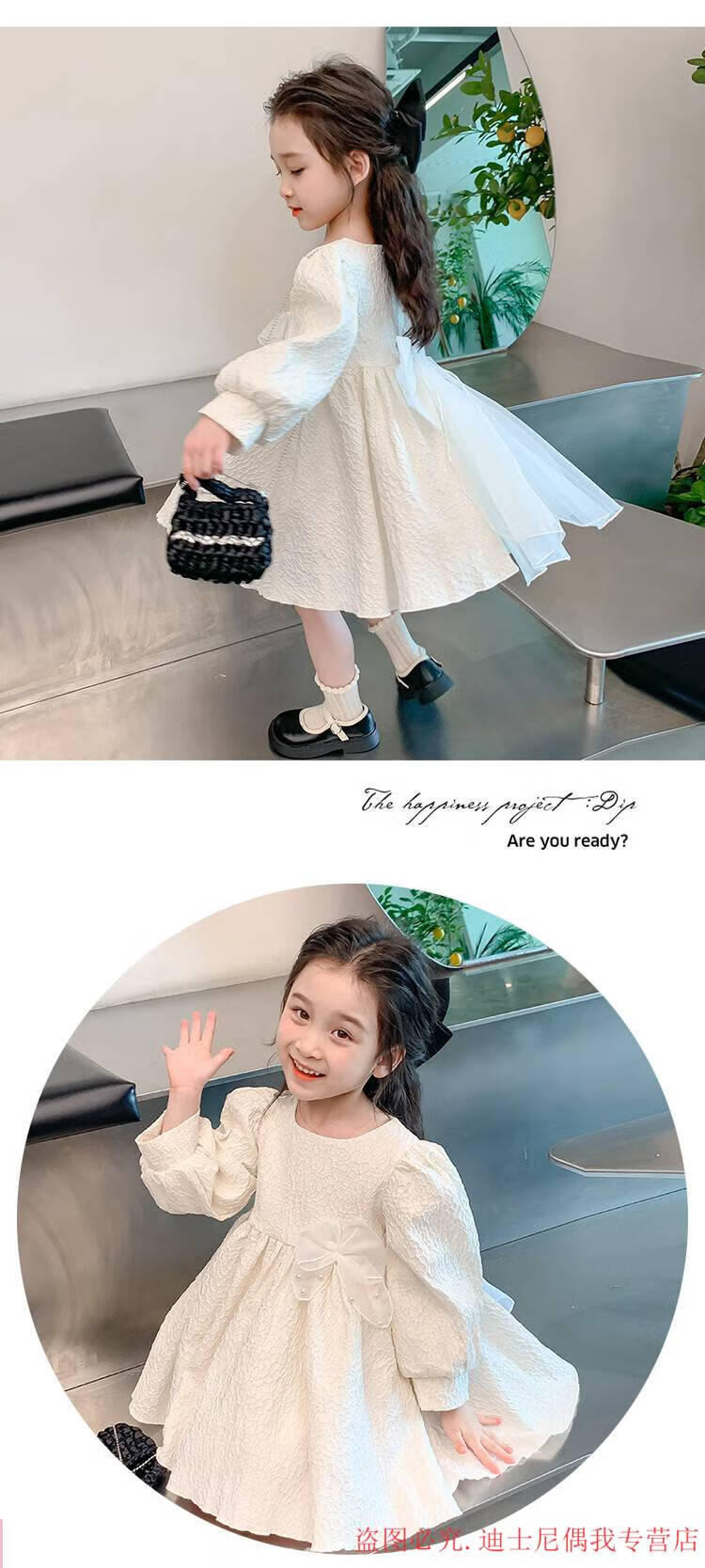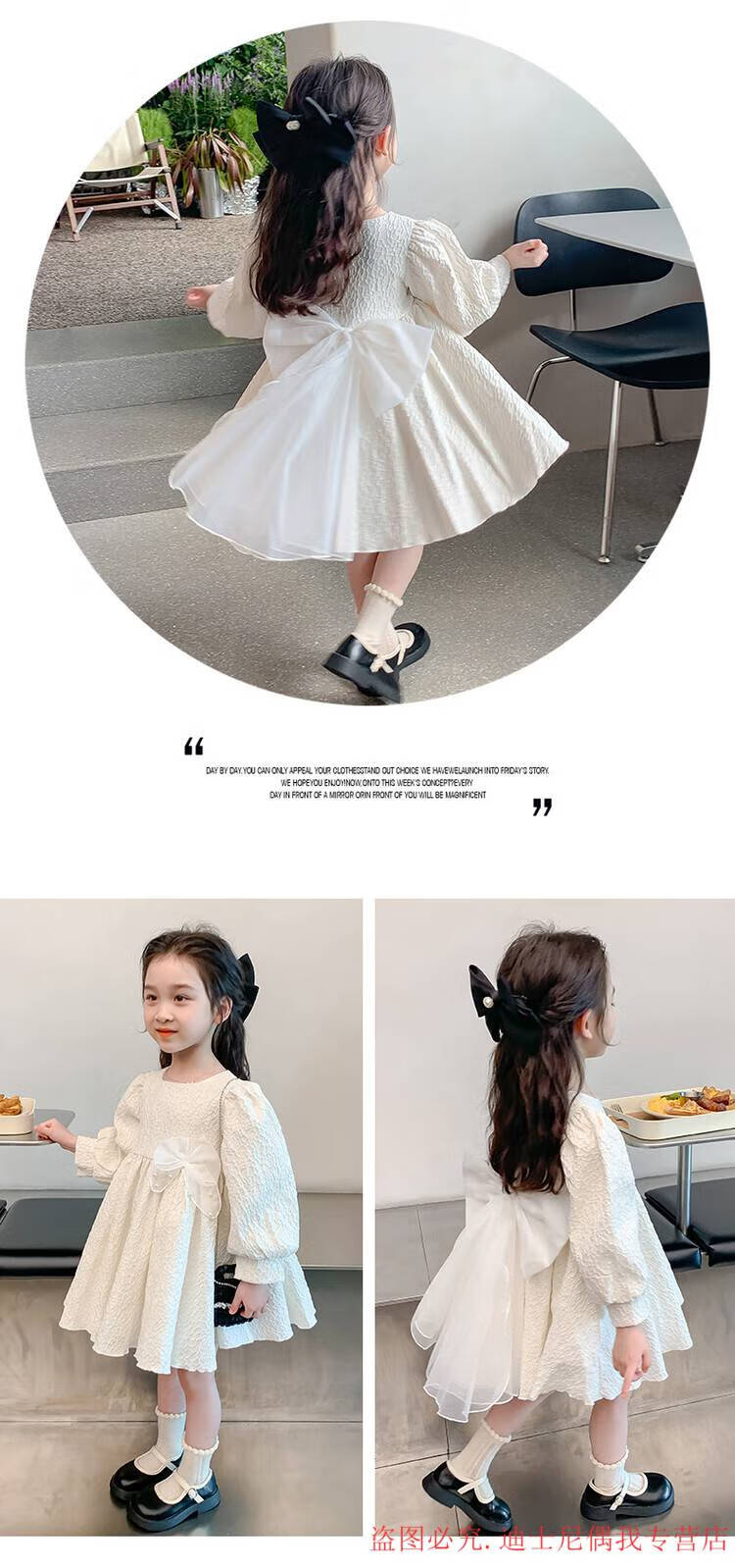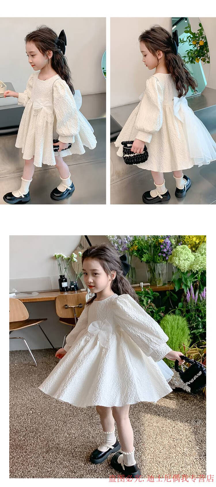 G.duck girls dress, autumn high-end princess dress, birthday flower girl wedding, children's summer dress, one-year-old dress, baby dress, white (spring and autumn) 100 (height 90-100cm, age 3-4 years old)