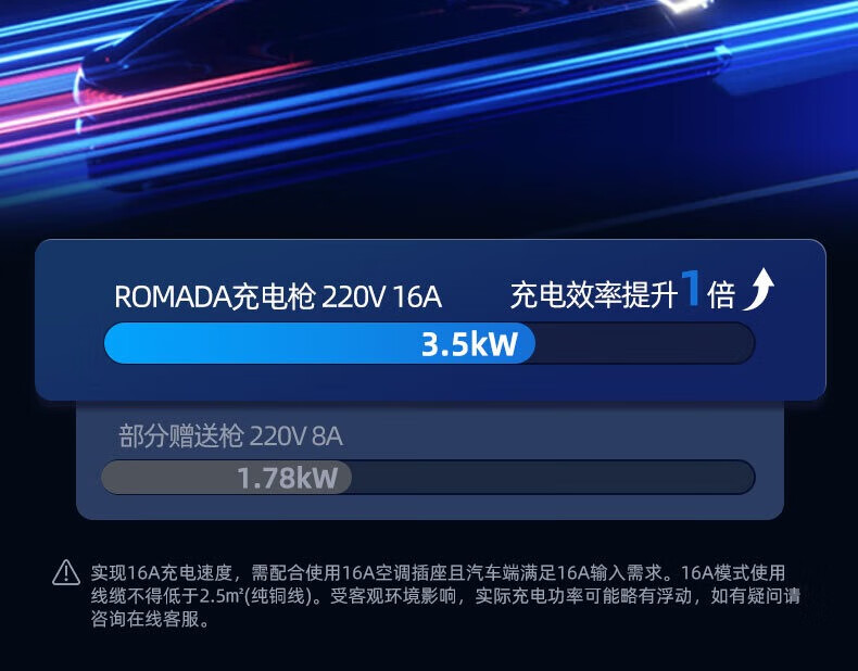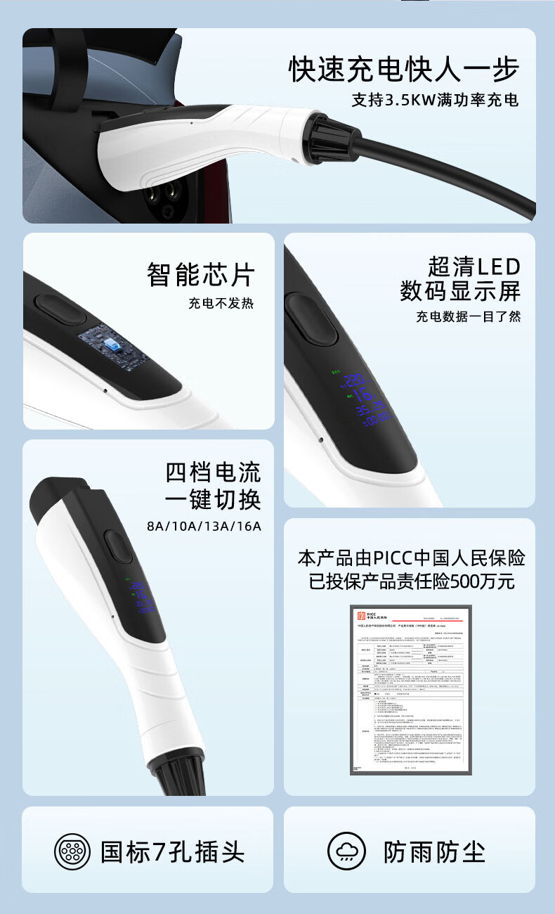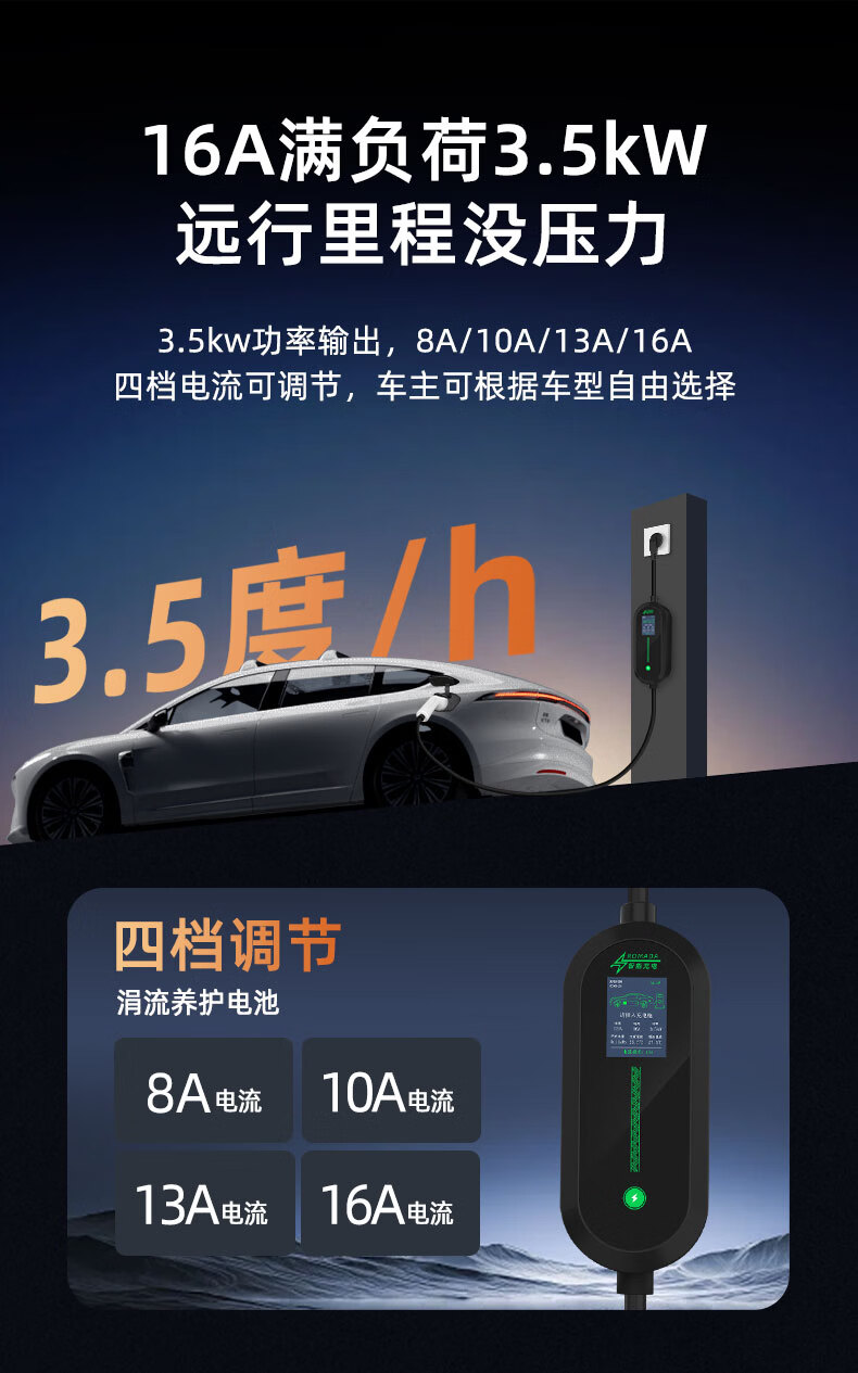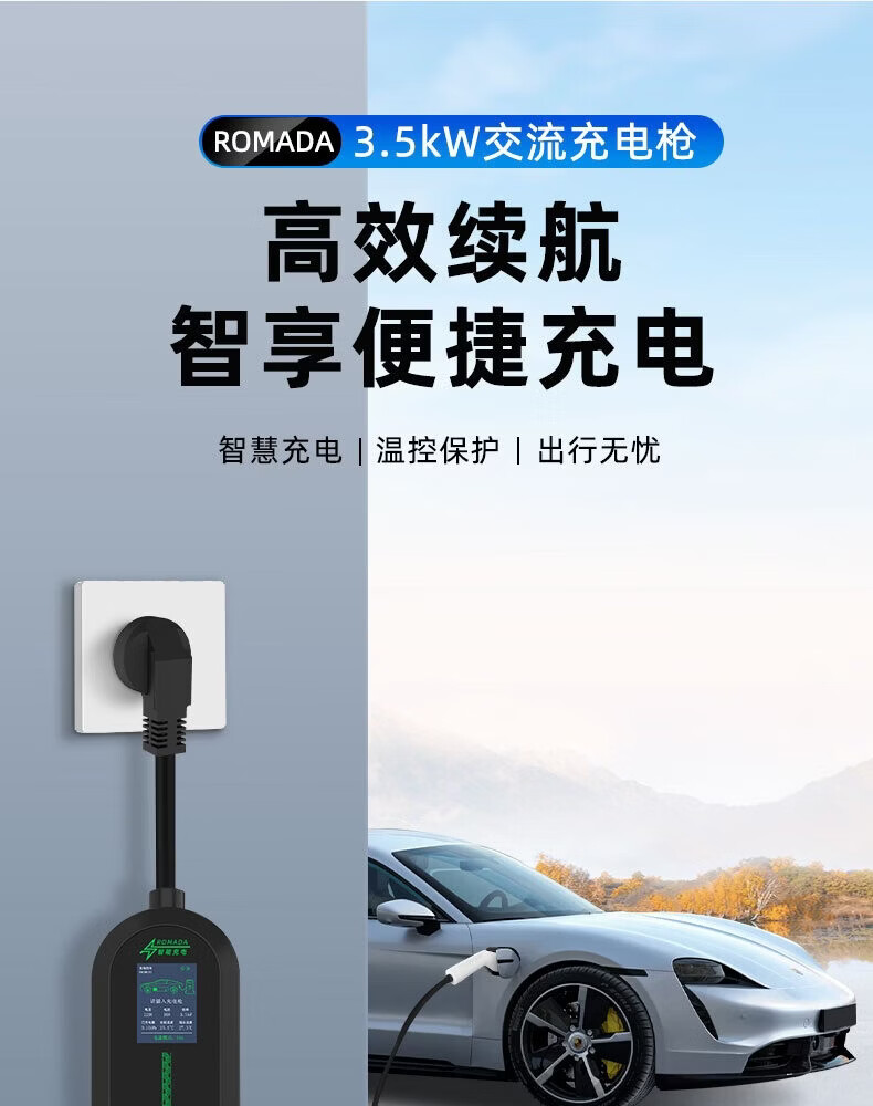 ROMADA new energy vehicle portable charging gun 3.5kw on-board charging is suitable for Geely Xingyuan BYD Qin PLUS/Seagull Hongguang MINIEV Xiaomi and other series chargers 3.5KW-16A standard model two-speed power adjustment/full stop 5 meters