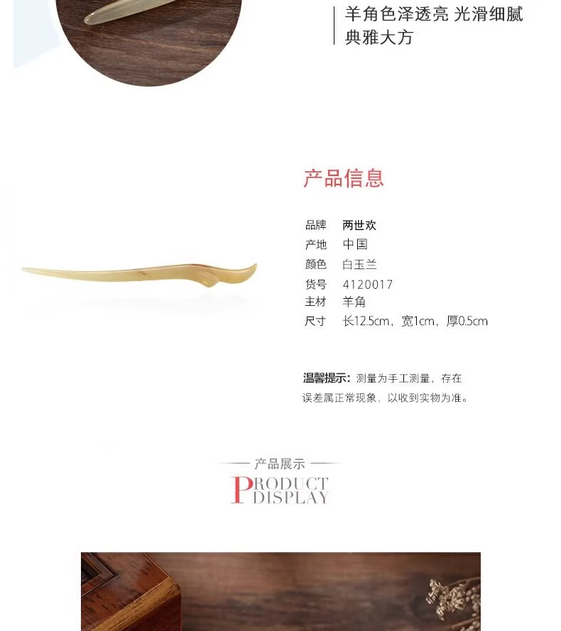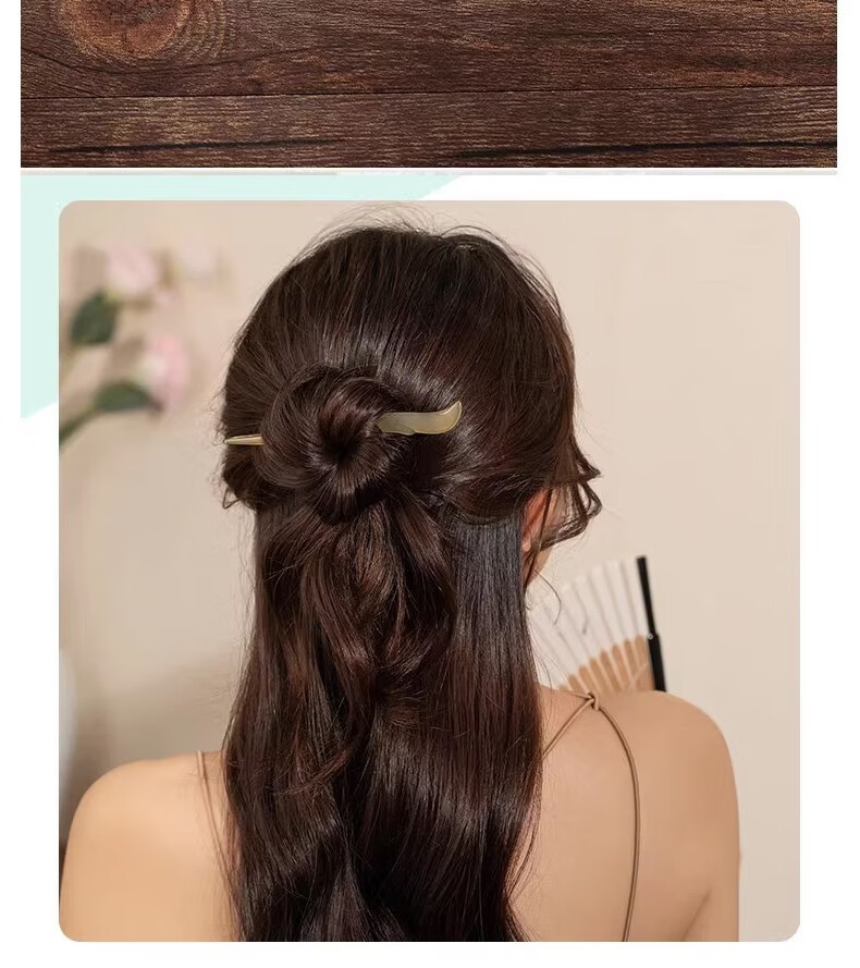 Love for Two Worlds Short New Chinese Style Sheep's Horn Hairpin Women's Hairpin Ancient Style Hairpin Hanfu Cheongsam Hair Accessory Simple Modern Style Hairpin