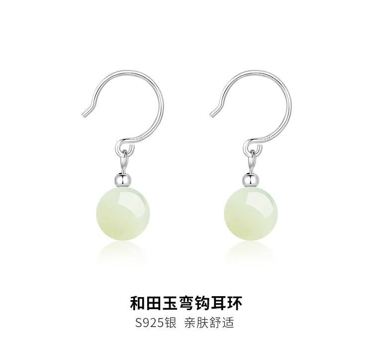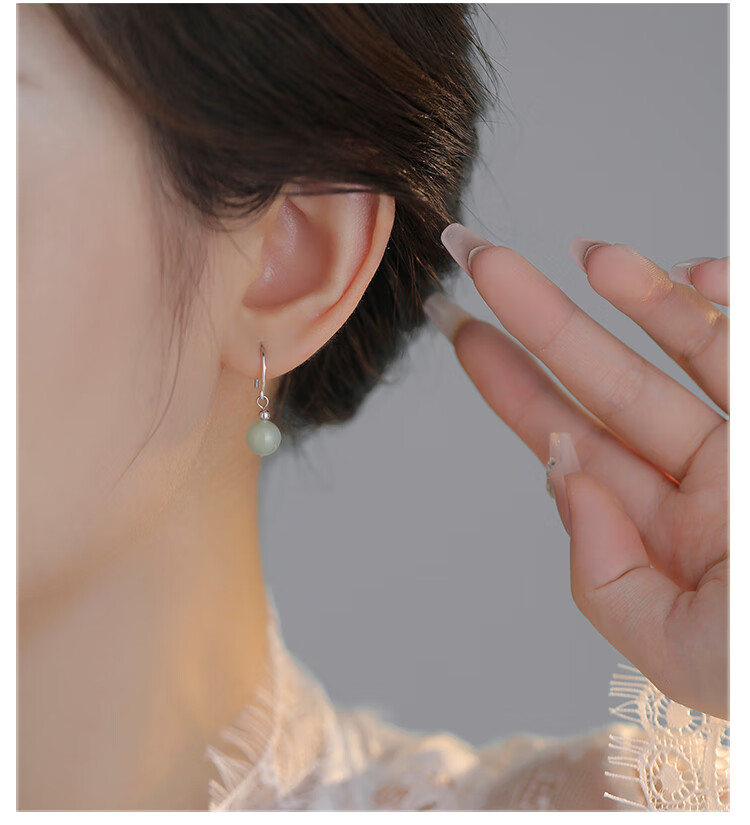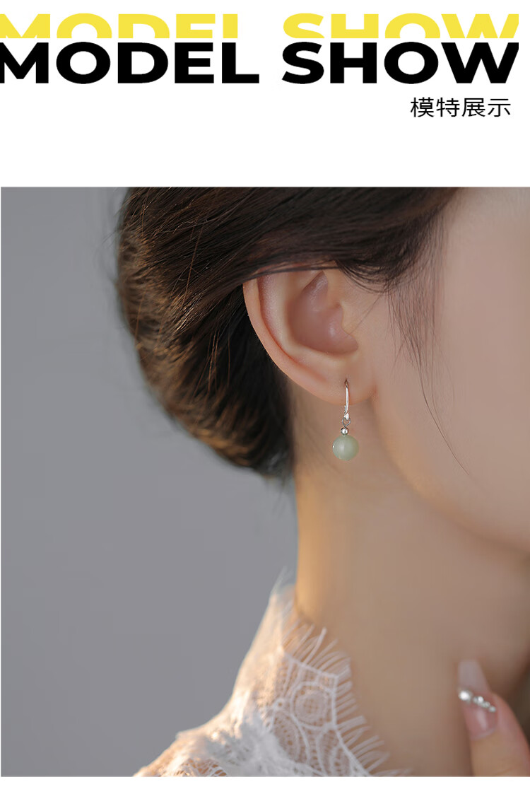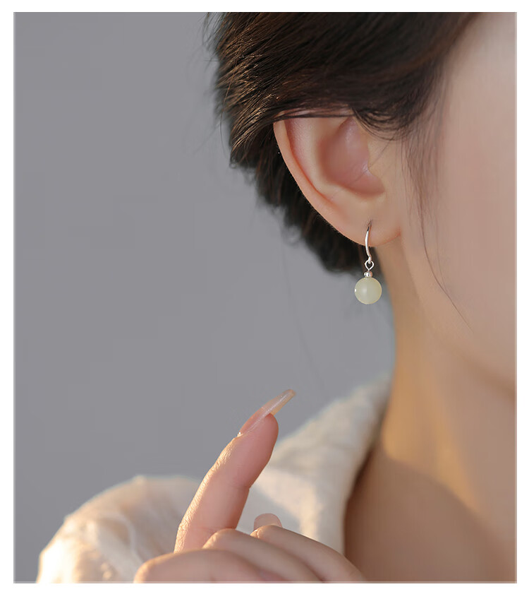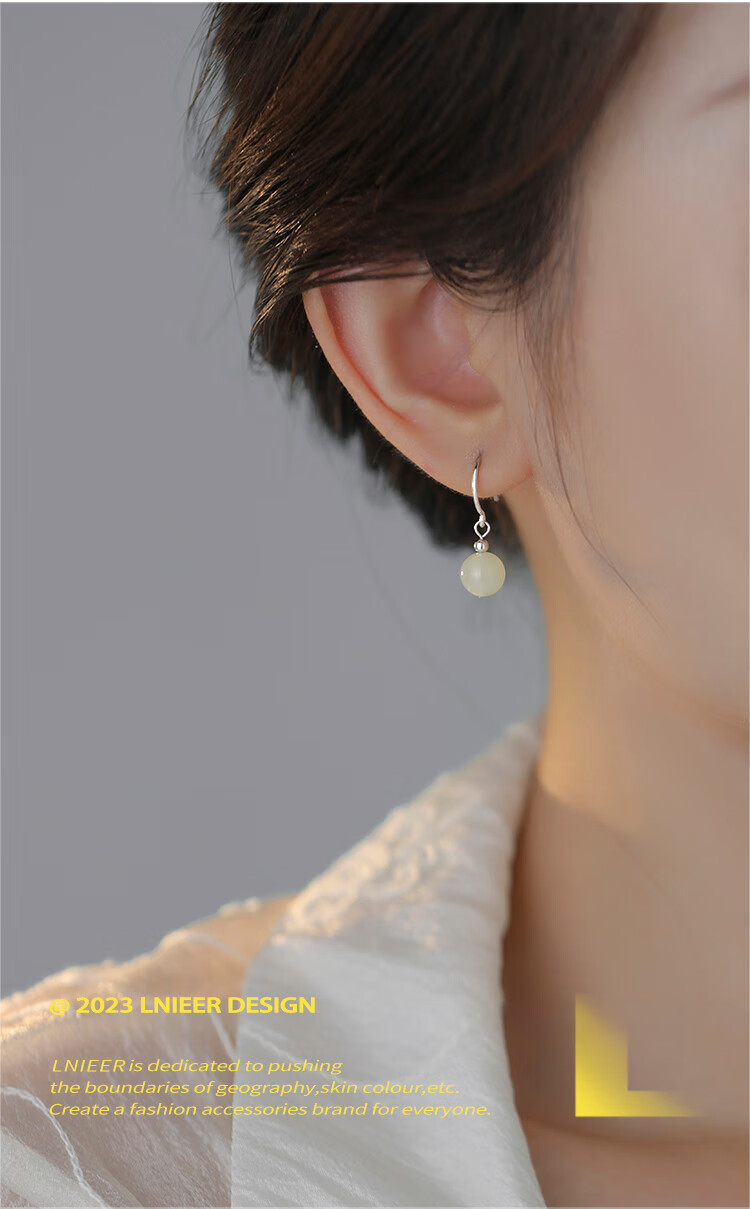 Lnieer S925 Silver Hetian Jade Earrings Feminine Earrings Ear Hooks Light Luxury Retro Style Niche 2025 New Silver Earrings Hetian Jade Earrings S925 Silver