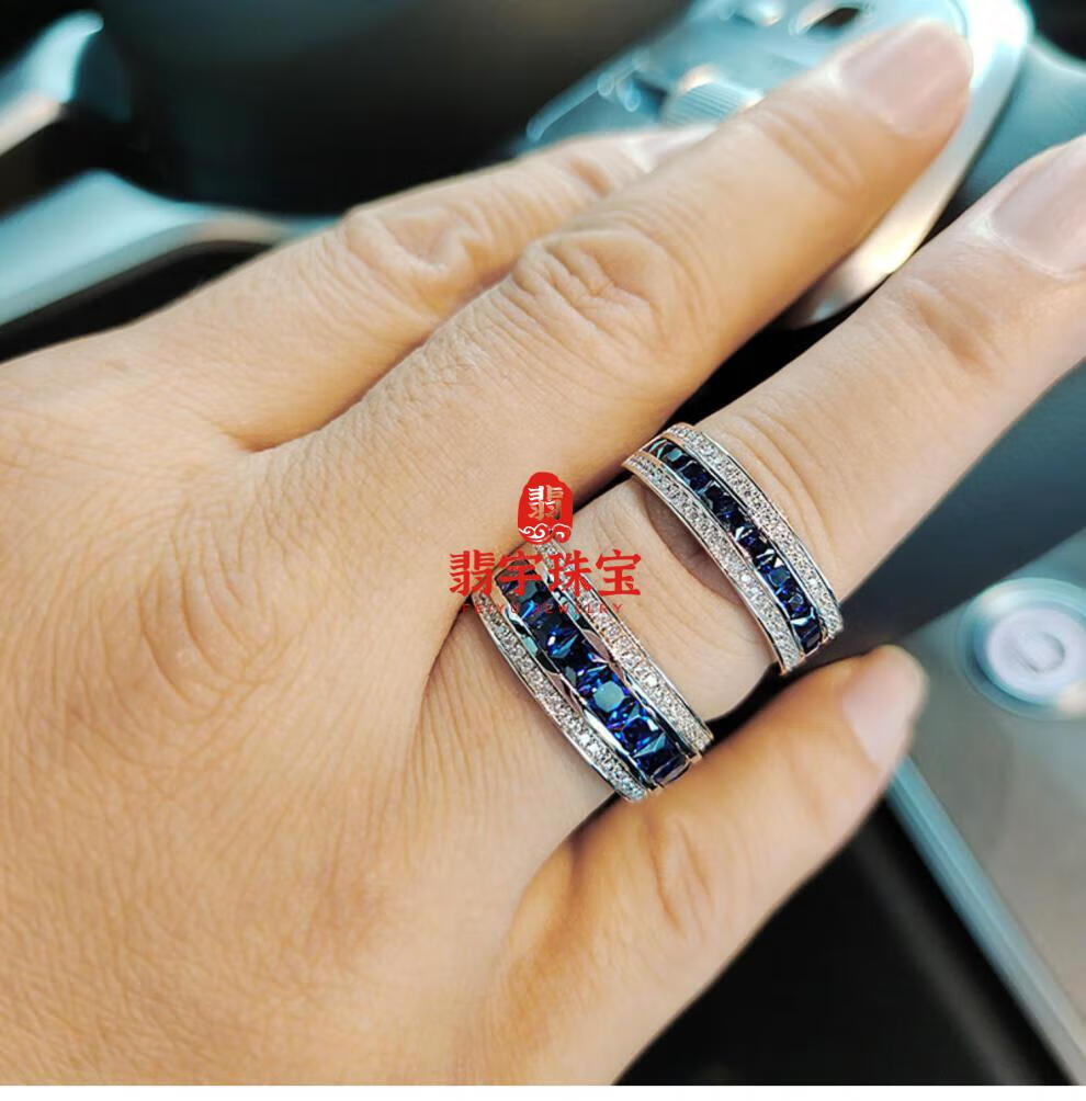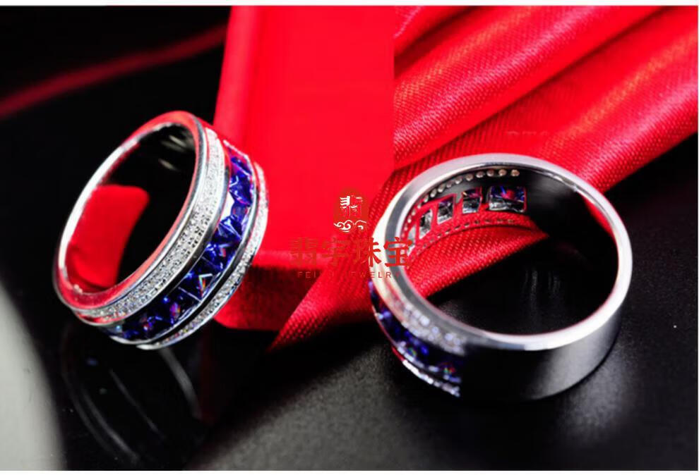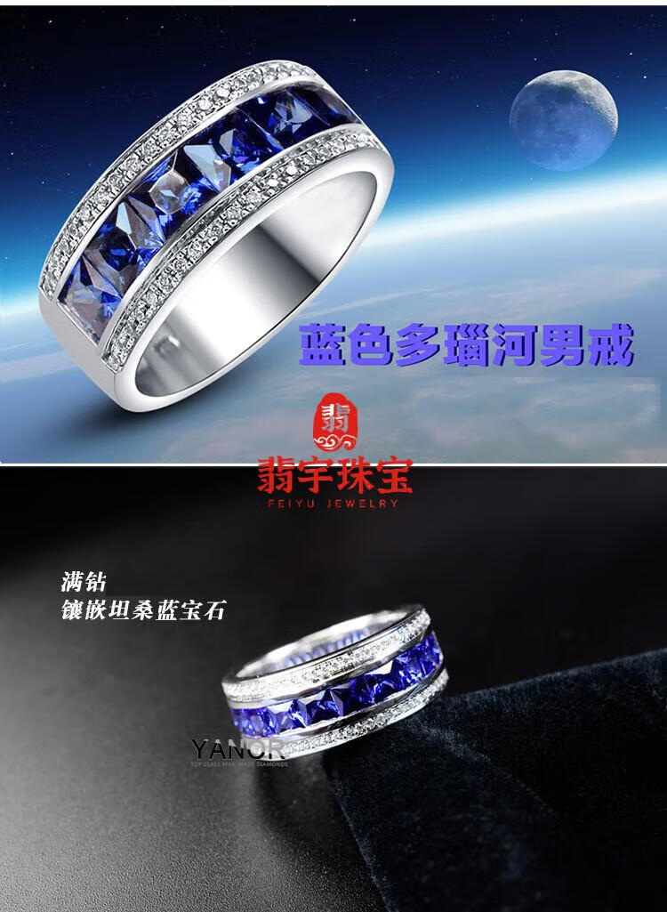 Feiyu Fat Donglai same style moissanite diamond ring for men, sapphire ring for men, single row of diamonds, imitation tanzanite, 925 silver plated tide, spot No. 14-16 circle, wide version blue