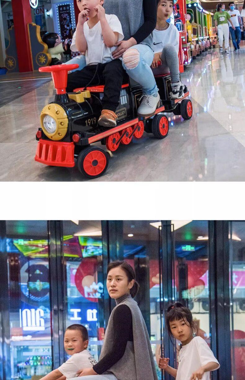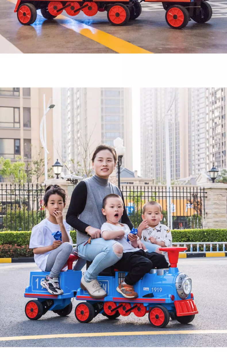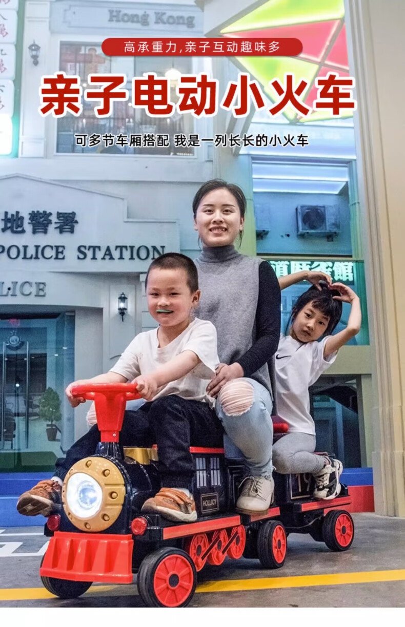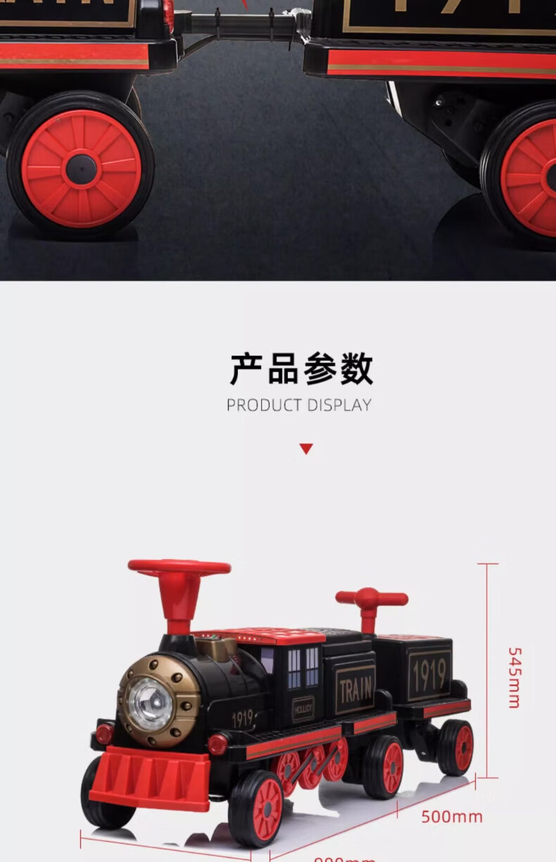 Haolaixi little train baby electric car four-wheel male and female baby can sit on the stroller children's toy cartoon rechargeable car four-wheel drive black and red + 1 car remote control + 2 sets of 12V10 large batteries + early education