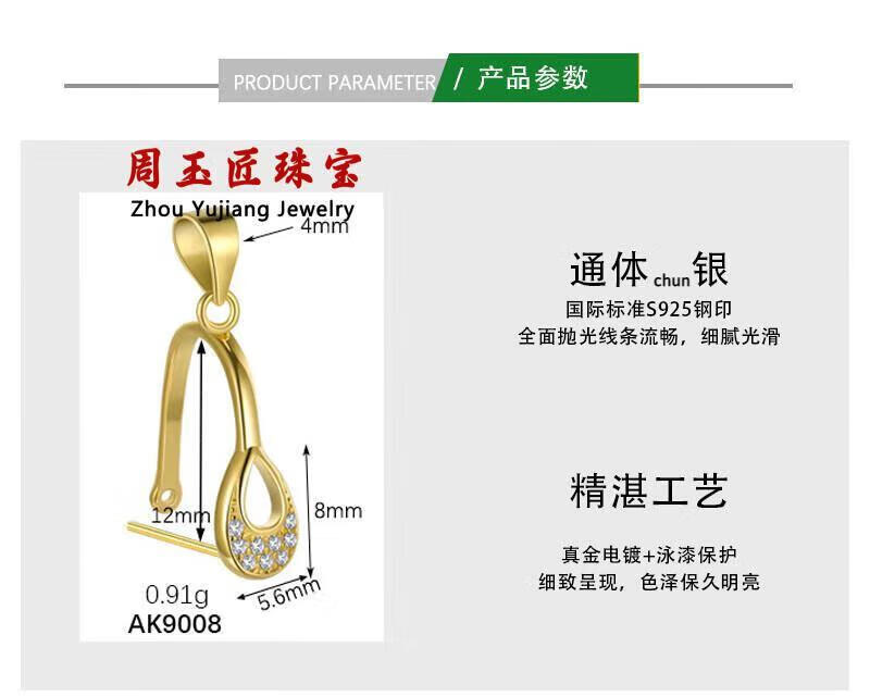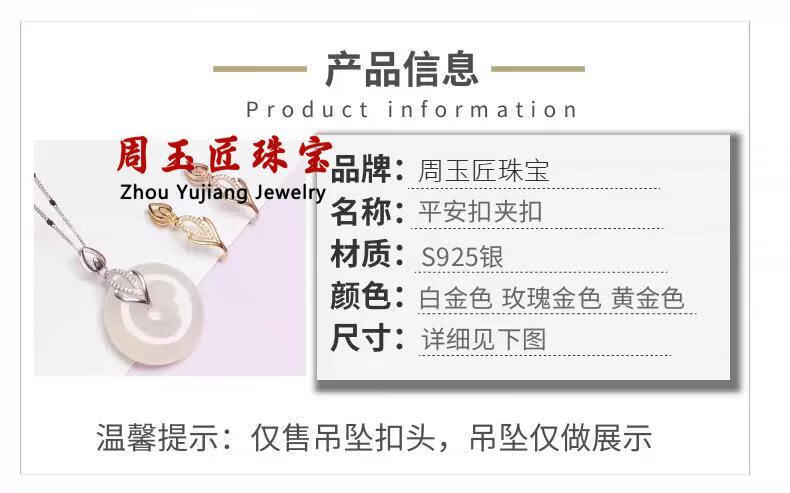 18k gold plated pendant, universal buckle, gold safe buckle clip, jade jade buckle necklace with white gold