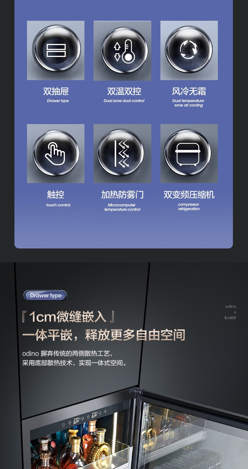 Odino wine cabinet constant temperature embedded home wine cellar level wine cabinet sake beer wine cabinet constant humidity refrigerator office restaurant wine tea cabinet black