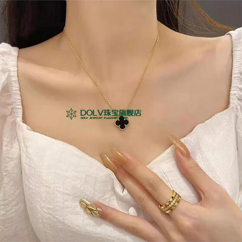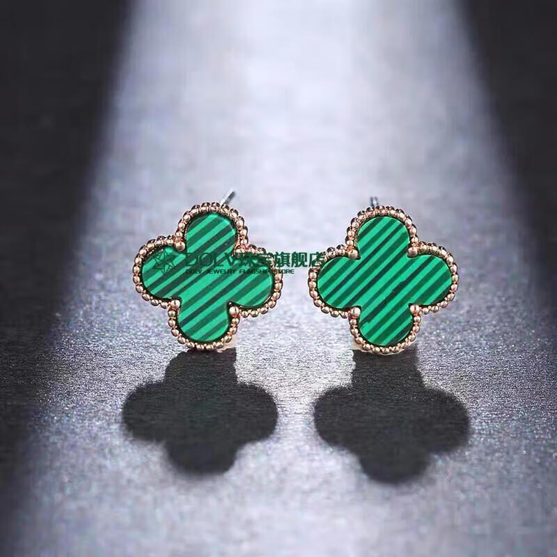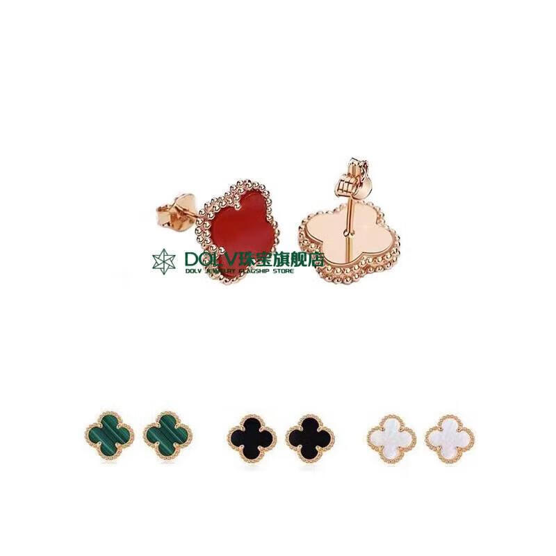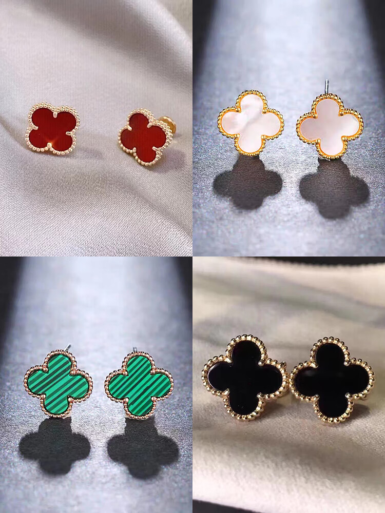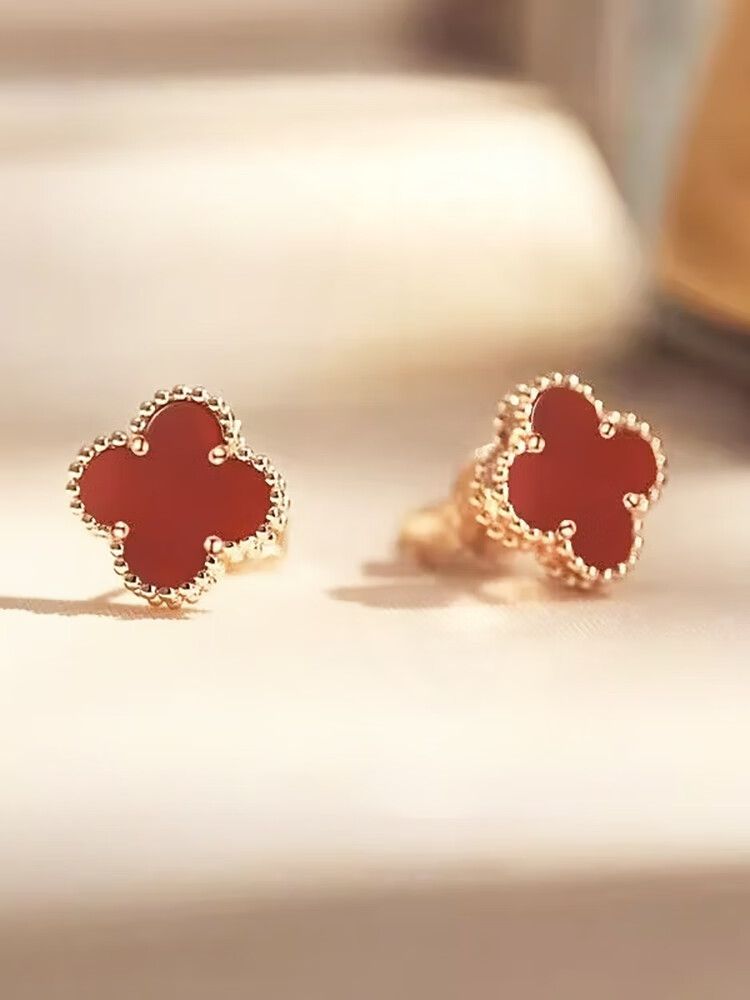 Fat Donglai's same four-leaf clover 18K gold stud earrings, 18k rose natural mother-of-pearl red and black agate needle earrings, earrings black (18k gold)