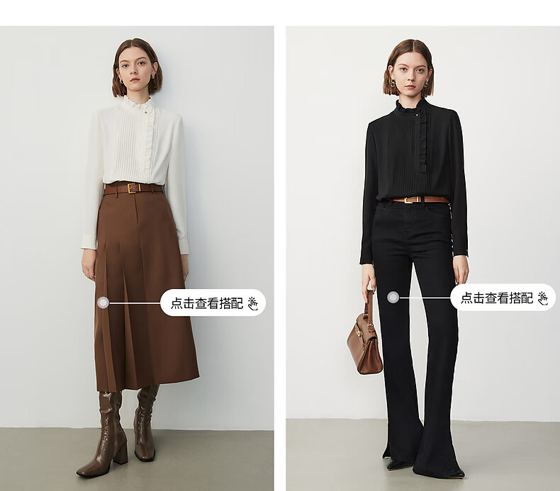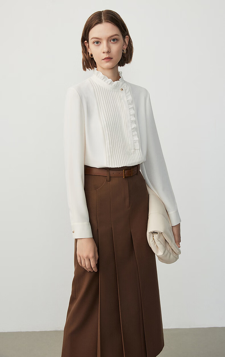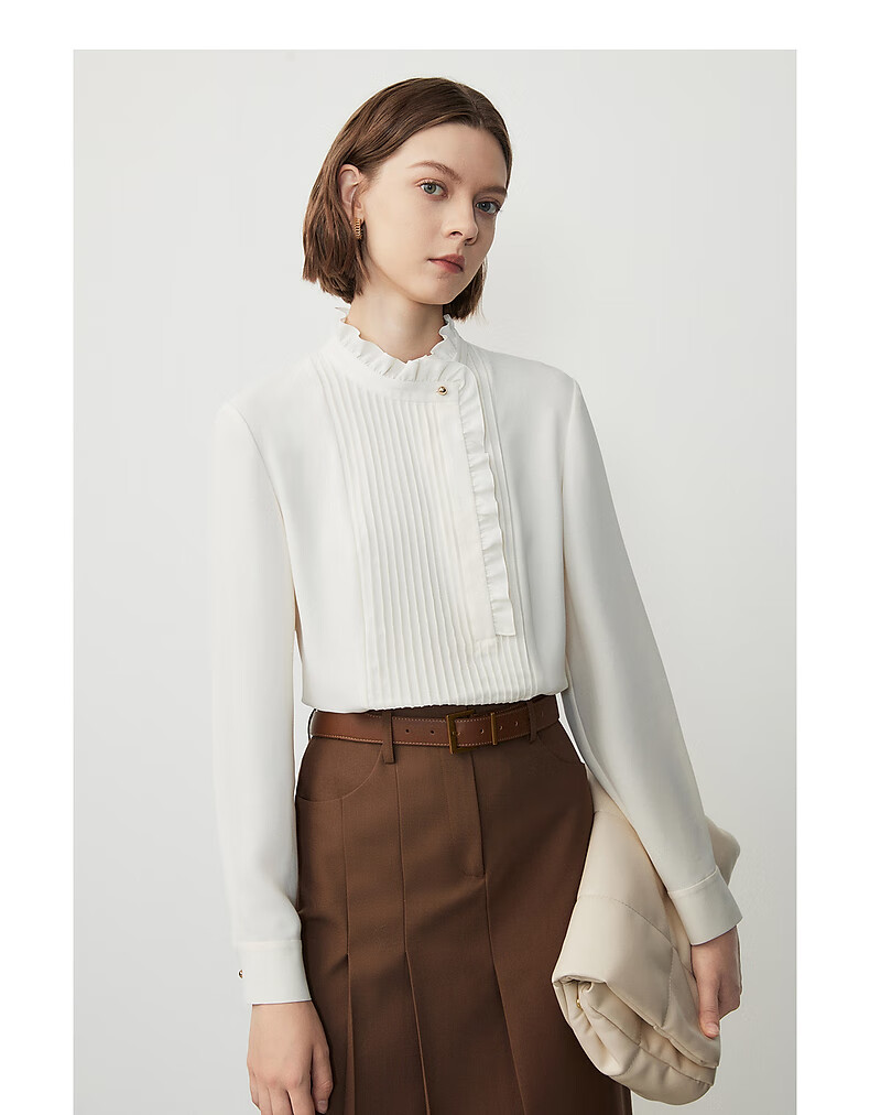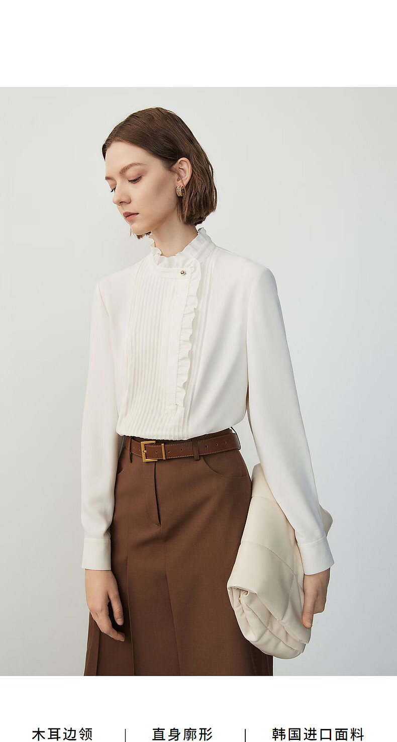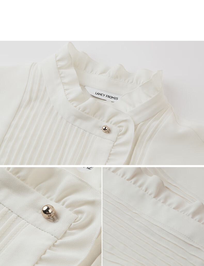 Langzi Elite Wardrobe Basic Wardrobe Palace style earring collar shirt top shirt spring new style off-white M