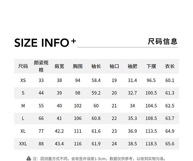 China (cm) 160-165/84-86 165-170 / 88-90 167-172 / 92-96 168-173 / 98-102 170-176 / 106-110