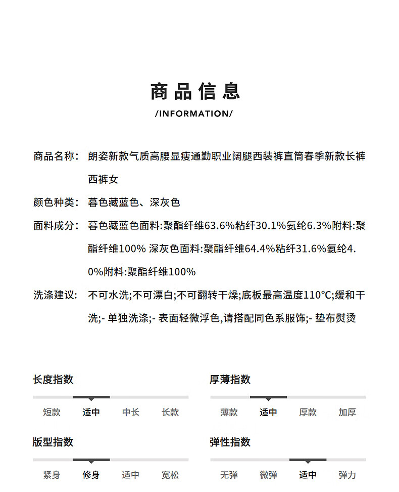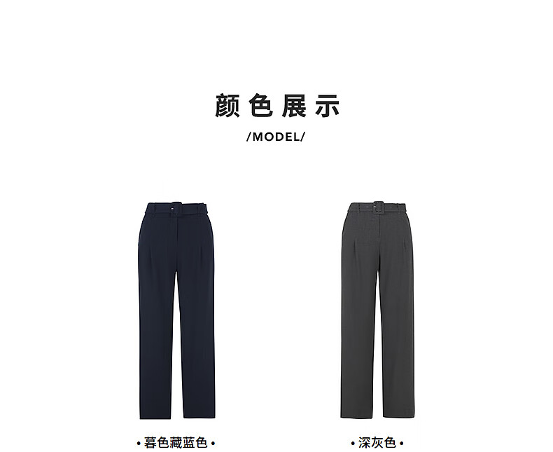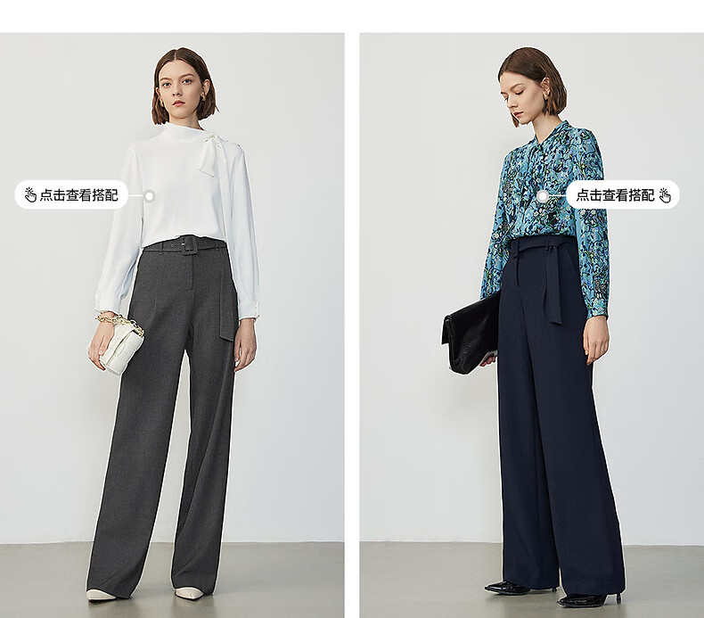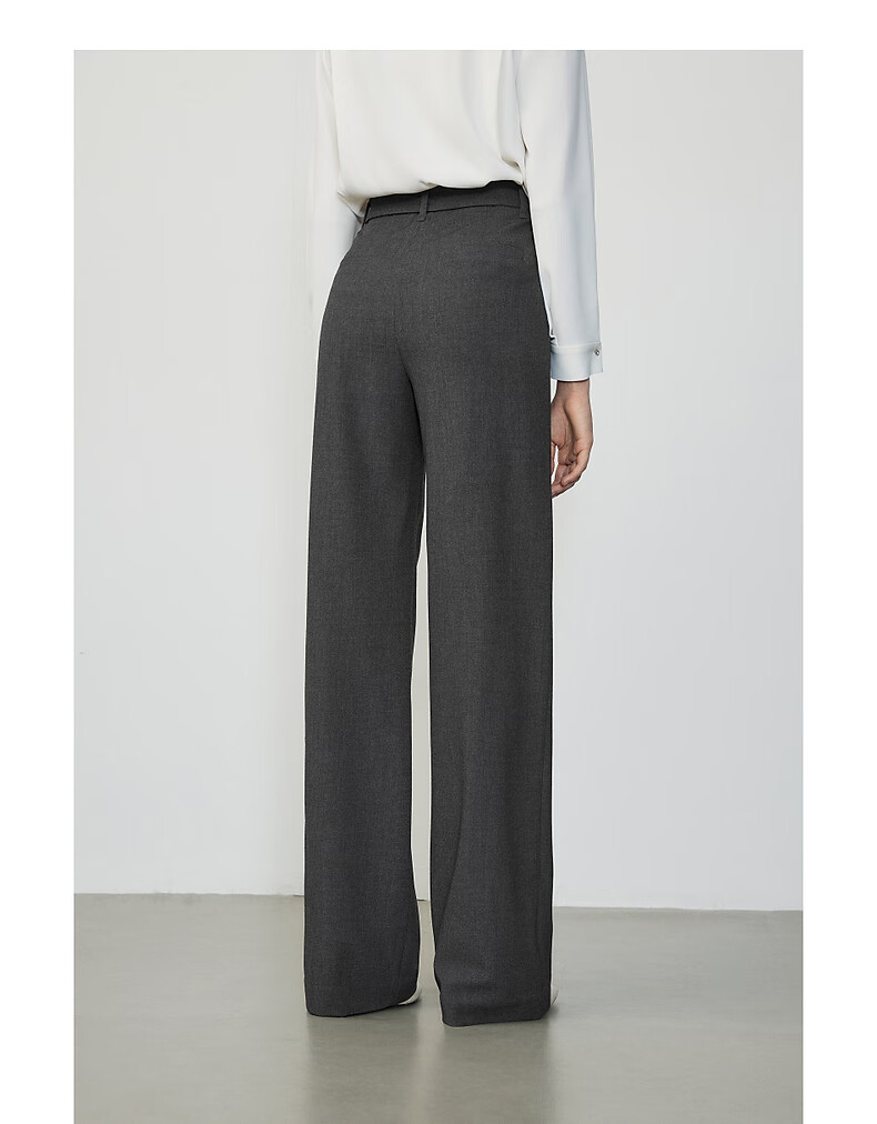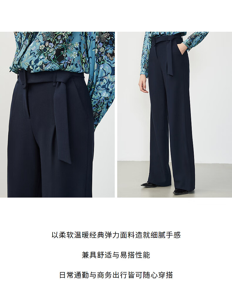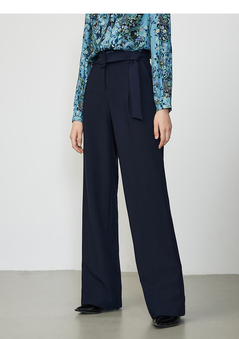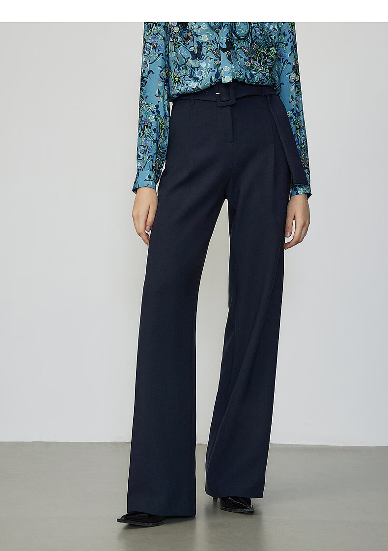 Langzi's new temperament high-waist slim commuter professional wide-leg suit trousers straight spring new trousers trousers for women twilight navy blue L