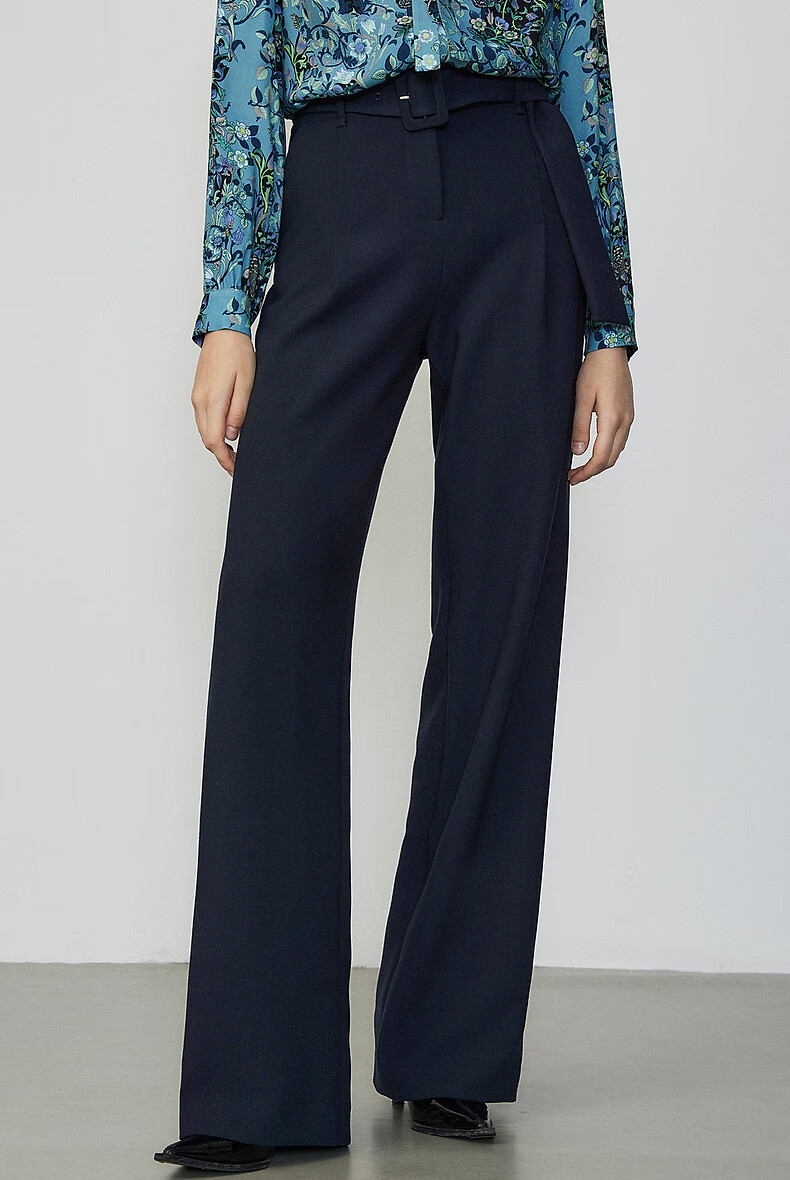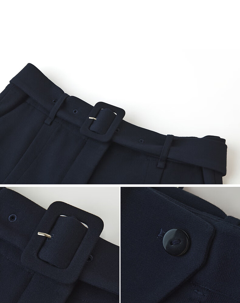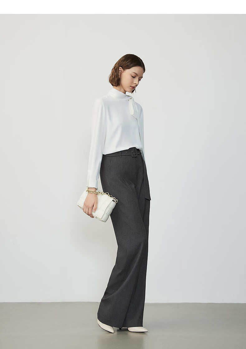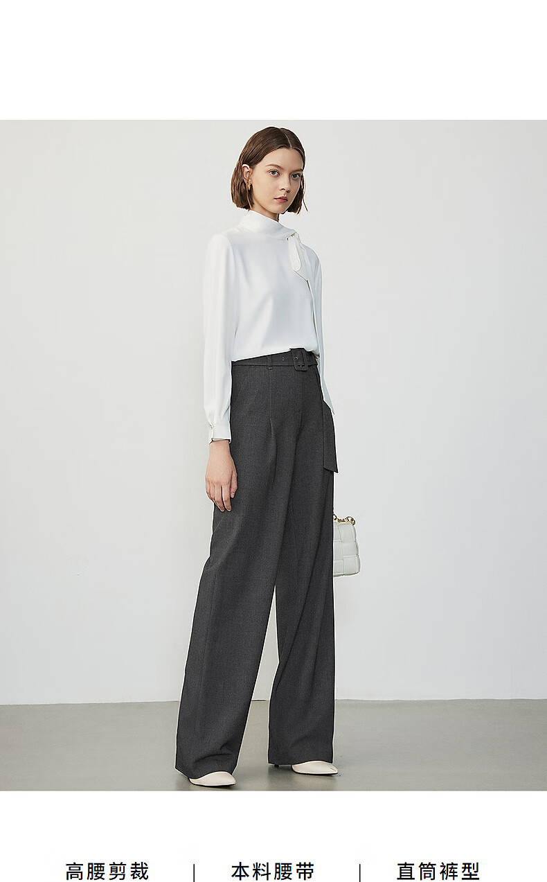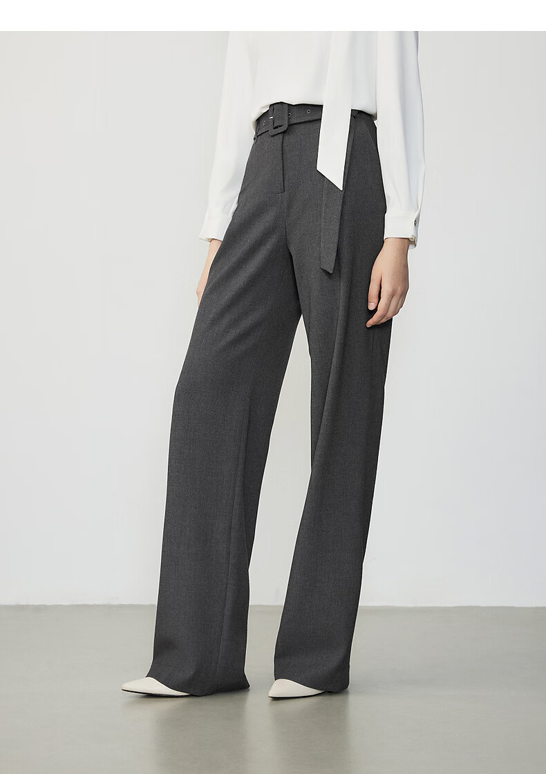 Langzi's new temperament high-waist slim commuter professional wide-leg suit trousers straight spring new trousers trousers for women twilight navy blue L